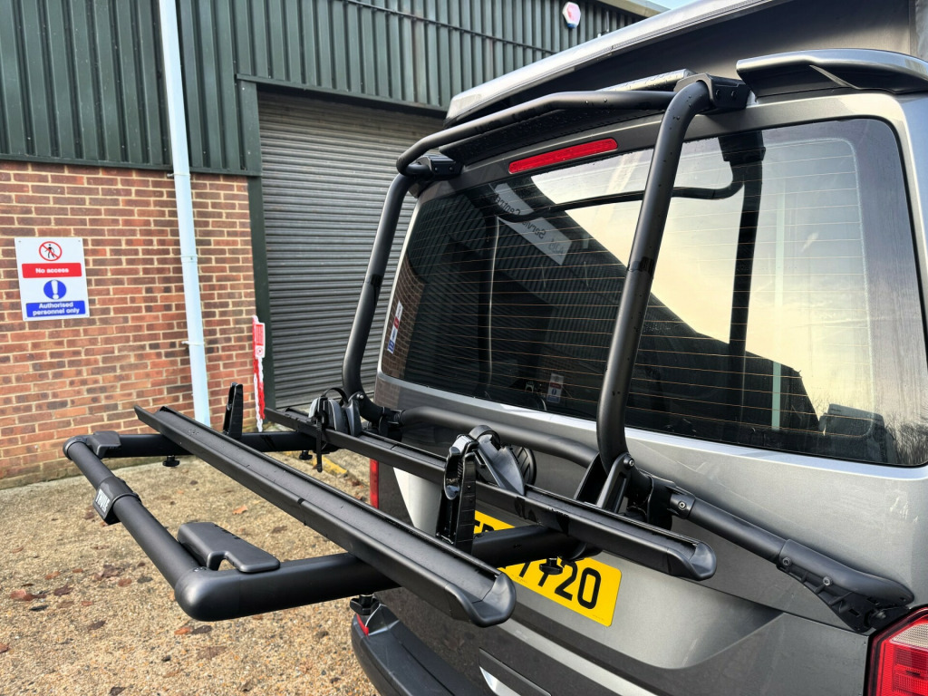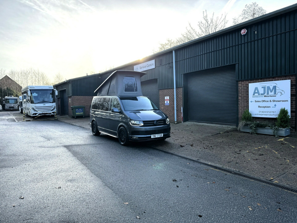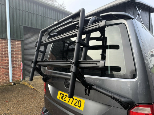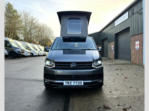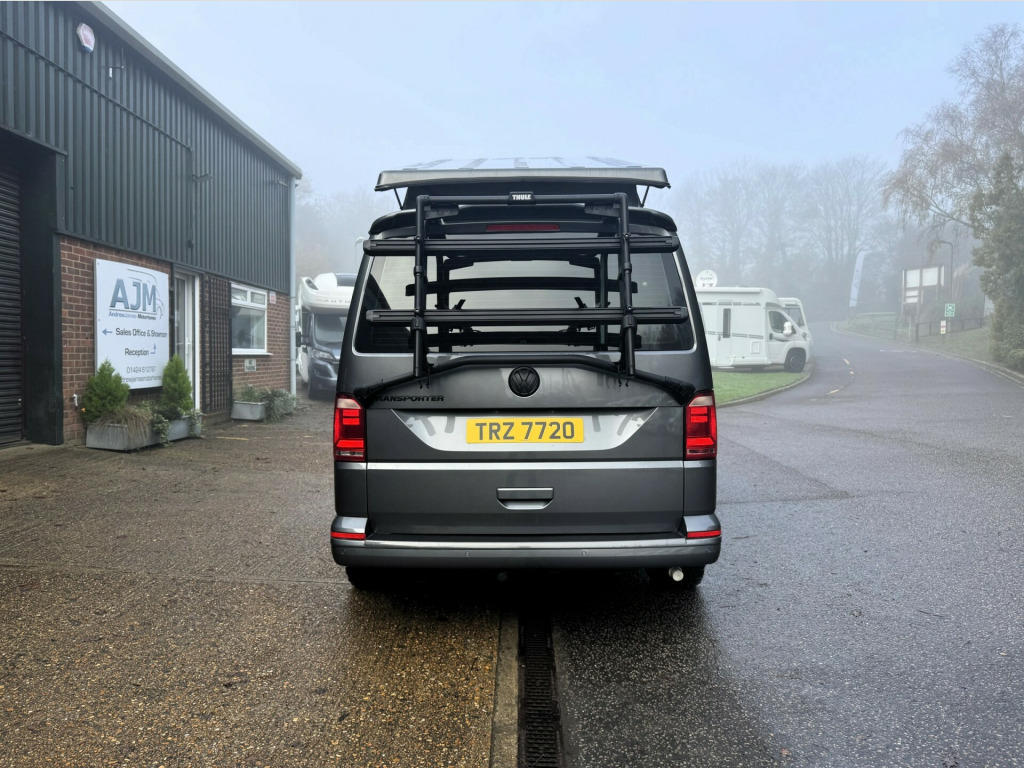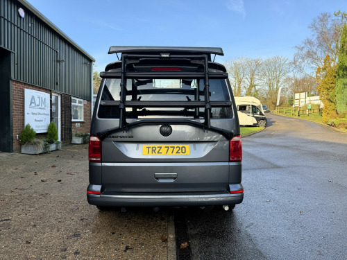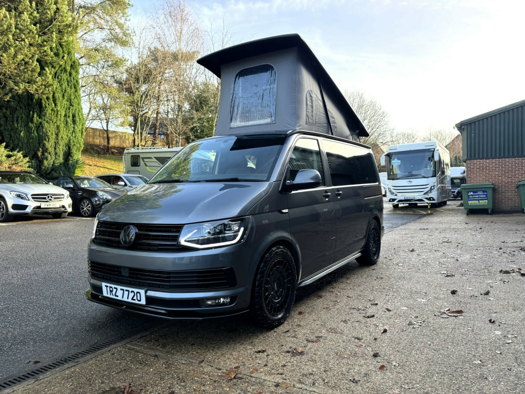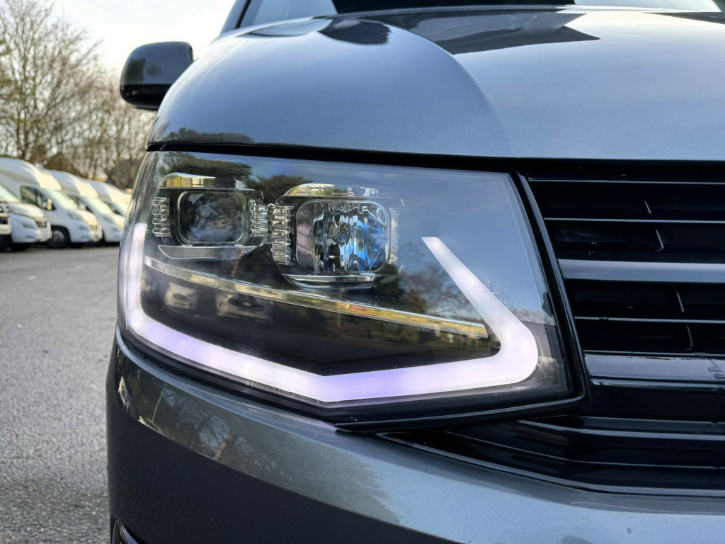 *** NEW ARRIVAL *** We are delighted to offer this stunning conversion carried out by BeSpoke conversions on the popular T6 chassis.The conversion has been carried out to the highest standard with multiple features courtesy of the previous owner and original converter.Volkswagen T6 chassis, 150BHP, manual 6 speed gearbox, heated windscreen, Air-Con, reversing sensors, Cruise control, multi functional steering wheel, Twin single captains chairs with twin swivel base frames.Full leather throughout with white stitching and cross hatch design detail, Rib red rear bench seat with under bench storage draw unit and stow away cupboard for Porta Potti toilet cassette, LED lighting throughout.Equiped kitchen with Dometic under counter compressor fridge, storage cupboard, 2x gas burner hob with single bowl sink with glass lid covers, 2x 240v sockets and double USB 12v points, Gas tank level gauge. Pop up roof with front window and twin side mesh vent side windows, double bed option with memory foam mattress.Rear boot with tailgate with twin cupboards additional storage, Kenwood rear speakers.Exterior of the campervan features: LED DRL headlights with xenon headlights, Carbon fibre effect rear boot tailgate bumper protector sill, front lower bumper splitter, Reimo awning rail, T6.1 side running bars, Thule 2x rail bike rack tailgate mounted, Rear boot spoiler, Lowered suspension, Super Metal block gloss alloys with BF Goodrich tyres., Black Gloss VW badges front and back.Viewing highly recommended here at the dealership today.Disclaimer: Whilst every effort is made to ensure the accuracy of the data shown, it is not a definitive statement of specification of the vehicle and no responsibility will be accepted for errors in listing made on this site. r conditioning, bluetooth connection, full leather, xenon headlamps, captain chairs, drivers arm rest, tailgate, cruise control, multi-function steering wheel, parking sensors, power steering, steering wheel reach adjustment, trip computer, abs, quick-clear screen, service indicator, twin air bags, immobiliser, privacy glass, remote central locking, electric mirrors, heated door mirrors, windscreen heating, radio/cd, front armrest, height adjustable drivers seat, body coloured bumpers, colour coded body, front fog lights, full size spare wheel, led 3rd brake light, led daytime running lights, rear spoiler, 12v compressor fridge, 12v points, 12v usb charging points, 18, colour coded wing mirrors, dometic hob & sink, fresh water onboard tank, internal fitted curtains, led lighting throughout, leisure battery, m1 type approved bed, mains 240v sockets, overhead led lighting, reimo side awning rail, swivel captains chairs, t6.1 running side bars, underslung gas tank