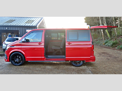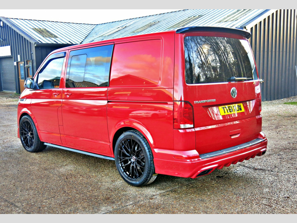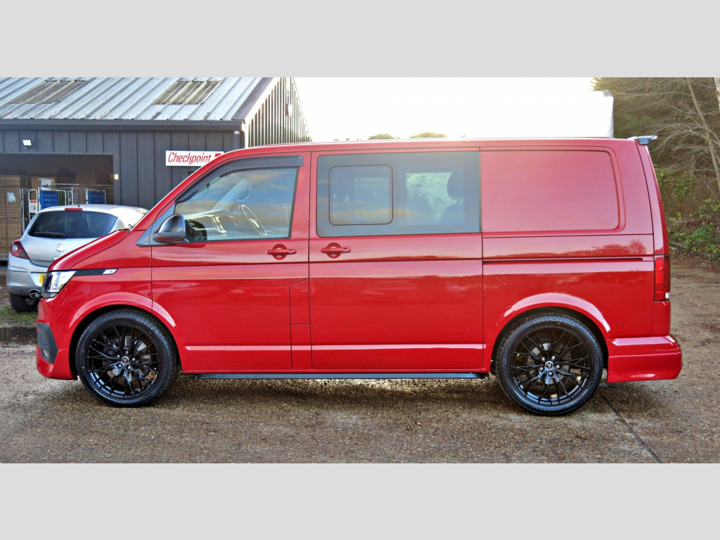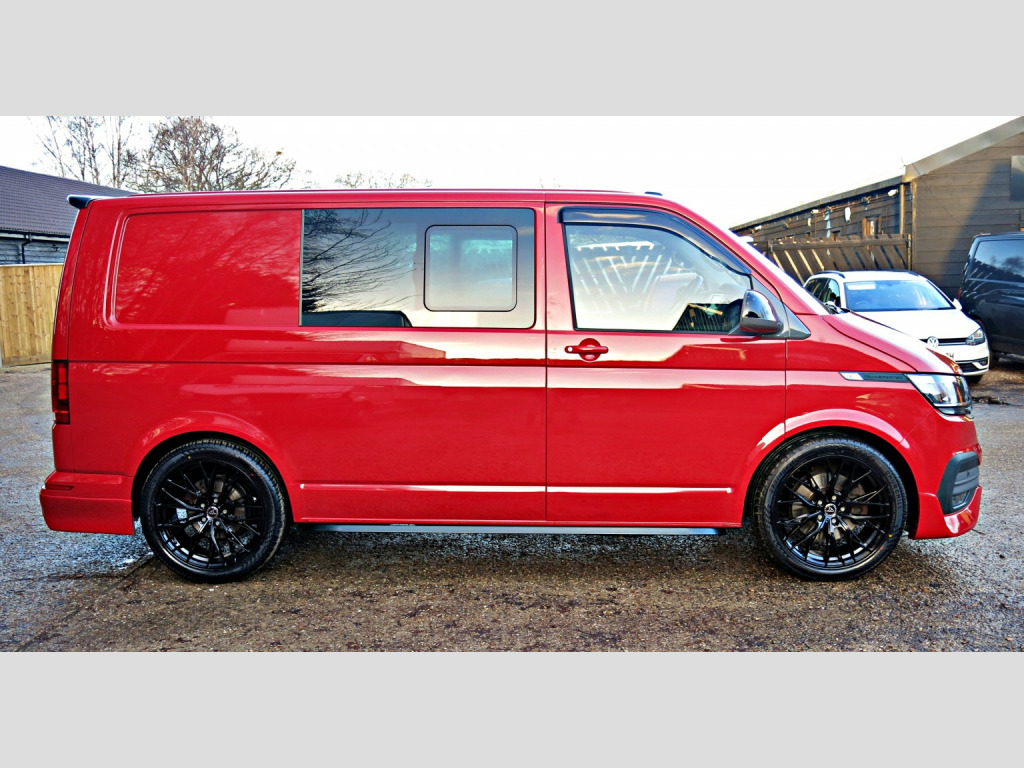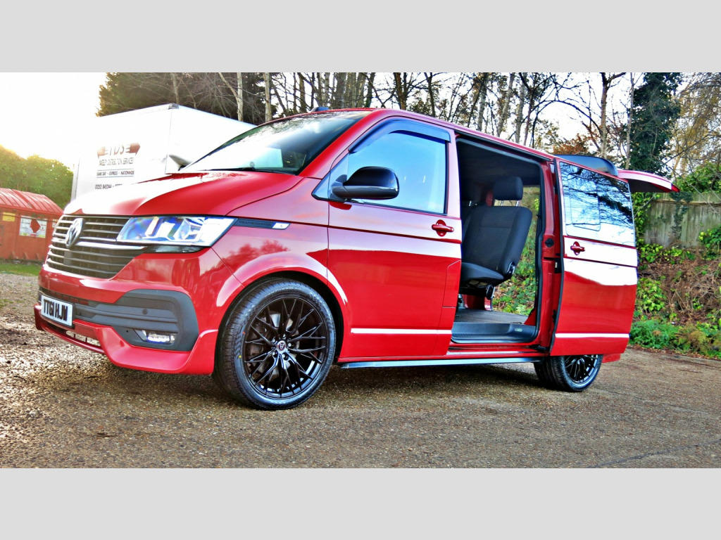 Unique Transporters are delighted to offer this VW T6 Transporter Euro 6 SWB Highline Kombi with aircon and 5 seat with Sportline styling finished in bright red. comes with the following features:, Finance this van from 9.9 APR, Service with new cambelt kit if required , New 20inch Alloys, Upgraded lowered suspension, 150hp upgradable to 185 bhp , SWB, + VAT, DSG 7 speed automatic , Aircon , Private plate , Euro 6, 5 seat 2 captains seats with 2+ 1 rear seat , Apple car play, Sat nav via apple car play , Heated front screen , Parking sensors , DAB radio , Bluetooth, Bluetooth music streaming , Cruise control , Rac Warranty, Sportline styling , Side bars , Air Con, Side bars, Tailgate , Upgraded Lowered suspension , Electric front windows and mirrors , Extendable Rac Warranty, Part exchange welcome , 50+ Vw Transporters in stock , 102hp not enough? we can remap this to 170hp please ask about this option. Part exchange welcome , Upgradable RAC warranties, with electrical and mechanical plus RAC Breakdown cover, Finance options are available, please contact us with your requirements. Please call our team for viewing or discuss this vehicle. 01252 318417, This vehicle is subject a customer care pack at £149 please see website for more details, WE OPERATE ON A STRICTLY APPOINTMENT ONLY BASIS PLEASE CALL US ON 01252 318417 TO ARRANGE AN APPOINTMENT.!
