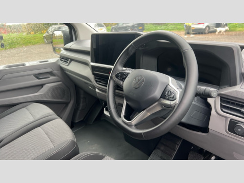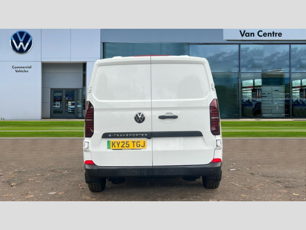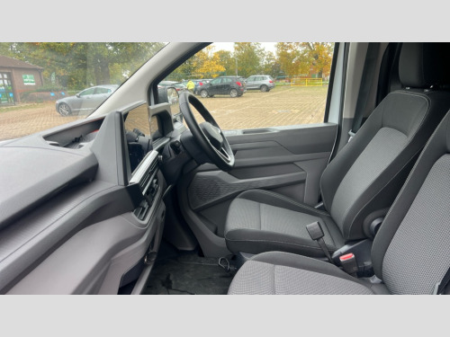 Volkswagen Transporter 100kW 65kWh Commerce Plus Van Auto 12" digital drivers display, 13" touchscreen infotainment display with wireless app connect and DAB radio, 5G Modem, Apple CarPlay and Android Auto, Cruise control, Dynamic road sign display, eCall emergency system, Electromechanical speed sensitive power steering, height and longitudinally adjustable steering column, Lane assist, Preparation of VW connect and connect plus, Wrong way driver warning, 4 speakers - 2x dashboard, 2x cab doors, Body coloured door handles, Heat reflecting side window glass, Mud flaps front and rear, Rear Transporter nameplate in black grained decorative trim, Vehicle opening configuration 1x 1st row of seats, 2x all doors, 2x 15-W USB data/charging ports in dashboard and 1x USB-C, 1x USB-A center bottom, 2x LED lights in load compartment, 4 way height and tilt adjustable head restraints, Black plastic scuff plate for sliding door in cargo without illumination, Cabin interior lighting, Electric auxiliary heater, Heat pump, Lashing rings for reinforced floor covering, Narrow centre console with cup holder and compartment for mobile phone, Overhead storage compartment, Roof grab handle on front passenger side, Rubber floor covering in cab, Striped fabric upholstery, Without passenger seats in load compartment, Driver and front passenger airbag with front passenger airbag deactivation, Front and curtain airbags for driver and front passenger, Seat belt pretensioner for driver seat, Single tone horn, Anti theft alarm system with interior monitoring in cab, backup horn and towing protection, Electronic immobiliser, Preparation for alcohol ignition interlock, 5+ Promise, Electromechanical brake booster, Electronic stability control, ABS, ASR with deactivation button, hill start assist and brake assist system, Mode 3 charging cable, type 2, 3-phase, 32A, cable length 5m, Goodyear all season tyres, Tyre mobility kit in lieu of spare wheel with 12 volt compressor and tyre sealant