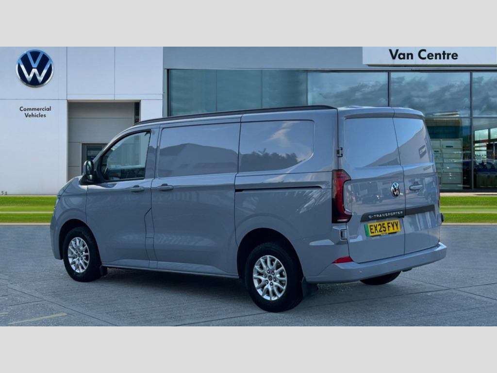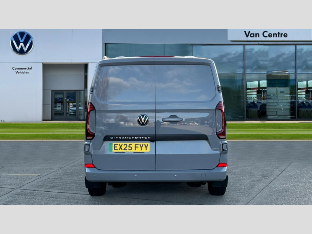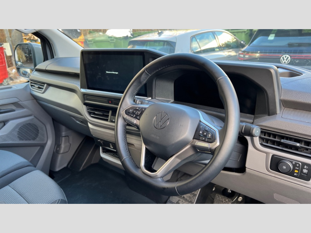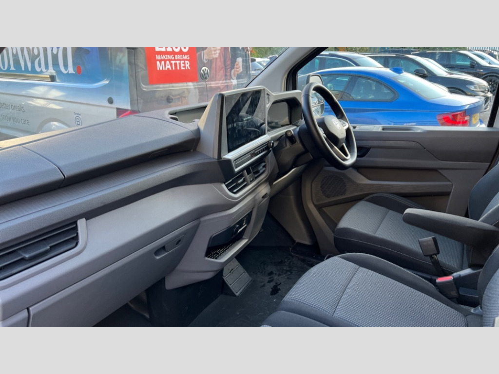 Volkswagen Transporter 160kW 65kWh Commerce Pro Van Auto 12" digital drivers display, 13" touchscreen infotainment display with wireless app connect and DAB radio, 5G Modem, Adaptive cruise control, Apple CarPlay and Android Auto, Dynamic road sign display, eCall emergency system, Electromechanical speed sensitive power steering, height and longitudinally adjustable steering column, Lane and blind spot assist with exit warning system, Preparation of VW connect and connect plus, Traffic jam assist, Wireless mobile phone charging, Wrong way driver warning, Body colour bumpers, Body coloured door handles, Body coloured door mirrors, Body coloured radiator grille, Electrically heated, adjustable and folding door mirrors, Heat reflecting side window glass, LED rear lights with exclusive light signature, Mud flaps front and rear, Rear Transporter nameplate in black grained decorative trim, Vehicle opening configuration 1x 1st row of seats, 2x all doors, 12V outlet in centre console and 12V outlet on rear right D-pillar, 2x 15-W USB data/charging ports in dashboard and 1x USB-C, 1x USB-A center bottom, 2x LED lights in load compartment, 3 spoke heated leather wrapped multi function steering wheel, 3x additional super bright LED lights in load compartment, 4 way height and tilt adjustable head restraints, 5 additional USB-C charging ports, Black plastic scuff plate for sliding door in cargo without illumination, Cabin interior lighting, Electric auxiliary heater, Glasses compartment in driver side roof, Grab handle on A-pillar passenger side, Heat pump, Illuminated lockable glovebox, Lashing rings for reinforced floor covering, Narrow centre console with cup holder and compartment for mobile phone, Overhead storage compartment, Rubber floor covering in cab, Striped fabric upholstery, Without passenger seats in load compartment, Driver and front passenger airbag with front passenger airbag deactivation, Front and curtain airbags for driver and front passenger, Seat belt pretensioner for driver seat, Single tone horn, Anti theft alarm system with interior monitoring in cab, backup horn and towing protection, Electronic immobiliser, Lockable wheel bolts, Preparation for alcohol ignition interlock, 5+ Promise, Electromechanical brake booster, Electronic stability control, ABS, ASR with deactivation button, hill start assist and brake assist system, Mode 3 charging cable, type 2, 3-phase, 32A, cable length 5m, Without alternator, Goodyear all season tyres, Tyre mobility kit in lieu of spare wheel with 12 volt compressor and tyre sealant