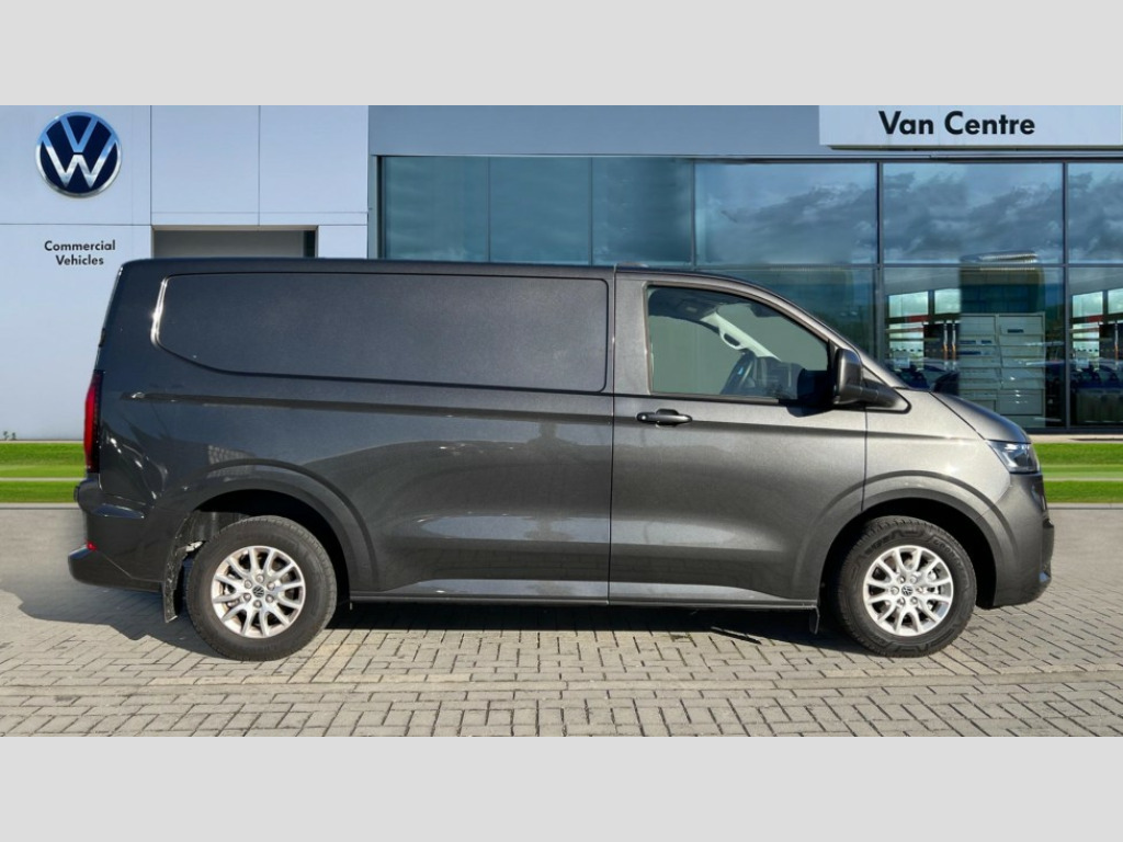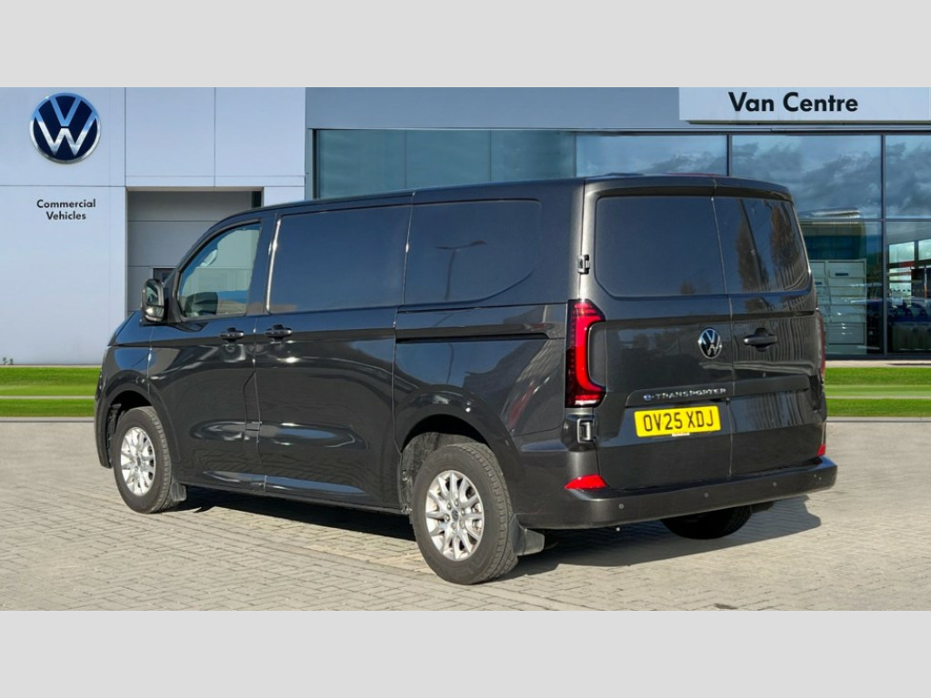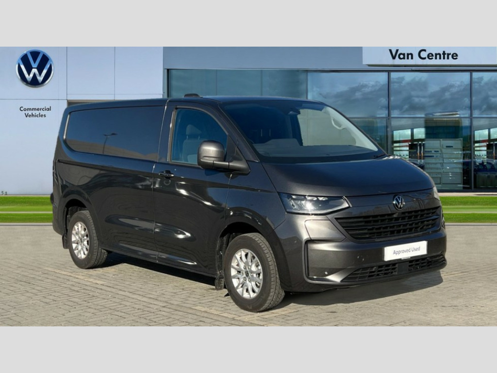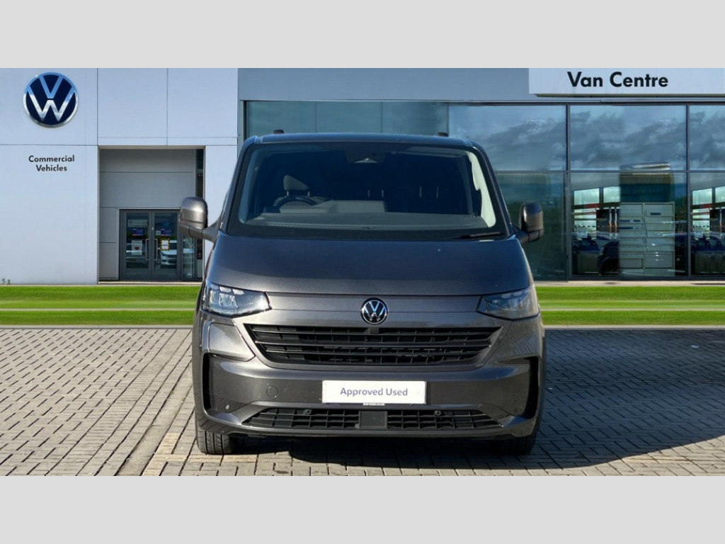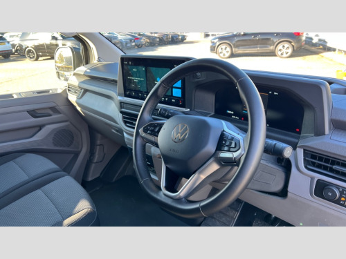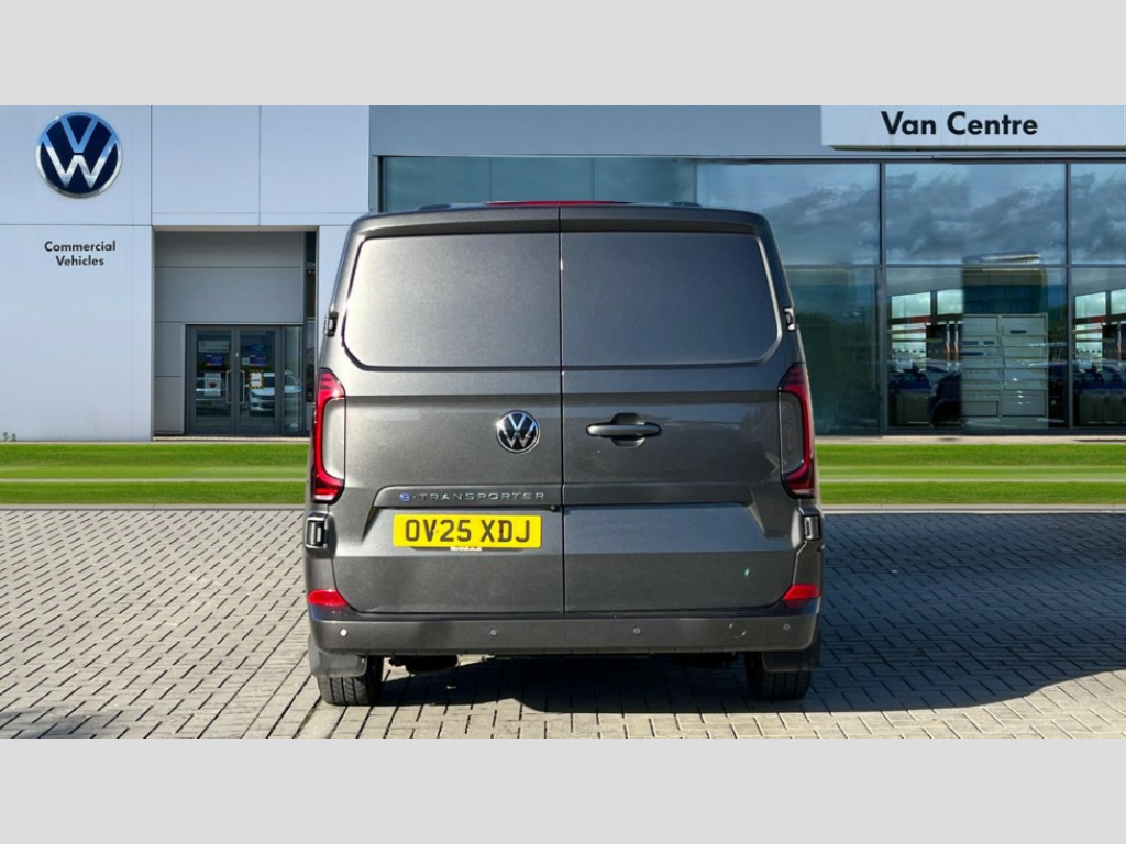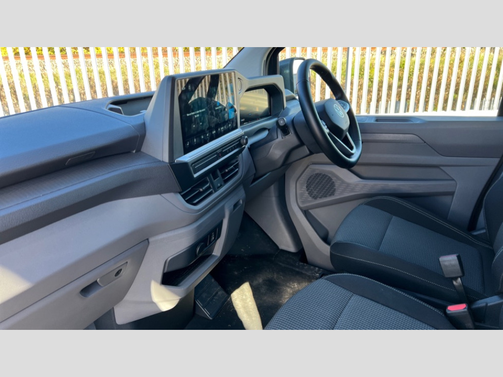 Volkswagen Transporter 100kW 65kWh Commerce Pro Van Auto 12" digital drivers display, 13" touchscreen infotainment display with wireless app connect and DAB radio, 5G Modem, Adaptive cruise control, Apple CarPlay and Android Auto, Dynamic road sign display, eCall emergency system, Electromechanical speed sensitive power steering, height and longitudinally adjustable steering column, Lane and blind spot assist with exit warning system, Preparation of VW connect and connect plus, Traffic jam assist, Wireless mobile phone charging, Wrong way driver warning, Body colour bumpers, Body coloured door handles, Body coloured door mirrors, Body coloured radiator grille, Electrically heated, adjustable and folding door mirrors, Heat reflecting side window glass, LED rear lights with exclusive light signature, Mud flaps front and rear, Rear Transporter nameplate in black grained decorative trim, Vehicle opening configuration 1x 1st row of seats, 2x all doors, 12V outlet in centre console and 12V outlet on rear right D-pillar, 2x 15-W USB data/charging ports in dashboard and 1x USB-C, 1x USB-A center bottom, 2x LED lights in load compartment, 3 spoke heated leather wrapped multi function steering wheel, 3x additional super bright LED lights in load compartment, 4 way height and tilt adjustable head restraints, 5 additional USB-C charging ports, Black plastic scuff plate for sliding door in cargo without illumination, Cabin interior lighting, Electric auxiliary heater, Glasses compartment in driver side roof, Grab handle on A-pillar passenger side, Heat pump, Illuminated lockable glovebox, Lashing rings for reinforced floor covering, Narrow centre console with cup holder and compartment for mobile phone, Overhead storage compartment, Rubber floor covering in cab, Striped fabric upholstery, Without passenger seats in load compartment, Driver and front passenger airbag with front passenger airbag deactivation, Front and curtain airbags for driver and front passenger, Seat belt pretensioner for driver seat, Single tone horn, Anti theft alarm system with interior monitoring in cab, backup horn and towing protection, Electronic immobiliser, Lockable wheel bolts, Preparation for alcohol ignition interlock, 5+ Promise, Electromechanical brake booster, Electronic stability control, ABS, ASR with deactivation button, hill start assist and brake assist system, Mode 3 charging cable, type 2, 3-phase, 32A, cable length 5m, Without alternator, Goodyear all season tyres, Tyre mobility kit in lieu of spare wheel with 12 volt compressor and tyre sealant