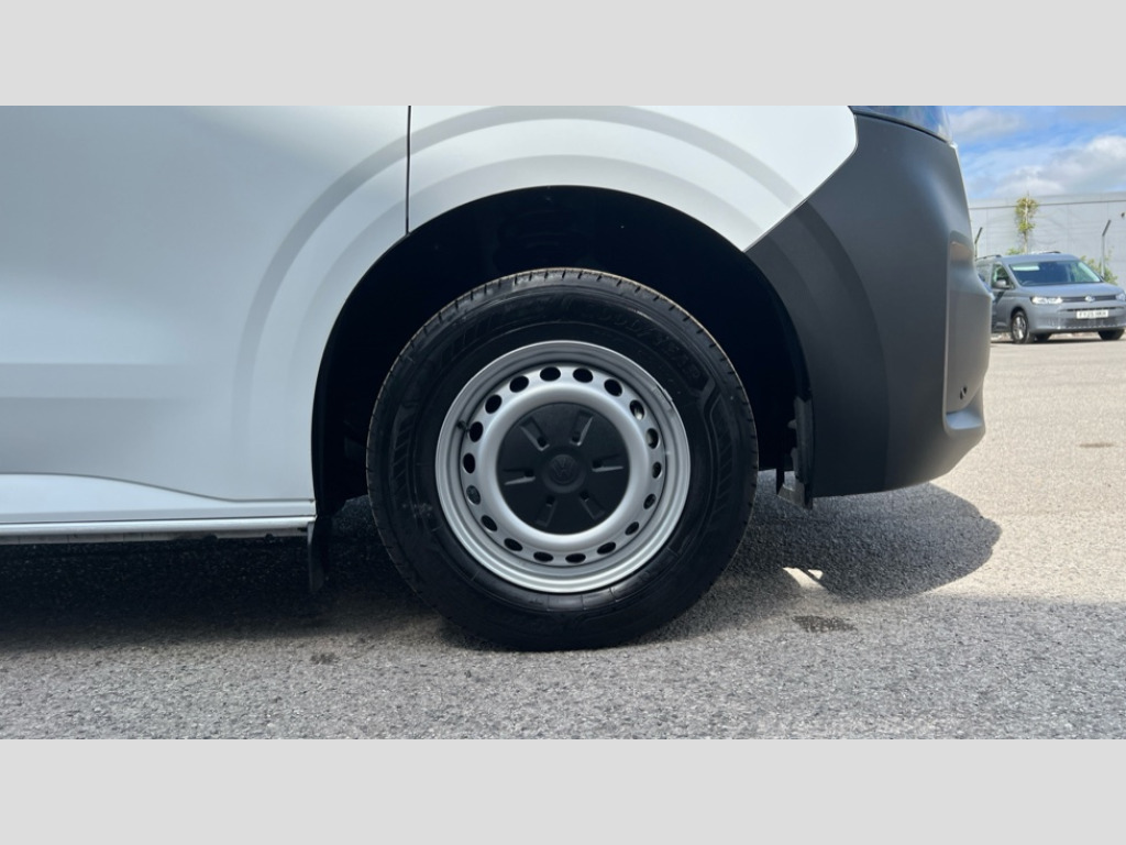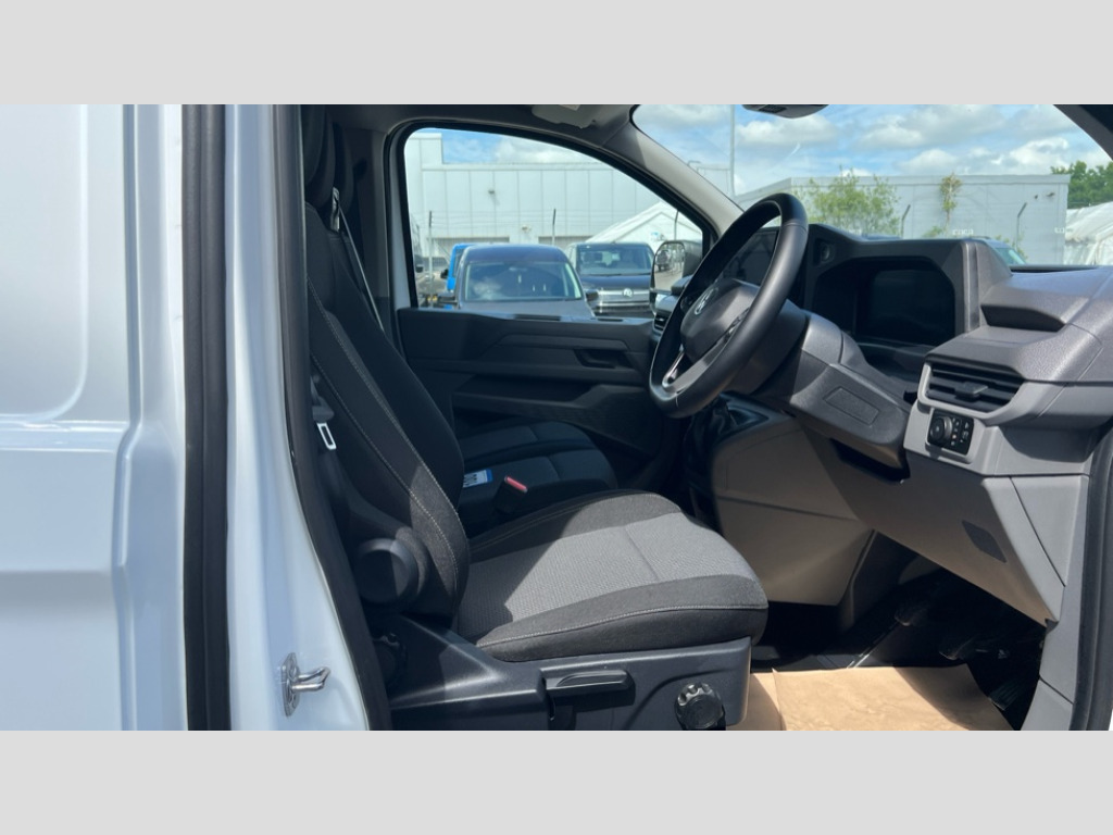 Volkswagen Transporter 2.0 TDI 150 Commerce Plus Van 12" digital drivers display, 13" touchscreen infotainment display with wireless app connect and DAB radio, 5G Modem, Apple CarPlay and Android Auto, Cruise control, Dynamic road sign display, eCall emergency system, Electromechanical speed sensitive power steering, height and longitudinally adjustable steering column, Lane assist, Preparation of VW connect and connect plus, Wrong way driver warning, 4 speakers - 2x dashboard, 2x cab doors, Body coloured door handles, Heat reflecting side window glass, Mud flaps front and rear, Rear Transporter nameplate in black grained decorative trim, Vehicle opening configuration 1x 1st row of seats, 2x all doors, 2x 15-W USB data/charging ports in dashboard and 1x USB-C, 1x USB-A center bottom, 2x LED lights in load compartment, 3 spoke leather wrapped multi function steering wheel, 4 way height and tilt adjustable head restraints, Black plastic scuff plate for sliding door in cargo without illumination, Cabin interior lighting, Lashing rings for reinforced floor covering, Leatherette gear lever, Narrow centre console with cup holder and compartment for mobile phone, Overhead storage compartment, Roof grab handle on front passenger side, Rubber floor covering in cab, Striped fabric upholstery, Without passenger seats in load compartment, Driver and front passenger airbag with front passenger airbag deactivation, Dual tone horn, Front and curtain airbags for driver and front passenger, Seat belt pretensioner for driver seat, Anti theft alarm system with interior monitoring in cab, backup horn and towing protection, Electronic immobiliser, Preparation for alcohol ignition interlock, 5+ Promise, Alternator - 230A, Electronic stability control, ABS, ASR with deactivation button, hill start assist and brake assist system