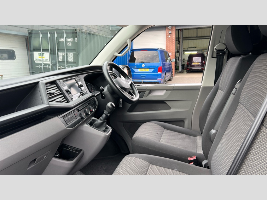 Volkswagen Transporter 2.0 TDI 110 Highline Van Adaptive cruise control, Cross wind assist, Dimmable illuminated instruments, Driver alert with Multi-function display plus, eCall emergency system, Forward collision warning front assist with autonomous emergency braking, Mobile phone interface, Multi function display plus with black and white display, 2 USB interfaces type C in dashboard, 4 speakers with 2 tweeters and 2 woofers, Composition colour radio with 6.5" touchscreen, Digital radio reception (DAB+), Volkswagen app connect, Automatic headlight control, leaving home and manual coming home feature, Closing rear wing door with unlatching from the inside, Front fog lamps with cornering light, Heat insulating glass (green) in cab and passenger/load compartment, Heated front windscreen, Left convex exterior mirror, Power folding adjustable door mirrors with separately heated, Radiator grille with 2 chrome trims, Rear wing doors without window apertures, Right convex exterior mirror, Transporter nameplate on the rear fender, Windshield wiper intermittent control with rain sensor for windshield wipers, 3 spoke leather wrapped multi function steering wheel, Auto dimming breakaway interior rear view mirror, Comfort headliner in cab, hardboard roof trim in passenger and load compartment, Dust/pollen filter, Front and rear left without window closed side panel in load compartment, Front seats on the right in 1st row of seat, Glove compartment with illumination, Heavy duty tool kit and jack, High partition, Interior plastic loading edge protection, LED Interior lighting in load and passenger compartment, Manual adjustable lumbar support for right single seat in 1st row seats, Refrigerant R134a, Standard lower part dashboard in palladium, Storage compartments on cab seats and reading light, Without right side window apertures in passenger and load compartment, Comfort pack - Transporter, Exterior pack without fog light- Transporter, Non smoker pack - Transporter, 3 point height adjustable seat belts on outer seats cab with electric pretensioners, Driver and front passenger airbag with front passenger airbag deactivation, Warning buzzer and light for driver and front passenger seat belt not fastened, Without child safety lock in passenger compartment, Anti theft alarm system with interior monitoring in cab, backup horn and towing protection, Lockable wheel bolts, 16" chassis with 16" brake system, Diesel particulate filter, Electronic stability control, ABS, ASR with deactivation button, hill start assist and brake assist system, Start/stop system with regenerative breaking, 16" Clayton alloy wheels