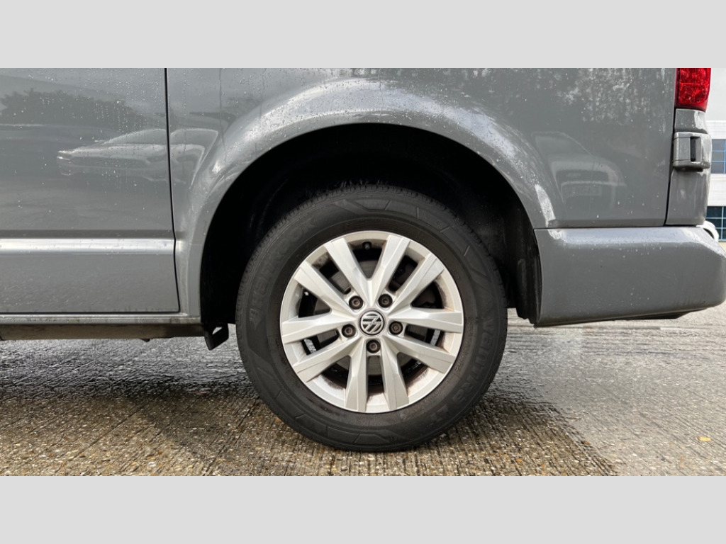 Volkswagen Transporter 2.0 TDI 110 Highline Van Adaptive cruise control, Cross wind assist, Dimmable illuminated instruments, Driver alert with Multi-function display plus, eCall emergency system, Electromechanical speed sensitive power steering, height and longitudinally adjustable steering column, Forward collision warning front assist with autonomous emergency braking, Mobile phone interface, Multi function display plus with black and white display, 2 USB interfaces type C in dashboard, 4 speakers with 2 tweeters and 2 woofers, Composition colour radio with 6.5" touchscreen, Digital radio reception (DAB+), Volkswagen app connect, Automatic headlight control, leaving home and manual coming home feature, Closing rear wing door with unlatching from the inside, Front fog lamps with cornering light, Heat insulating glass (green) in cab and passenger/load compartment, Heated front windscreen, Left convex exterior mirror, Power folding adjustable door mirrors with separately heated, Radiator grille with 2 chrome trims, Rear wing doors without window apertures, Right convex exterior mirror, Transporter nameplate on the rear fender, Windshield wiper intermittent control with rain sensor for windshield wipers, 3 spoke leather wrapped multi function steering wheel, Auto dimming breakaway interior rear view mirror, Comfort headliner in cab, hardboard roof trim in passenger and load compartment, Dust/pollen filter, Front and rear left without window closed side panel in load compartment, Front seats on the right in 1st row of seat, Glove compartment with illumination, Heavy duty tool kit and jack, High partition, Interior plastic loading edge protection, LED Interior lighting in load and passenger compartment, Manual adjustable lumbar support for right single seat in 1st row seats, Refrigerant R134a, Standard lower part dashboard in palladium, Storage compartments on cab seats and reading light, Without right side window apertures in passenger and load compartment, Comfort pack - Transporter, Exterior pack without fog light- Transporter, Non smoker pack - Transporter, 3 point height adjustable seat belts on outer seats cab with electric pretensioners, Driver and front passenger airbag with front passenger airbag deactivation, Warning buzzer and light for driver and front passenger seat belt not fastened, Without child safety lock in passenger compartment, Anti theft alarm system with interior monitoring in cab, backup horn and towing protection, Lockable wheel bolts, 16" chassis with 16" brake system, Additional 12V socket, Diesel particulate filter, Electronic stability control, ABS, ASR with deactivation button, hill start assist and brake assist system, Start/stop system with regenerative breaking, 16" Clayton alloy wheels
