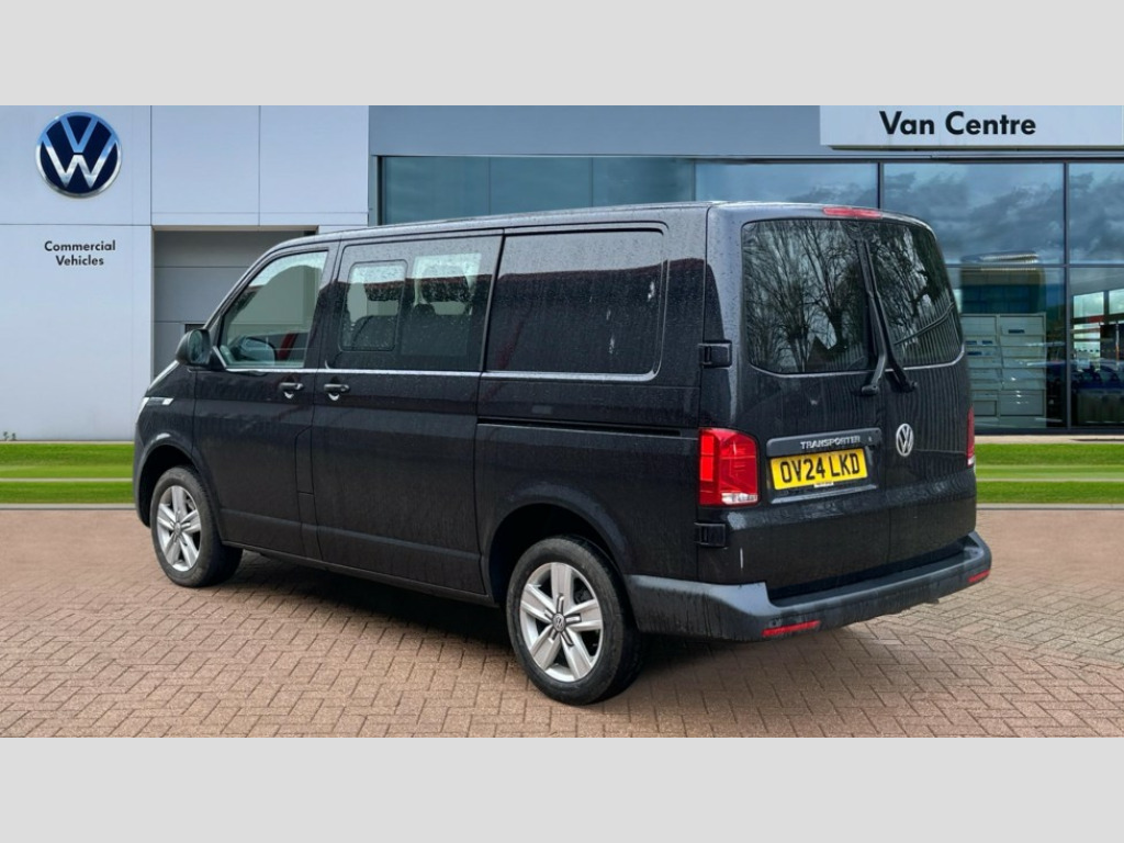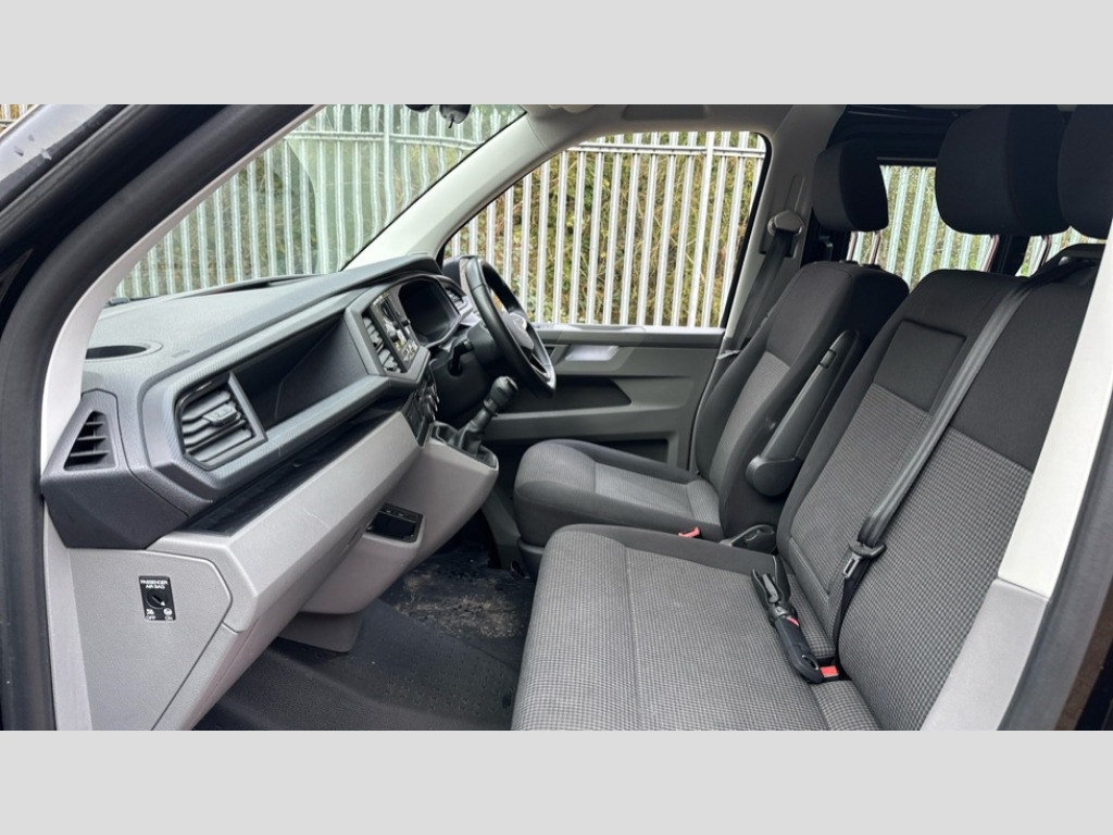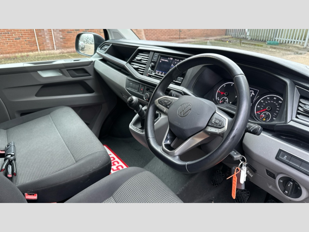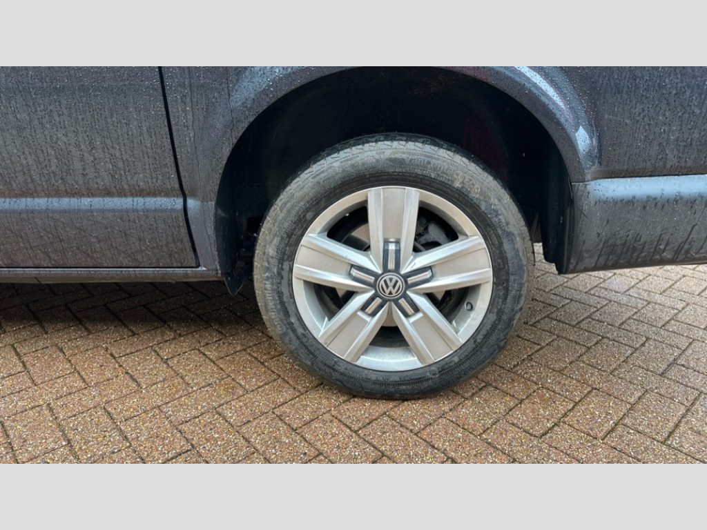 Volkswagen Transporter 2.0 TDI 110 Startline Kombi Van Child seat anchors ISOFIX and top tether in 2nd row of seats, Cross wind assist, Dimmable illuminated instruments, Driver alert with black and white multi function display plus, eCall emergency system, Forward collision warning front assist with autonomous emergency braking, Headlight range control, Mobile phone interface, Without voice control, 2 USB interfaces type C in dashboard, 4 speakers with 2 tweeters and 2 woofers, Composition colour radio with 6.5" touchscreen, Digital radio reception (DAB+), Volkswagen app connect, 4 stages windshield wiper intermittent control for windshield wipers, Green heat insulating glass, H7 twin halogen headlamps, Illuminated steps in passenger/load compartment, Left convex exterior mirror, Rear combination lamps, Rear window with heated insulating glass, heated rear window wiper and washer system, Right convex exterior mirror, Separate daytime running light (permanently switched on while driving), Tailgate closing with unlatching from the inside, Transporter nameplate on the rear fender, Unpainted radiator grille with 2 chrome trims, Without adhesive film, 1 12V outlet in dashboard, 3 spoke leather wrapped multi function steering wheel, Additional interior noise suppression, Additional sound deadening measures in cab and passenger compartment, Comfort headliner in cab, hardboard roof trim in passenger and load compartment, Dimming breakaway interior rear view mirror, Dust/pollen filter, Folding grab handles on roof frame, Front seats on the right in 1st row of seat, Heavy duty tool kit and jack, Interior plastic loading edge protection, Lashing rings for load restraint system, LED Interior lighting in load and passenger compartment, Medium height for vehicles with window aperture hardboard side trim panels in passenger/load compartment, Standard lower part dashboard in palladium, Sun visors with pocket on driver side and airbag label on front passenger side, Without grab handle for access on A pillar, Without partition, Without refrigerant, Without seats in 3rd row of seats, Non smoker pack - Transporter, Without storage pack - Transporter, 3 point height adjustable seat belts on outer seats cab with electric pretensioners, Driver and front passenger airbag with front passenger airbag deactivation, Power operated child safety lock, Warning buzzer and light for driver seat belt not fastened, Electronic immobiliser, Wheel bolts without wheel locks, 16" chassis with 16" brake system, Diesel particulate filter, Electronic stability control, ABS, ASR with deactivation button, hill start assist and brake assist system, Standard anti drum measures, Start/stop system with regenerative breaking, Wheel trims