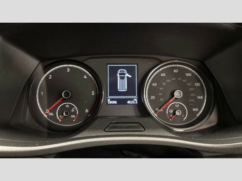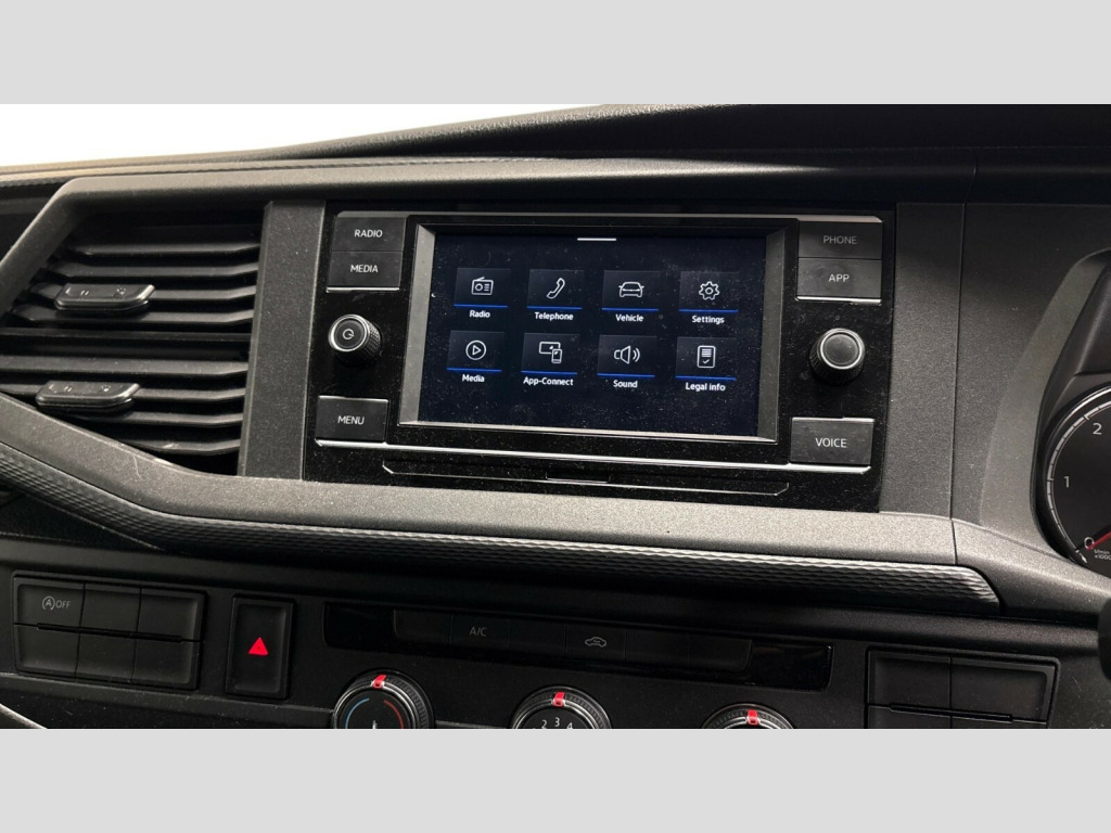Volkswagen Transporter 2.0 TDI 110 Startline Van Cross wind assist, Dimmable illuminated instruments, Driver alert with Multi-function display plus, eCall emergency system, Electromechanical speed sensitive power steering, height and longitudinally adjustable steering column, Forward collision warning front assist with autonomous emergency braking, Mobile phone interface, Multi function display plus with black and white display, 2 USB interfaces type C in dashboard, 4 speakers with 2 tweeters and 2 woofers, Composition colour radio with 6.5" touchscreen, Digital radio reception (DAB+), Volkswagen app connect, 4 stages windshield wiper intermittent control for windshield wipers, Closing rear wing door with unlatching from the inside, H7 twin halogen headlamps, Heat insulating glass (green) in cab and passenger/load compartment, Heat insulating windshield made of laminated glass, Left convex exterior mirror, Rear wing doors without window apertures, Right convex exterior mirror, Separate Daytime running lights, Transporter nameplate on the rear fender, Unpainted radiator grille with 2 chrome trims, 3 spoke leather wrapped multi function steering wheel, Comfort headliner in cab, hardboard roof trim in passenger and load compartment, Dust/pollen filter, Folding grab handles on roof frame, Front and rear left without window closed side panel in load compartment, Front seats on the right in 1st row of seat, Glove compartment without illumination, Heavy duty tool kit and jack, High partition, Interior plastic loading edge protection, LED Interior lighting in load and passenger compartment, Manual adjustable lumbar support for right single seat in 1st row seats, Standard lower part dashboard in palladium, Without breakaway interior rear view mirror, Without refrigerant, Without right side window apertures in passenger and load compartment, Non smoker pack - Transporter, 3 point height adjustable seat belts on outer seats cab with electric pretensioners, Driver and front passenger airbag with front passenger airbag deactivation, Warning buzzer and light for driver and front passenger seat belt not fastened, Without child safety lock in passenger compartment, Electronic immobiliser, Wheel bolts without wheel locks, 16" chassis with 16" brake system, Diesel particulate filter, Electronic stability control, ABS, ASR with deactivation button, hill start assist and brake assist system, Standard anti drum measures, Start/stop system with regenerative breaking