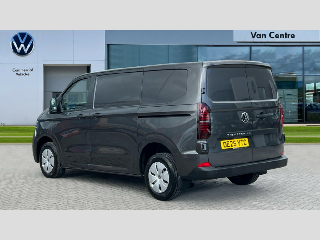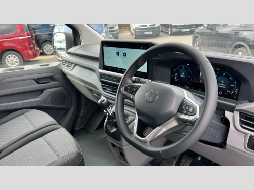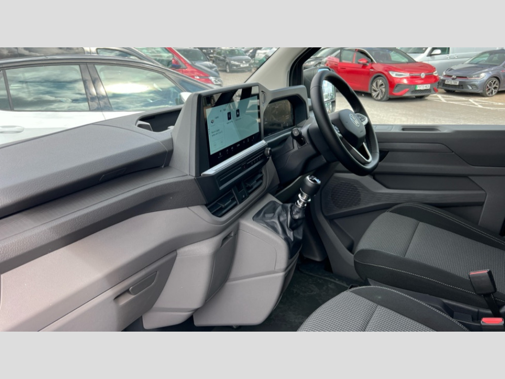 Volkswagen Transporter 2.0 TDI 150 Commerce Plus Van 12" digital drivers display, 13" touchscreen infotainment display with wireless app connect and DAB radio, 5G Modem, Apple CarPlay and Android Auto, Cruise control, Dynamic road sign display, eCall emergency system, Electromechanical speed sensitive power steering, height and longitudinally adjustable steering column, Lane assist, Preparation of VW connect and connect plus, Wrong way driver warning, 4 speakers - 2x dashboard, 2x cab doors, Body coloured door handles, Heat reflecting side window glass, Mud flaps front and rear, Rear Transporter nameplate in black grained decorative trim, Vehicle opening configuration 1x 1st row of seats, 2x all doors, 2x 15-W USB data/charging ports in dashboard and 1x USB-C, 1x USB-A center bottom, 2x LED lights in load compartment, 3 spoke leather wrapped multi function steering wheel, 4 way height and tilt adjustable head restraints, Black plastic scuff plate for sliding door in cargo without illumination, Cabin interior lighting, Lashing rings for reinforced floor covering, Leatherette gear lever, Narrow centre console with cup holder and compartment for mobile phone, Overhead storage compartment, Roof grab handle on front passenger side, Rubber floor covering in cab, Striped fabric upholstery, Without passenger seats in load compartment, Driver and front passenger airbag with front passenger airbag deactivation, Dual tone horn, Front and curtain airbags for driver and front passenger, Seat belt pretensioner for driver seat, Anti theft alarm system with interior monitoring in cab, backup horn and towing protection, Electronic immobiliser, Preparation for alcohol ignition interlock, 5+ Promise, Alternator - 230A, Electronic stability control, ABS, ASR with deactivation button, hill start assist and brake assist system