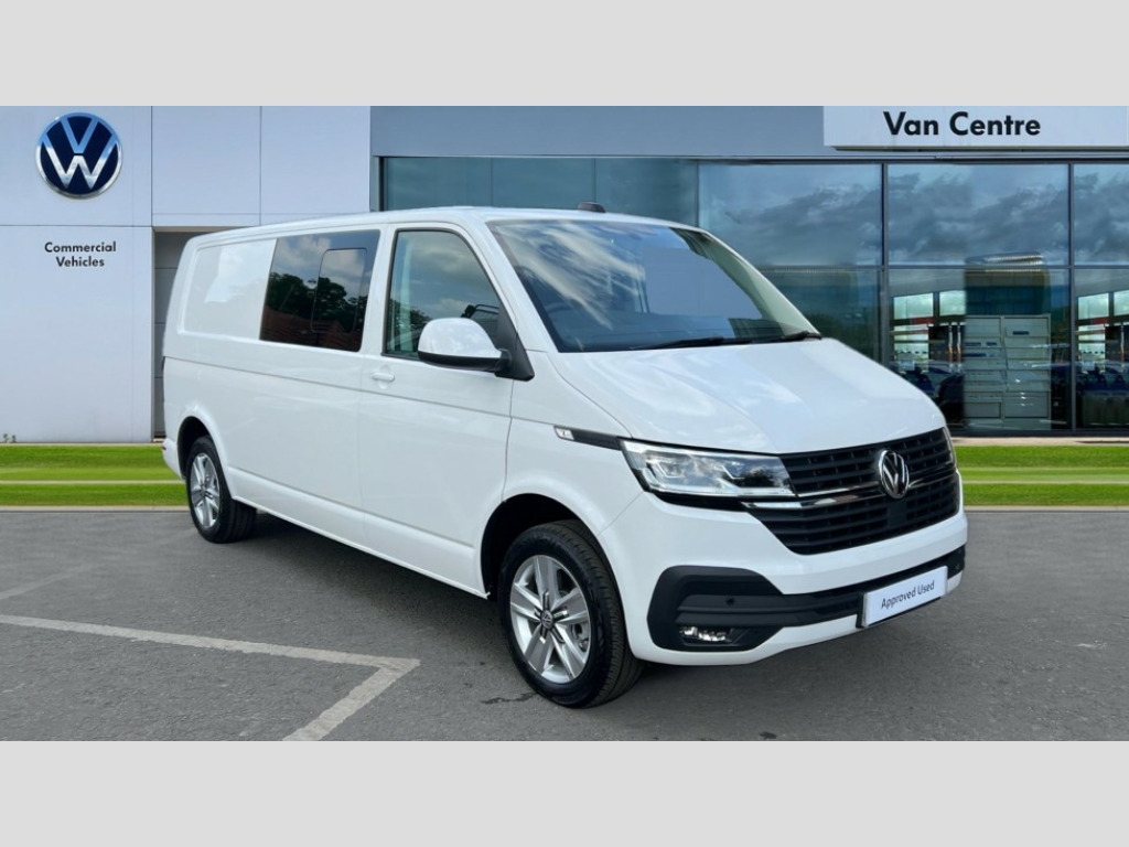 Volkswagen Transporter 2.0 TDI 150 Highline Kombi Van Adaptive cruise control, Child seat anchors ISOFIX and top tether in 2nd row of seats, Cross wind assist, Dimmable illuminated instruments, Driver alert with black and white multi function display plus, eCall emergency system, Forward collision warning front assist with autonomous emergency braking, Headlight range control, Mobile phone interface, Without voice control, 2 USB interfaces type C in dashboard, 4 speakers with 2 tweeters and 2 woofers, Composition colour radio with 6.5" touchscreen, Digital radio reception (DAB+), Volkswagen app connect, Automatic headlight control, leaving home and manual coming home feature, Front fog lamps with cornering light, Green heat insulating glass, Heated front windscreen, Illuminated steps in passenger/load compartment, Left convex exterior mirror, Power folding adjustable door mirrors with separately heated, Privacy glass from the B-pillar and heat-insulating glass in front, Radiator grille with 2 chrome trims, Rear window with heated insulating glass, heated rear window wiper and washer system, Right convex exterior mirror, Tailgate closing with unlatching from the inside, Transporter nameplate on the rear fender, Windshield wiper intermittent control with rain sensor for windshield wipers, Without adhesive film, 3 spoke leather wrapped multi function steering wheel, Additional sound deadening measures in cab and passenger compartment, Auto dimming breakaway interior rear view mirror, Comfort headliner in cab, hardboard roof trim in passenger and load compartment, Dust/pollen filter, Folding grab handles and storage compartments on cab seats, reading light, Front seats on the right in 1st row of seat, Glove compartment with illumination, Heavy duty tool kit and jack, Interior plastic loading edge protection, Lashing rings for load restraint system, LED Interior lighting in load and passenger compartment, Manual height adjustable and lumbar support for driver and single passenger seats, Medium height for vehicles with window aperture hardboard side trim panels in passenger/load compartment, Refrigerant R134a, Standard lower part dashboard in palladium, Without partition, Without seats in 3rd row of seats, Comfort pack - Transporter, Exterior pack without fog light- Transporter, Light and vision pack - Transporter, Non smoker pack - Transporter, 3 point height adjustable seat belts on outer seats cab with electric pretensioners, Driver and front passenger airbag with front passenger airbag deactivation, Power operated child safety lock, Warning buzzer and light for driver seat belt not fastened, Anti theft alarm system with interior monitoring in cab, backup horn and towing protection, Lockable wheel bolts, 16" chassis with 16" brake system, Additional 12V socket, Diesel particulate filter, Electronic stability control, ABS, ASR with deactivation button, hill start assist and brake assist system, Speed limiter, Start/stop system with regenerative breaking, 17" Devonport alloy wheels, Wheel trims