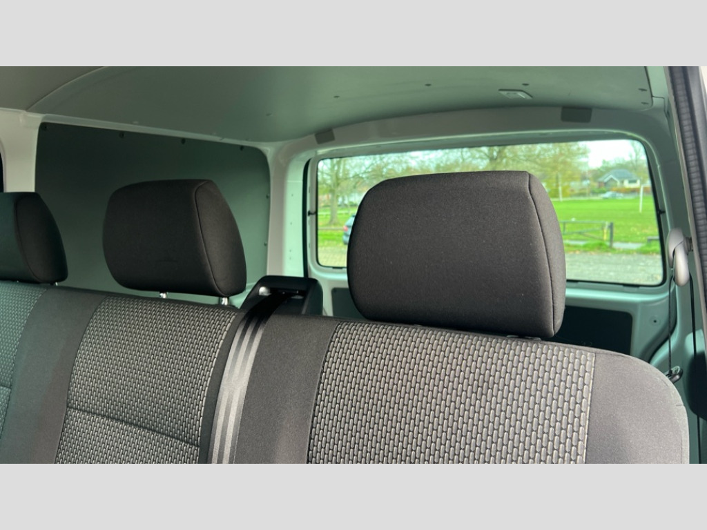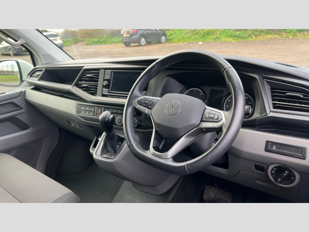 Volkswagen Transporter 2.0 TDI 150 Highline Kombi Van DSG Adaptive cruise control, Child seat anchors ISOFIX and top tether in 2nd row of seats, Cross wind assist, Dimmable illuminated instruments, Driver alert with black and white multi function display plus, eCall emergency system, Forward collision warning front assist with autonomous emergency braking, Headlight range control, Mobile phone interface, Without voice control, 2 USB interfaces type C in dashboard, 4 speakers with 2 tweeters and 2 woofers, Composition colour radio with 6.5" touchscreen, Digital radio reception (DAB+), Volkswagen app connect, Automatic headlight control, leaving home and manual coming home feature, Front fog lamps with cornering light, Green heat insulating glass, Heated front windscreen, Illuminated steps in passenger/load compartment, Left convex exterior mirror, Power folding adjustable door mirrors with separately heated, Privacy glass from the B-pillar and heat-insulating glass in front, Radiator grille with 2 chrome trims, Rear window with heated insulating glass, heated rear window wiper and washer system, Right convex exterior mirror, Tailgate closing with unlatching from the inside, Transporter nameplate on the rear fender, Windshield wiper intermittent control with rain sensor for windshield wipers, Without adhesive film, 3 spoke leather wrapped multi function steering wheel, Additional sound deadening measures in cab and passenger compartment, Auto dimming breakaway interior rear view mirror, Comfort headliner in cab, hardboard roof trim in passenger and load compartment, Dust/pollen filter, Folding grab handles and storage compartments on cab seats, reading light, Front seats on the right in 1st row of seat, Glove compartment with illumination, Heavy duty tool kit and jack, Interior plastic loading edge protection, Lashing rings for load restraint system, LED Interior lighting in load and passenger compartment, Manual height adjustable and lumbar support for driver and single passenger seats, Medium height for vehicles with window aperture hardboard side trim panels in passenger/load compartment, Refrigerant R134a, Standard lower part dashboard in palladium, Without partition, Without seats in 3rd row of seats, Comfort pack - Transporter, Exterior pack without fog light- Transporter, Light and vision pack - Transporter, Non smoker pack - Transporter, 3 point height adjustable seat belts on outer seats cab with electric pretensioners, Driver and front passenger airbag with front passenger airbag deactivation, Power operated child safety lock, Warning buzzer and light for driver seat belt not fastened, Anti theft alarm system with interior monitoring in cab, backup horn and towing protection, Lockable wheel bolts, 16" chassis with 16" brake system, Additional 12V socket, Diesel particulate filter, Electronic stability control, ABS, ASR with deactivation button, hill start assist and brake assist system, Speed limiter, Start/stop system with regenerative breaking, 17" Devonport alloy wheels, Wheel trims