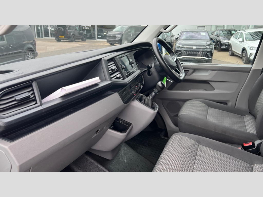 Volkswagen Transporter 2.0 TDI 150 Highline Van Adaptive cruise control, Cross wind assist, Dimmable illuminated instruments, Driver alert with Multi-function display plus, eCall emergency system, Forward collision warning front assist with autonomous emergency braking, Mobile phone interface, Multi function display plus with black and white display, 2 USB interfaces type C in dashboard, 4 speakers with 2 tweeters and 2 woofers, Composition colour radio with 6.5" touchscreen, Digital radio reception (DAB+), Volkswagen app connect, Closing rear wing door with unlatching from the inside, Front fog lamps with cornering light, Heat insulating glass (green) in cab and passenger/load compartment, Heated front windscreen, Left convex exterior mirror, Power folding adjustable door mirrors with separately heated, Radiator grille with 2 chrome trims, Rear wing doors without window apertures, Right convex exterior mirror, Transporter nameplate on the rear fender, 3 spoke leather wrapped multi function steering wheel, Comfort headliner in cab, hardboard roof trim in passenger and load compartment, Dust/pollen filter, Front and rear left without window closed side panel in load compartment, Front seats on the right in 1st row of seat, Heavy duty tool kit and jack, High partition, Interior plastic loading edge protection, LED Interior lighting in load and passenger compartment, Refrigerant R134a, Standard lower part dashboard in palladium, Storage compartments on cab seats and reading light, Without right side window apertures in passenger and load compartment, Comfort pack - Transporter, Exterior pack without fog light- Transporter, Light and vision pack - Transporter, Non smoker pack - Transporter, 3 point height adjustable seat belts on outer seats cab with electric pretensioners, Driver and front passenger airbag with front passenger airbag deactivation, Warning buzzer and light for driver and front passenger seat belt not fastened, Without child safety lock in passenger compartment, Anti theft alarm system with interior monitoring in cab, backup horn and towing protection, Lockable wheel bolts, 16" chassis with 16" brake system, Diesel particulate filter, Electronic stability control, ABS, ASR with deactivation button, hill start assist and brake assist system, Start/stop system with regenerative breaking, 16" Clayton alloy wheels