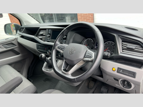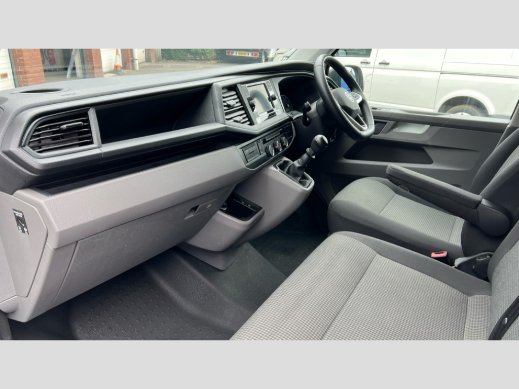 Volkswagen Transporter 2.0 TDI 150 Startline Van Adaptive cruise control, Cross wind assist, Dimmable illuminated instruments, Driver alert with Multi-function display plus, eCall emergency system, Forward collision warning front assist with autonomous emergency braking, Mobile phone interface, Multi function display plus with black and white display, 2 USB interfaces type C in dashboard, 4 speakers with 2 tweeters and 2 woofers, Composition colour radio with 6.5" touchscreen, Digital radio reception (DAB+), Volkswagen app connect, Closing rear wing door with unlatching from the inside, Front fog lamps with cornering light, Heat insulating glass (green) in cab and passenger/load compartment, Heated front windscreen, Left convex exterior mirror, Power folding adjustable door mirrors with separately heated, Radiator grille with 2 chrome trims, Rear wing doors without window apertures, Right convex exterior mirror, Transporter nameplate on the rear fender, 3 spoke leather wrapped multi function steering wheel, Comfort headliner in cab, hardboard roof trim in passenger and load compartment, Dust/pollen filter, Front and rear left without window closed side panel in load compartment, Front seats on the right in 1st row of seat, Heavy duty tool kit and jack, High partition, Interior plastic loading edge protection, LED Interior lighting in load and passenger compartment, Refrigerant R134a, Standard lower part dashboard in palladium, Storage compartments on cab seats and reading light, Without right side window apertures in passenger and load compartment, Comfort pack - Transporter, Exterior pack without fog light- Transporter, Light and vision pack - Transporter, Non smoker pack - Transporter, 3 point height adjustable seat belts on outer seats cab with electric pretensioners, Driver and front passenger airbag with front passenger airbag deactivation, Warning buzzer and light for driver and front passenger seat belt not fastened, Without child safety lock in passenger compartment, Anti theft alarm system with interior monitoring in cab, backup horn and towing protection, Lockable wheel bolts, 16" chassis with 16" brake system, Diesel particulate filter, Electronic stability control, ABS, ASR with deactivation button, hill start assist and brake assist system, Start/stop system with regenerative breaking, 16" Clayton alloy wheels