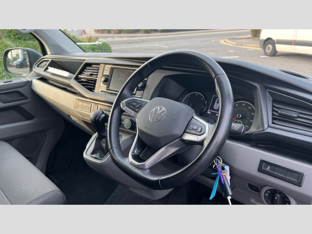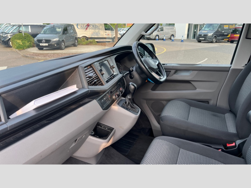 Volkswagen Transporter 2.0 TDI 150 Highline Van DSG Adaptive cruise control, Cross wind assist, Dimmable illuminated instruments, Driver alert with Multi-function display plus, eCall emergency system, Forward collision warning front assist with autonomous emergency braking, Mobile phone interface, Multi function display plus with black and white display, 2 USB interfaces type C in dashboard, 4 speakers with 2 tweeters and 2 woofers, Composition colour radio with 6.5" touchscreen, Digital radio reception (DAB+), Volkswagen app connect, Closing rear wing door with unlatching from the inside, Front fog lamps with cornering light, Heat insulating glass (green) in cab and passenger/load compartment, Heated front windscreen, Left convex exterior mirror, Power folding adjustable door mirrors with separately heated, Radiator grille with 2 chrome trims, Rear wing doors without window apertures, Right convex exterior mirror, Transporter nameplate on the rear fender, 3 spoke leather wrapped multi function steering wheel, Comfort headliner in cab, hardboard roof trim in passenger and load compartment, Dust/pollen filter, Front and rear left without window closed side panel in load compartment, Front seats on the right in 1st row of seat, Heavy duty tool kit and jack, High partition, Interior plastic loading edge protection, LED Interior lighting in load and passenger compartment, Refrigerant R134a, Standard lower part dashboard in palladium, Storage compartments on cab seats and reading light, Without right side window apertures in passenger and load compartment, Comfort pack - Transporter, Exterior pack without fog light- Transporter, Light and vision pack - Transporter, Non smoker pack - Transporter, 3 point height adjustable seat belts on outer seats cab with electric pretensioners, Driver and front passenger airbag with front passenger airbag deactivation, Warning buzzer and light for driver and front passenger seat belt not fastened, Without child safety lock in passenger compartment, Anti theft alarm system with interior monitoring in cab, backup horn and towing protection, Lockable wheel bolts, 16" chassis with 16" brake system, Diesel particulate filter, Electronic stability control, ABS, ASR with deactivation button, hill start assist and brake assist system, Start/stop system with regenerative breaking, 16" Clayton alloy wheels