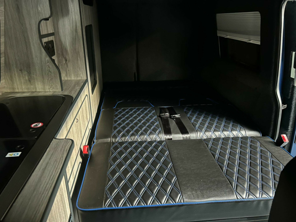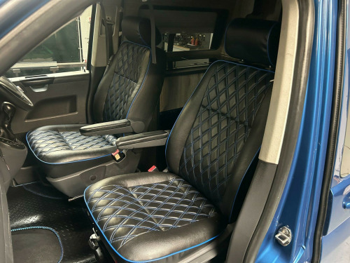 SD Vans LTD are pleased to present this stunning newly converted Volkswagen T5.1 SWB Transporter 4 berth campervan.Seats 4, Viewing very welcome! Secure now with a small deposit.Includes Fully equipped kitchen complete with twin hob, a sink and fridge, perfect for all your on road needs.Nation wide delivery availableNew leather interiorNew alloy wheels and tyresAir conditioningCruise controlOnboard water tank1 owner 2 keys, Full Volkswagen service history, Cambelt and water pump replaced.Viewing welcome, AT SD VANS LTD OUR AIM IS TO MAKE YOUR VEHICLE PURCHASE AS PLEASURABLE AS POSSIBLE AND WE ARE PROUD TO OFFER A FRIENDLY BUT PROFESSIONAL SERVICE. ALL OUR VEHICLES ARE FULLY INSPECTED BY OUR TEAM OF TRAINED TECHNICIANS, ALL OUR VEHICLES ARE FULLY VALETED, MULTIPOINT INSPECTION, AND NEW MOT IF DUE. WE OFFER FINANCE AND WILL TAKE YOUR OLD VEHICLE IN PART EXCHANGE. PLEASE VISIT OUR WEBSITE FOR MORE STOCK, CALL US TODAY OR VISIT OUR INDOOR SHOWROOM NEAR BASINGSTOKE JUST OFF JUNCTION 6 OF THE M3, OPTIONS FOR EXTENED WARRANTY AVAILABLE. v power, air conditioning, alloy wheels, blinds, central locking, colour coded bumpers, electric windows, external 240v, fresh/waste water tank, fridge/freezer, hob, internal window blinds, leather upholstery, leisure battery, mains electric, rear seat belts, reversing sensors, sink, sink and drainer, swivel passenger seat, waste water tank