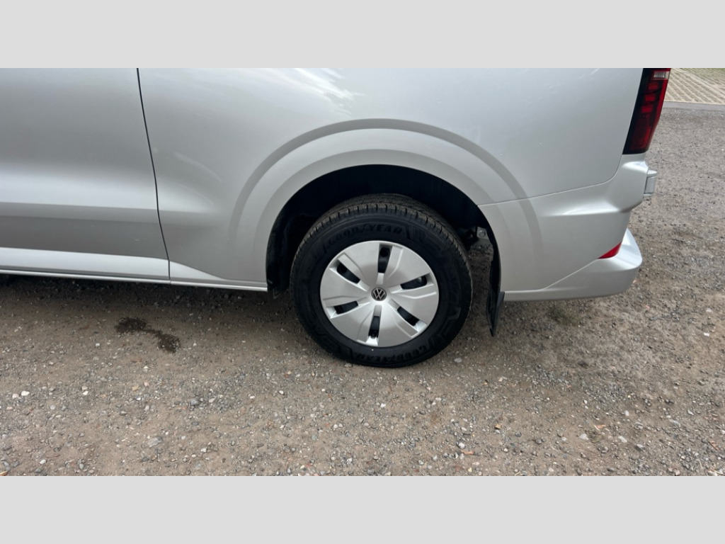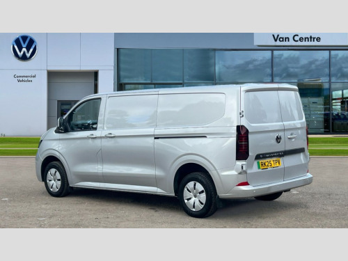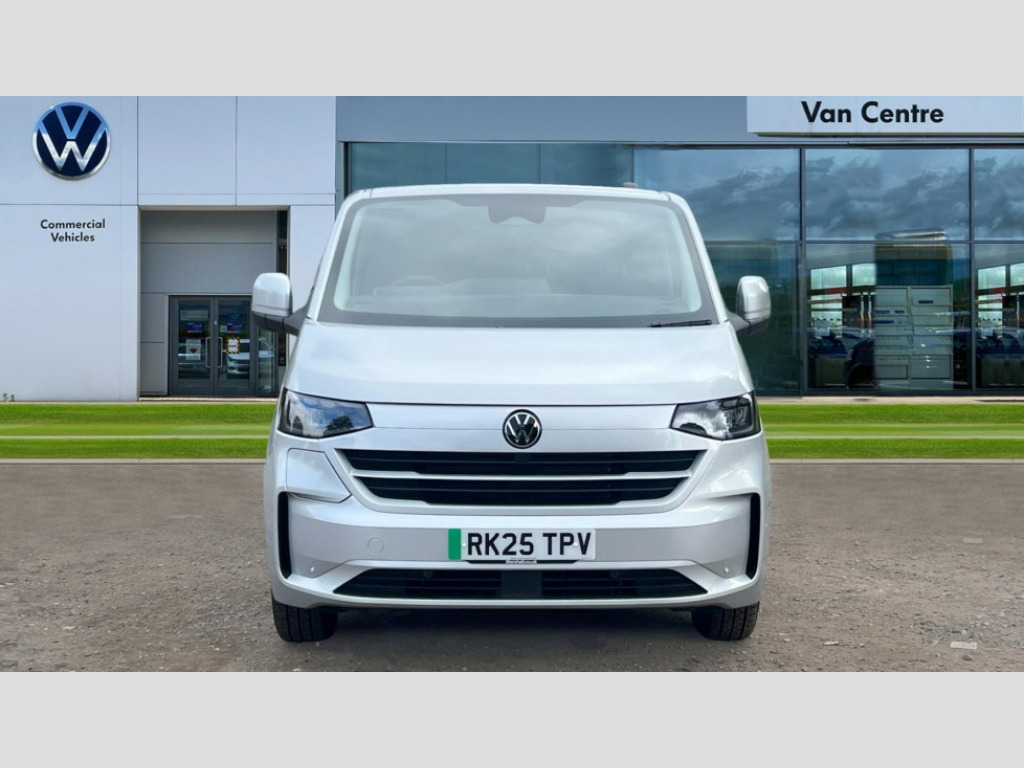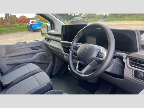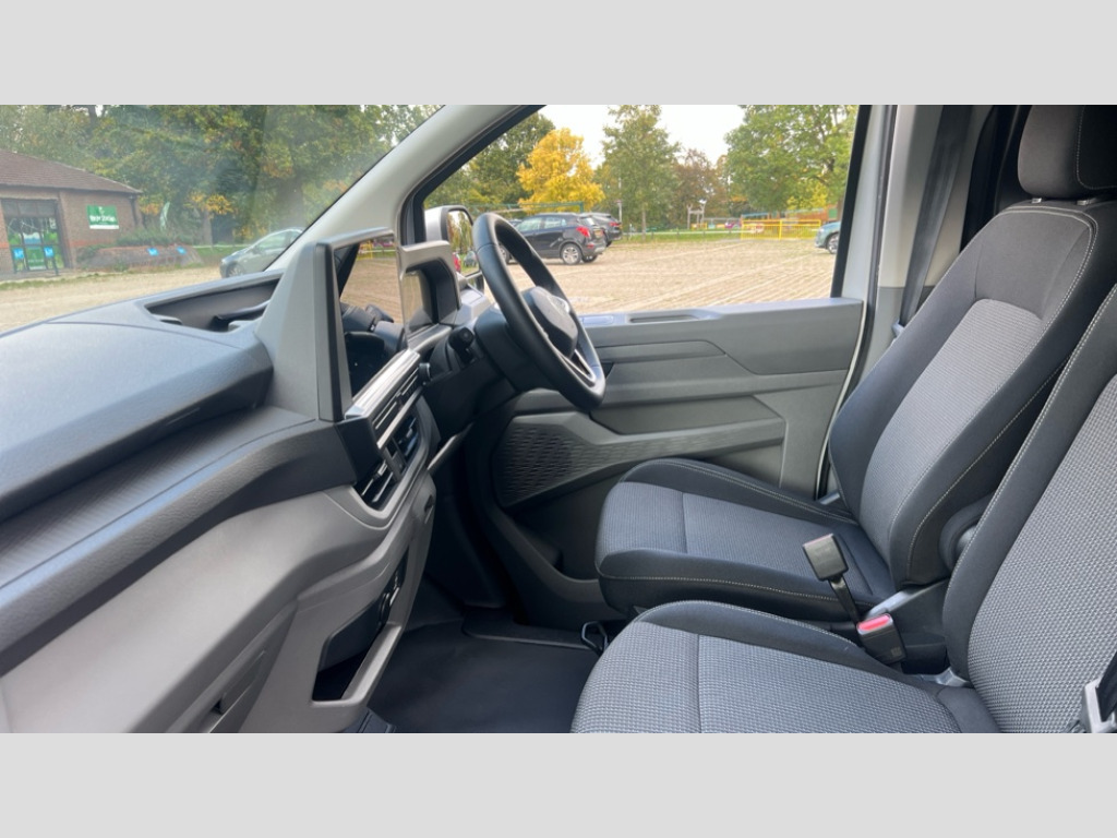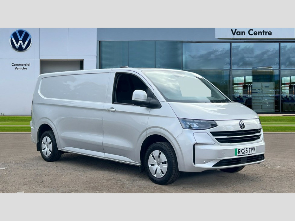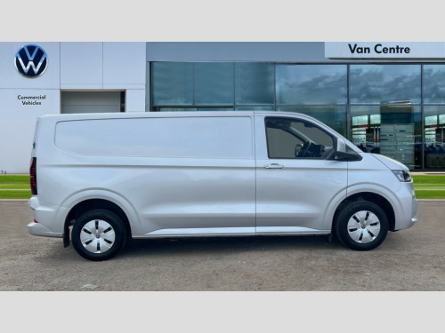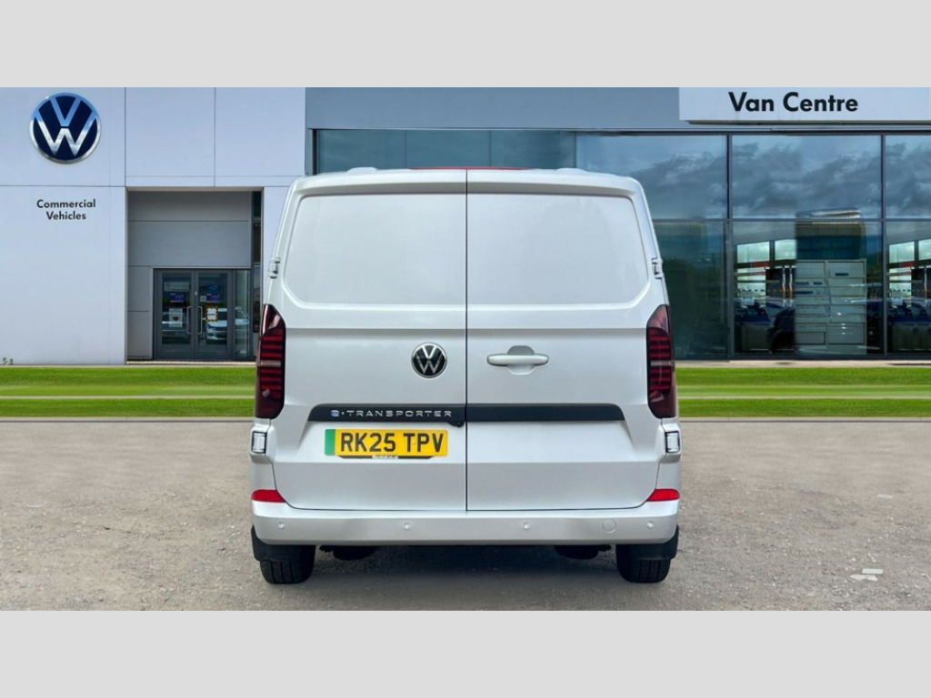 Volkswagen Transporter 100kW 65kWh Commerce Plus Van Auto 12" digital drivers display, 13" touchscreen infotainment display with wireless app connect and DAB radio, 5G Modem, Apple CarPlay and Android Auto, Cruise control, Dynamic road sign display, eCall emergency system, Electromechanical speed sensitive power steering, height and longitudinally adjustable steering column, Lane assist, Preparation of VW connect and connect plus, Wrong way driver warning, 4 speakers - 2x dashboard, 2x cab doors, Body coloured door handles, Heat reflecting side window glass, Mud flaps front and rear, Rear Transporter nameplate in black grained decorative trim, Vehicle opening configuration 1x 1st row of seats, 2x all doors, 2x 15-W USB data/charging ports in dashboard and 1x USB-C, 1x USB-A center bottom, 2x LED lights in load compartment, 4 way height and tilt adjustable head restraints, Black plastic scuff plate for sliding door in cargo without illumination, Cabin interior lighting, Electric auxiliary heater, Heat pump, Lashing rings for reinforced floor covering, Narrow centre console with cup holder and compartment for mobile phone, Overhead storage compartment, Roof grab handle on front passenger side, Rubber floor covering in cab, Striped fabric upholstery, Without passenger seats in load compartment, Driver and front passenger airbag with front passenger airbag deactivation, Front and curtain airbags for driver and front passenger, Seat belt pretensioner for driver seat, Single tone horn, Anti theft alarm system with interior monitoring in cab, backup horn and towing protection, Electronic immobiliser, Preparation for alcohol ignition interlock, 5+ Promise, Electromechanical brake booster, Electronic stability control, ABS, ASR with deactivation button, hill start assist and brake assist system, Mode 3 charging cable, type 2, 3-phase, 32A, cable length 5m, Goodyear all season tyres, Tyre mobility kit in lieu of spare wheel with 12 volt compressor and tyre sealant