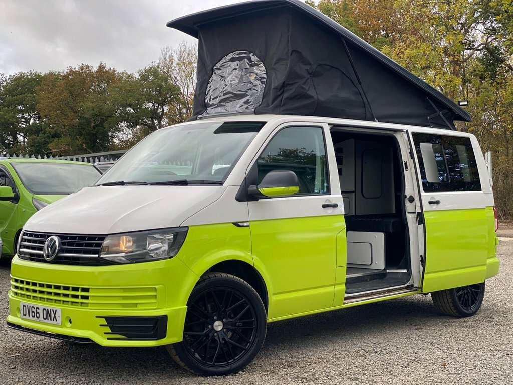 PODIUM PCL IS DELIGHTED TO PRESENT A VW TRASNPORTER MOTORHOME FRESHLY CONVERTED, 4 BERTH AND 5 SEAT BELTS, REAR SPACIOUS LOUNGE A ROCK & ROLL BED AND A POP UP ROOF FINSHED IN GLOSS BLACK, M1 THE VULCAN RECLINER 1100mm DOUBLE SEAT BED WITH QUICK RELEASE MECHANISM, HALF PAINTED IN ACID GREEN WHICH MAKE IT STANDS OUT, ALL ELECTRICAL CONNECTIONS DONE, 2 BURNER STOVE CONNECTION, LARGE SINK INSTALLED, WINDOWS, AMPLE STORAGE, JUST SERVICED, MOT VALID UNTIL 05/06/2026, 1 PREVIOUS OWNER, SERVICE HISTORY WITH 4 SERVICES. Step into the world of Podium PCL, where quality, trust, and expertise come together to create a refined vehicle-buying experience. We proudly showcase a wide selection of over 200 meticulously handpicked vehicles, including Cars, SUVs, Vans, Motorhomes, and Campervans. Each vehicle is carefully sourced by our expert purchasing team, backed by over 12 years of industry experience, and undergoes thorough checks to ensure the highest standards. All our vehicles are HPI clear and supported by the AA Dealer Promise, offering complete peace of mind with every purchase. Enjoy the added benefit of 12 months of complimentary AA breakdown cover, along with a 3-month warranty included within the advertised price, extendable up to 3 years for long-term reassurance. We also offer swift vehicle deliveryfree within a 60-mile radius and just ?2 per mile thereafter (Scotland rates may vary). Once payment is received, we aim to deliver your vehicle within 48 hours. Visit Podium PCL 12v Power, ABS, Air Con, Alarm, Alloy Wheels, Battery Charger, Blinds, Blown Air Heating, Cocktail Cabinet, End Lounge, External 240v, External Battery Locker, Fixed Bed, Fresh/Waste Water Tank, Gas Hob, Immobiliser, Laminated Floor Construction, Leisure Battery, On board water tank, Sink, Warranty