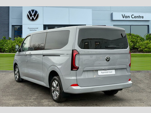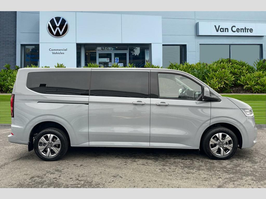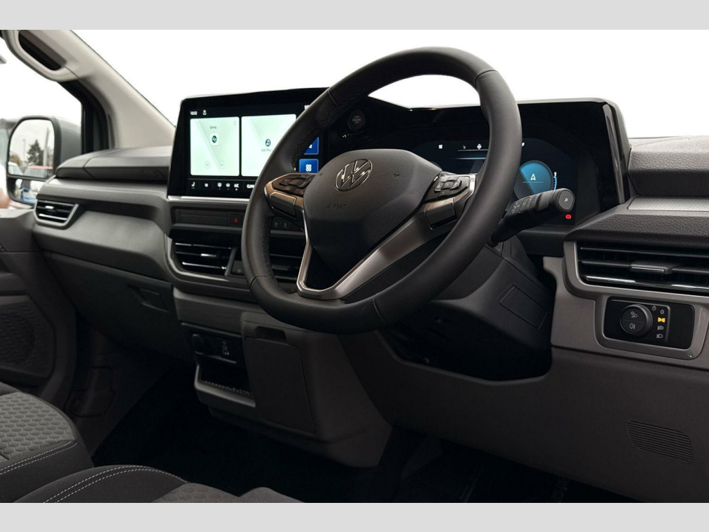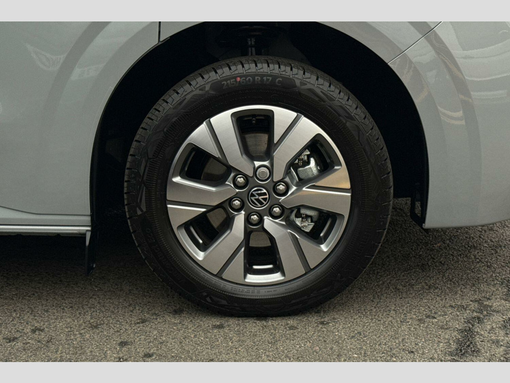 Stone Grey-Solid Paint, Stone Grey-Solid Paint, Life 3 Seater Cab Pack, Panoramic Glass Sunroof, 17" Monte Carlo Alloy Wheels In Grey, LED Tailgate Lighting, Stone Grey-Solid Paint, Panoramic glass sunroof, Solid paint, LED surround lighting units in tailgate with additional switch on D pillar, Parking sensors front + rear, Rear view camera, 9 Seat pack 3/3/3 confirguration, Dimming breakaway interior rear view mirror, Leather wrapped multi function steering wheel, Carpet floor covering in cab and passenger/load compartment, Heated front seats, individually controllable, Life cab 3 heated seat package - Shuttle, Solid - Stone Grey, 17" Monte carlo grey metallic diamond turned alloy wheels, Steel spare wheel with jack, 5 Years Warranty, 5 Years Roadside Assistance, 5 Services, 3 MOT's, (From Date Of Registration), Fixed side window in load/passenger compartment, left, Fixed side window in load/passenger compartment, right, Heat reflecting glass in front side windows, privacy glass in rear side windows and rear window, Heated rear window, Heated windscreen, Laminated windshield made of heat reflecting glass, Rear window wiper with washer system, Body coloured exterior mirror housings and door handles, Body coloured front and rear bumper, Metal scuff plate on sliding door, illuminated, Mud flaps front and rear, Transporter nameplate on the rear fender, Vehicle opening configuration 1x 1st row of seats, 2x all doors, Advanced high beam control with dynamic light assist, IQ light LED matrix headlight with coming home and leaving function, LED rear lights with exclusive light signature, Electronic Stability Control (ESC), Cruise control with predictive speed limiter, Front collision warning with braking, Lane assist, Power assisted steering, Wrong way driver warning, Exterior mirrors, power adjustable, heated and power folding with puddle lighting, Double sound horn, Driver and front passenger airbag with front passenger airbag deactivation, Side and curtain airbags in cab and curtain airbags in passenger compartment, Wireless mobile phone charging, 7x USB sockets in cab and 6x USB sockets in passenger compartment, VW Connect and VW Connect plus preparation, Rear tailgate, Sliding doors on drivers side and front passenger side with electric closing aid, 12" digital drivers display, 13" touchscreen infotainment display with wireless app connect and DAB radio, 5G Modem, Dynamic road sign display, eCall emergency system, 3 zone automatic air conditioning system with digital control panel in passenger compartment, Electric auxiliary heater, 12 pin terminal block, Grab handle on A pillar driver and passenger side, and on B-pillar in passenger compartment, Grab handle on passenger side, A-pillar, Illuminated metal scuff plate in cab, Molded headliner, woven, in passenger compartment, Overhead storage compartment, Selector lever on steering wheel, Sunshades on side windows of sliding doors in 2nd row passenger compartment, Without side trim panel load/passenger compartment, Footwell lighting in cab, LED light units for cab and passenger compartment, 12V outlet on D pillar at the bottom, rear right, 2 LED lights in roof of load compartment, Lashing rings for load restraint system, Without floor covering in load compartment, 3 seater bench in 3rd row of seats, folding backrest, 3 single seats in 2nd row (fold & tumble ) 6x ISOFIX and 4x TopTether, 4 way height and tilt adjustable head restraints, Anti-theft alarm system with interior monitoring, backup horn and towing protection, Anti-theft wheel bolts, Keyless access with safelock, Preparation for alcohol ignition interlock, 5+ Promise, Tyres 215/60 R17 C 109/107T, low rolling resistance
