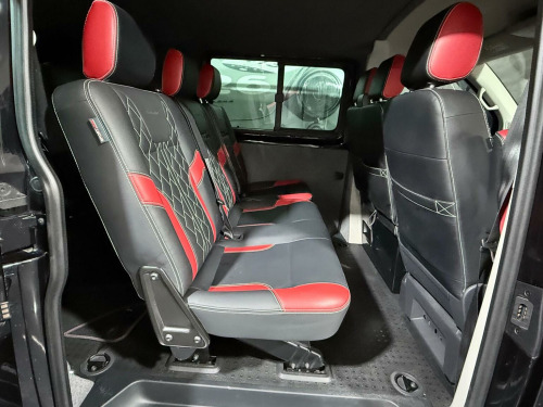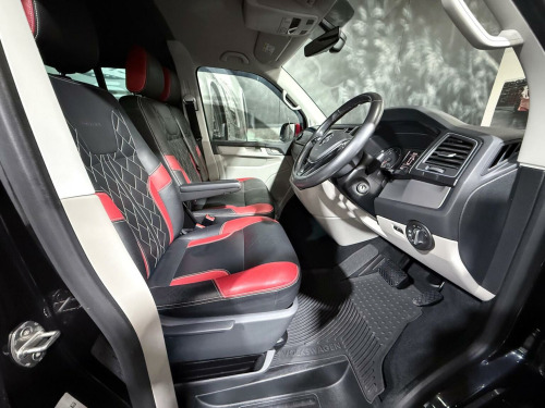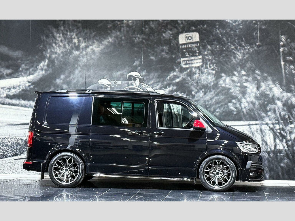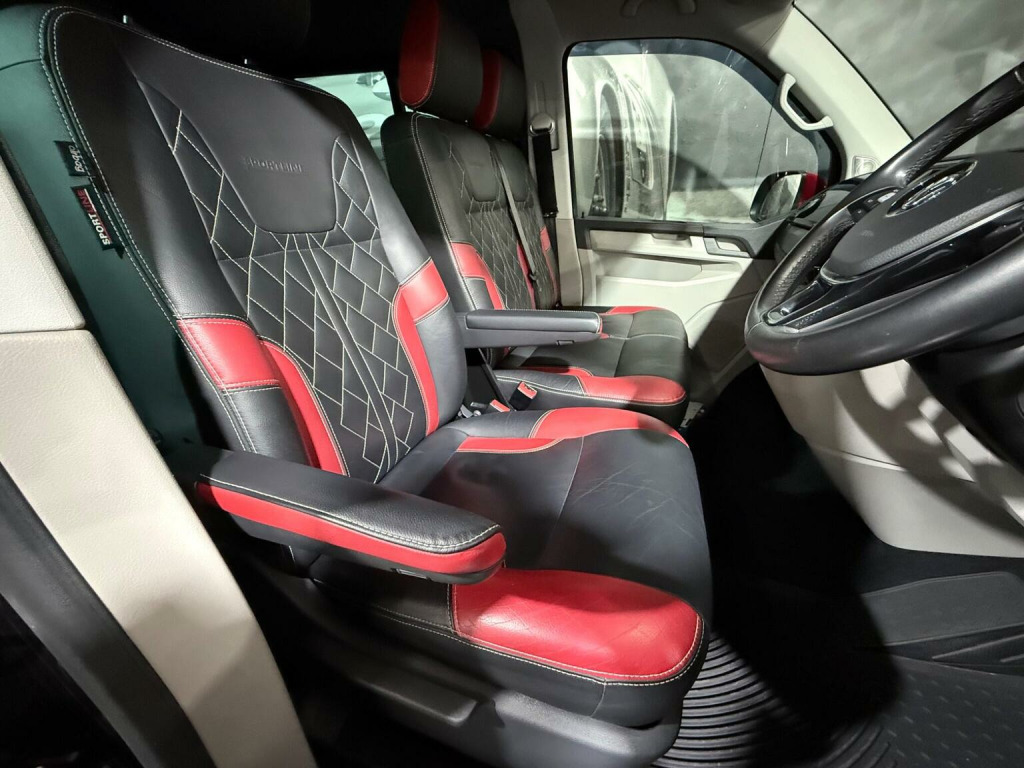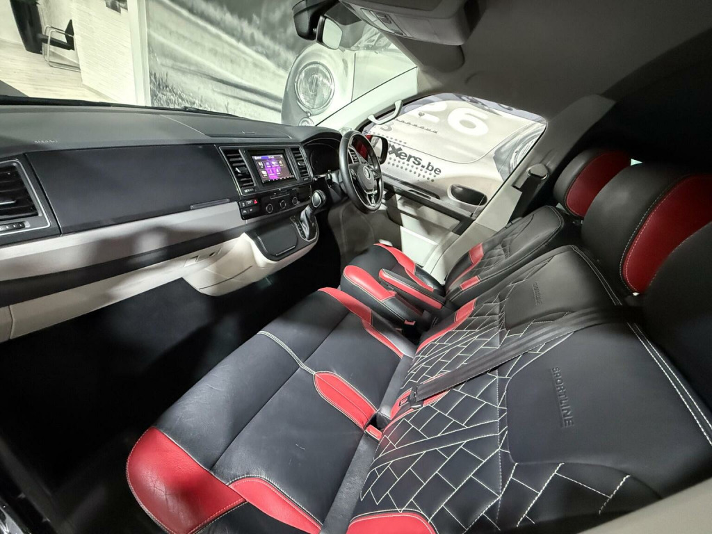 Finished in metallic black with a two-tone black & red leather interior, this Transporter Sportline T32 Crew Van is a real head-turner and Low mileage, full service history, and presented in great condition inside and out. This Sportline looks incredible thanks to its factory Sportline body kit, spoiler, upgraded alloy wheels, roof rails, and side steps with illumination. Clearly cherished and kept indoors, it drives exactly as it should and looks even better in the metal. Key Features & Specification:, 2.0 TDI T32 DSG Automatic, Sportline model, Low mileage, Full Service History, Crew Van, Metallic Black paintwork, Two-tone Black & Red Leather Interior, Heated Front Seats, Touchscreen Infotainment System, Satellite Navigation, Apple CarPlay & Android Auto, Upgraded Sound System, Air Conditioning, LED Lighting, Illuminated Side Steps, Sportline Body Kit & Rear Spoiler, Roof Rails, Upgraded Alloy Wheels, Carpeted Roof Lining, Fully Carpeted Rear & Side Panels, Electric Windows & Mirrors, Remote Central Locking, Indoor showroom vehicle, This is a proper Sportline, not a basic van dressed up — it looks superb, drives beautifully, and is ready to enjoy immediately. Ideal for business, lifestyle, or both. Viewing highly recommended.