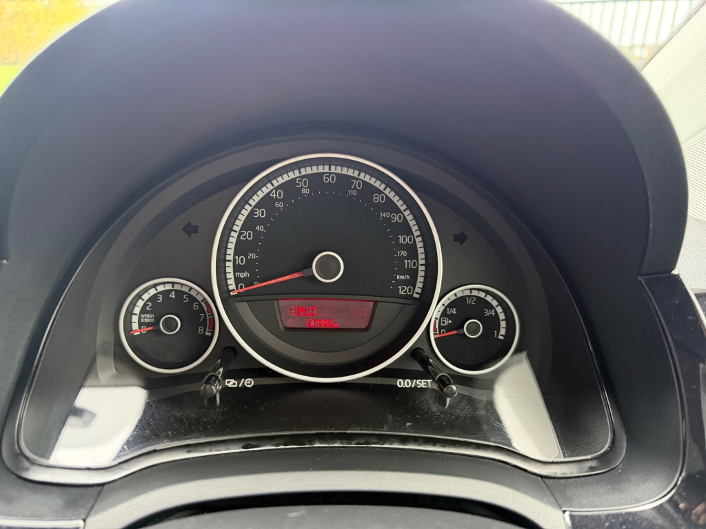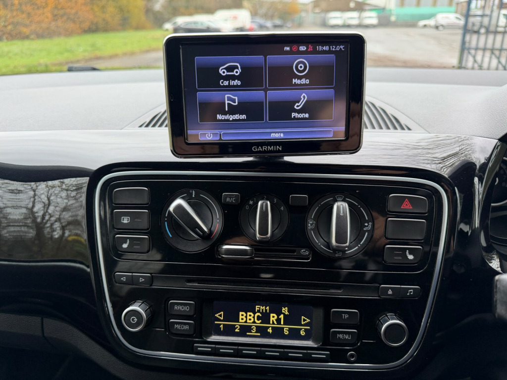 Volkswagen Up! 1.0litre Petrol 5 door with fantastic spec including Garmin display, aircon, heated front seats and Fender Speaker system Low milage example with only 60970 milesLong Mot till October 2026 Finance is available v socket - centre console, aux-in socket, bluetooth telephone preparation for hands free profile enabled telephones, colour touch screen - 5in, dab+ - digital radio reception, fender premium soundpack, maps & more touch-screen navigation-radio infotainment device with integrated voice control and carry case, rcd 215 radio-mp3-cd player, sd card reader, speakers x2, 16in alloy wheels - upsilon, anti-theft wheel bolts, body coloured bumpers, body coloured door handles, door mirrors - electrically adjustable and heated, door sill protectors with up lettering, electric windows - front, gloss black door mirrors, headlights - beam regulator, parking lights, tinted glass - heat insulating rear 65 percent light absorbing from b pillar backwards, tyre mobility kit, abs - anti-lock braking system, asr - anti slip regulation, airbags - driver, airbags - front passenger, airbags - side head and thorax for front passenger, central locking - remote with 1 remote key, differential lock - electronic, esp - electronic stability programme, electronic engine immobiliser, hba - hydraulic brake assist, hill hold assist, isofix child seat preparation for 2 rear seats, seatbelt reminder, tcs - traction control system, air conditioning, air vent surrounds - chrome effect, black pearl upper dashboard, carpet mats - front and rear, chrome effect handbrake grip button, chrome effect light and heating switches, chrome trimmed interior door handles, comfort pack, cup holders - front and rear, drivers seat height adjustment, drivers sun visor with ticket holder, head restraints - front integrated, heated front seats, height adjustable steering wheel, instrument lighting - white adjustable panel illumination, interior light delay, one touch indicator, rear head restraints x 2 - height-adjustable, split folding rear backrests 60-40, steering wheel - 3-spoke - leather trimmed with gloss black inserts, storage compartments in front doors, sun visors - front passengers with vanity mirror, tool kit, variable boot floor, winter pack, daytime running lights, front fog lights, headlights - halogen clear - range adjustable, high level 3rd brake light, lights on warning buzzer, power assisted steering - speed sensitive, trip computer, tyre pressure indicator