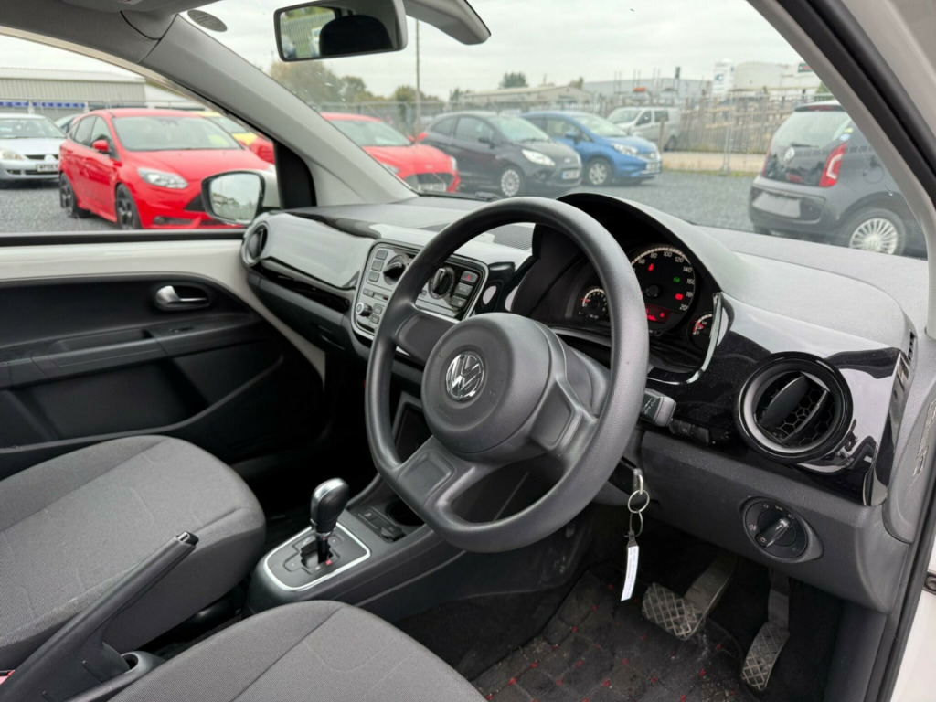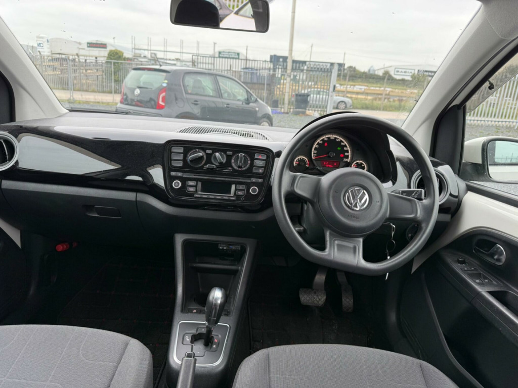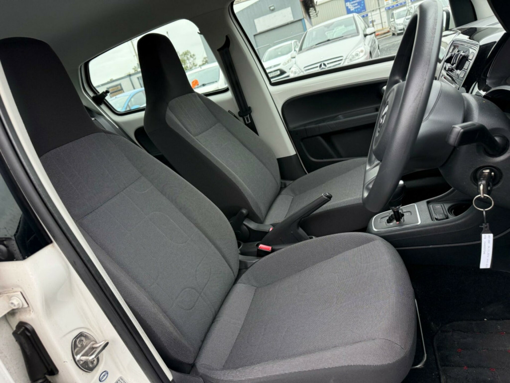Volkswagen UP 1.0i Bluemotion Auto 5DrRegistered 2014.1 Owner With Genuine 64293 Miles.12 Months MOT.Full Pre Delivery Inspection In Our Own Workshop .3 Months Comprehensive No Quibble In House Warranty Included With Option To Extend To 6 Months.Finished In Unmarked Alpine White With Grey Chequered Cloth Trim.Top Specification : Electric Windows , Electric Heated Door, Air Conditioning ( Ice Cold ), Cruise Control , Heated Front Seats, Trip Computer , RDS Radio/CD/AUX, Remote Central Locking With Factory Alarm & Immobiliser , 2 Keys, Alloy Wheels.Part Exchange & All Dealer Facilities Available.Signature Cars Of Portadown Best Value Approved Used Cars In Northern Ireland.*** Check Out Our 5Star Reviews On Line ****** Deposit Now Taken Others Available *** v socket - centre console, 15in alloy wheels - spoke, abs - anti-lock braking system, asr - anti slip regulation, air conditioning, air vent surrounds - chrome effect, airbags - driver, airbags - front passenger, airbags - side head and thorax for front passenger, anti-theft wheel bolts, aux-in socket, black pearl upper dashboard, bluetooth telephone preparation for hands free profile enabled telephones, body coloured bumpers, body coloured door handles, central locking - remote with 1 remote key, chrome effect handbrake grip button, chrome effect light and heating switches, chrome trimmed interior door handles, colour screen - 5in, comfort pack, cup holders - front and rear, daytime running lights, differential lock - electronic, digital clock, door mirrors - body coloured, door mirrors - electrically adjustable and heated, drivers seat height adjustment, drivers sun visor with ticket holder, esp - electronic stability programme, electric windows - front, electronic engine immobiliser, front fog lights, glovebox, hba - hydraulic brake assist, head restraints - front integrated, headlights - beam regulator, headlights - halogen clear - range adjustable, heated front seats, heated rear window, heating and ventilation system with 4 speed fan, height adjustable steering wheel, high level 3rd brake light, hill hold assist, isofix child seat preparation for 2 rear seats, instrument lighting - white adjustable panel illumination, interior light delay, lights on warning buzzer, luggage compartment cover, maps & more touch-screen navigation-radio infotainment device with integrated voice control and carry case, one touch indicator, parking lights, power assisted steering - speed sensitive, rcd 215 radio-mp3-cd player, rear head restraints x 2 - height-adjustable, rear wash wipe with intermittent wipe, sd card reader, seatbelt reminder, speakers x2, split folding rear backrests 60-40, steering wheel - 3-spoke - leather trimmed with gloss black inserts, storage compartments in front doors, sun visors - front passengers with vanity mirror, tinted glass - heat insulating, tool kit, trip computer, tyre mobility kit, variable boot floor, windscreen wipers with intermittent wipe and 4 position delay, winter pack