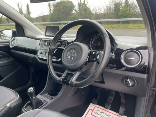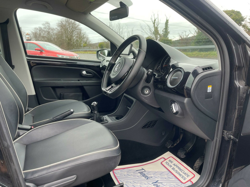 TWO KEEPERS FROM NEW. A great value High Up! 5dr model presented in Deep Black peal. Supplied freshly serviced and with 12 months MOT. New front brake discs and pad set. New clutch kit fitted November 2025 at Martins Volkswagen main dealer with invoice to support. Factory extras fitted including Leather look interior in Anthracite, Gloss black dash panels cruise control and reversing sensors. Further features include alloy wheels, air conditioning, heated front seats, Maps & More navigation, Bluetooth connection and more. Last owner since 2014. Perfect starter car or low cost commuter. Part exchange welcome. Minimum 3 month warranty with up to 24 months available, inspections welcome. Highly rated for customer service by AutoTrader. Please call ahead to confirm availability and to avoid disappointment. Visit our website for finance options and online applications., v socket - centre console, 15in alloy wheels - spoke, abs - anti-lock braking system, asr - anti slip regulation, air conditioning, air vent surrounds - chrome effect, airbags - driver, airbags - front passenger, airbags - side head and thorax for front passenger, anti-theft wheel bolts, aux-in socket, black pearl upper dashboard, bluetooth telephone preparation for hands free profile enabled telephones, body coloured bumpers, body coloured door handles, central locking - remote with 1 remote key, chrome effect handbrake grip button, chrome effect light and heating switches, chrome trimmed interior door handles, colour screen - 5in, comfort pack, cup holders - front and rear, daytime running lights, differential lock - electronic, digital clock, door mirrors - body coloured, door mirrors - electrically adjustable and heated, drivers seat height adjustment, drivers sun visor with ticket holder, esp - electronic stability programme, electric windows - front, electronic engine immobiliser, front fog lights, glovebox, hba - hydraulic brake assist, head restraints - front integrated, headlights - beam regulator, headlights - halogen clear - range adjustable, heated front seats, heated rear window, heating and ventilation system with 4 speed fan, height adjustable steering wheel, high level 3rd brake light, hill hold assist, isofix child seat preparation for 2 rear seats, instrument lighting - white adjustable panel illumination, interior light delay, lights on warning buzzer, luggage compartment cover, maps & more touch-screen navigation-radio infotainment device with integrated voice control and carry case, one touch indicator, parking lights, power assisted steering - speed sensitive, rcd 215 radio-mp3-cd player, rear head restraints x 2 - height-adjustable, rear wash wipe with intermittent wipe, sd card reader, seatbelt reminder, speakers x2, split folding rear backrests 60-40, steering wheel - 3-spoke - leather trimmed with gloss black inserts, storage compartments in front doors, sun visors - front passengers with vanity mirror, tinted glass - heat insulating, tool kit, trip computer, tyre mobility kit, variable boot floor, windscreen wipers with intermittent wipe and 4 position delay, winter pack, sensor pack, leather look - anthracite (black pearl dash), cruise control