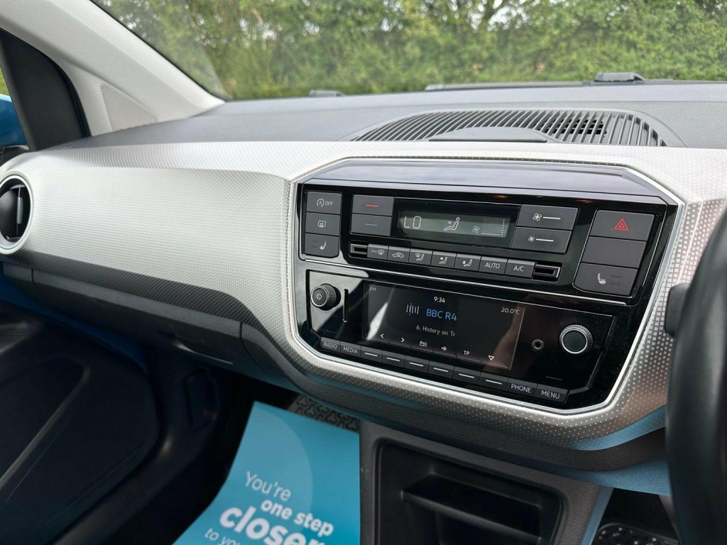 With only one previous owner, this 2018 Volkswagen up. High up. is a great city car. Equipped with a 1.0L petrol engine and a clear vehicle history check, this up. offers peace of mind. The High up. trim adds a touch of luxury with features like a panoramic sunroof, including electric functionality for open-air enjoyment, and climate control for optimal comfort. Carpet mats in both the front and rear enhance the interior ambiance, while manual air conditioning keeps the cabin cool. Heated front seats provide warmth during colder months. This up. stands out with its impressive fuel economy of 55 mpg, meaning fewer trips to the petrol station. Its low CO2 emissions make it an environmentally conscious choice, reducing your carbon footprint. Acceleration from 0 to 60mph in 9.6 seconds ensures a responsive and engaging driving experience.