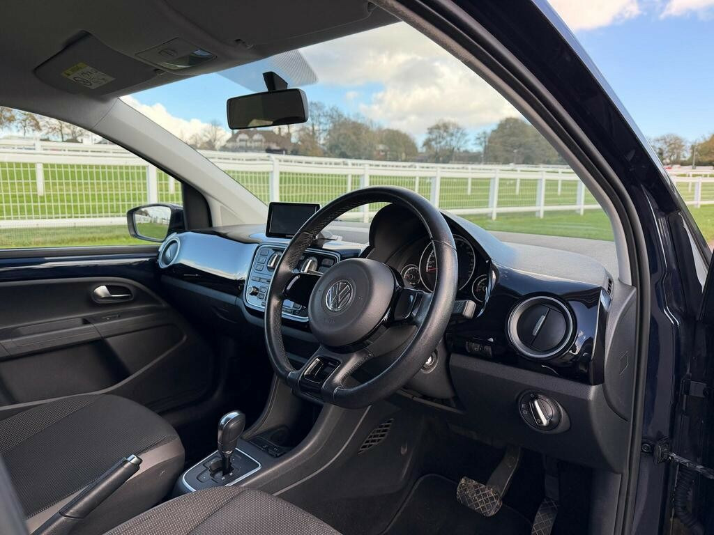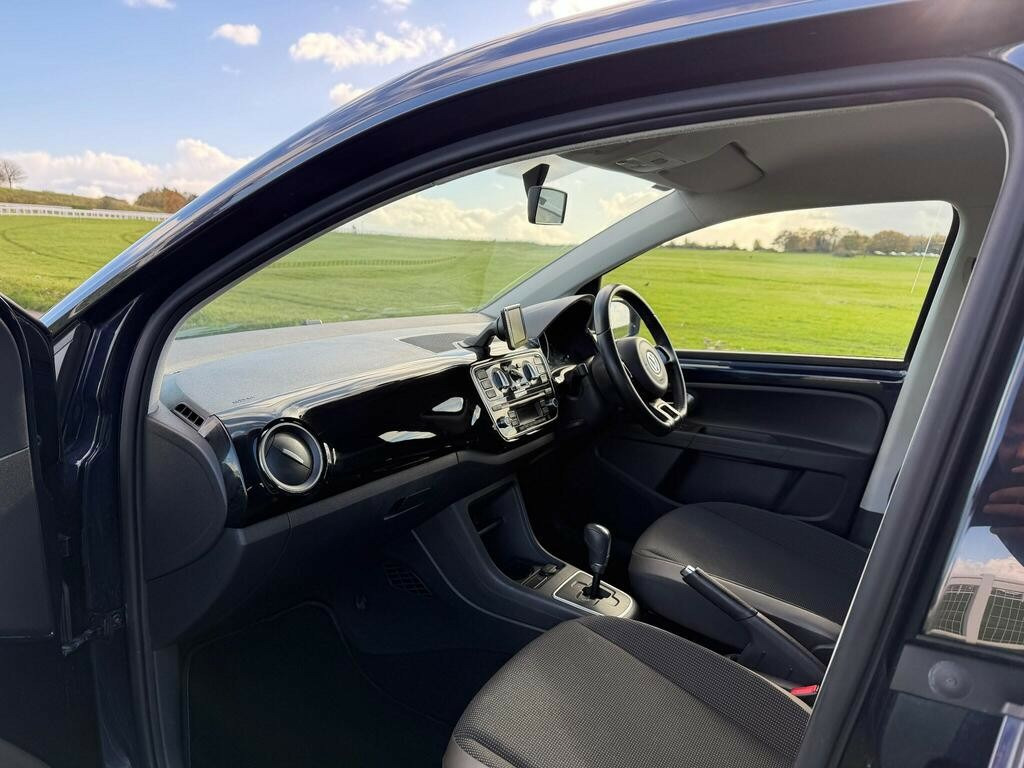 Volkswagen up! 1.0 High up! Hatchback ASG Automatic 2014 (64 Reg)Rare UK Model Automatic Full Service History ULEZ Compliant Only 1 Previous Owner Finished in navy blue with a contrasting black interior and stylish 15-inch alloy wheels, this Volkswagen up! High up! 1.0 ASG Automatic is a rare UK-registered example of VW's award-winning city car. Exceptionally well maintained with a full service history (including cambelt replacement) and just one previous owner, this is a brilliant choice for anyone seeking an economical, practical and reliable small automatic hatchback.The Volkswagen up! has become one of the most popular compact cars on the road thanks to its renowned Volkswagen reliability, clever design and surprisingly spacious interior. It's incredibly easy to drive, park and run, making it ideal for city living, commuting, or as a first car.With its low insurance group, cheap road tax, and low maintenance costs, the up! is as affordable to own as it is enjoyable to drive. This model features an automatic ASG gearbox, making it especially suited for new drivers with an automatic-only licence or anyone looking for a smooth, stress-free drive around town.Being ULEZ compliant, it's also ready for city driving.Key Features:1.0 Petrol Engine ( 75 PS, Automatic ASG Gearbox)5 Door HatchbackMultimedia radio with Bluetooth, DAB & AUX connectivityBuilt-in Sat Nav systemHeated front seatsAir conditioningElectric windowsRemote central lockingHeated rear windscreenSpacious boot with split-folding rear seatsIsofix child seat anchors15'' alloy wheels2 keys includedOwnership & Maintenance:Only 1 previous ownerFull service history (including cambelt replacement)MOT valid until 19/02/2026ULEZ compliantA rare UK automatic model that's reliable, economical, and packed with features the perfect blend of Volkswagen quality and city car practicality. Ideal for new drivers, commuters or anyone looking for a stylish, efficient small automatic.Warranty options available of up to 24 months. Part exchange welcome. Up to 30 other small cars with low insurance on site, for any additional information or to arrange a viewing at our Epsom based forecourt please call, text or alternatively visit or website - We can also be found on Google! - Obsidian Motor Company Open 7 days a week including Bank HolidaysVehicle registered: 29/12/2014 v socket - centre console, aux-in socket, bluetooth telephone preparation for hands free profile enabled telephones, colour touch screen - 5in, dab+ - digital radio reception, maps & more touch-screen navigation-radio infotainment device with integrated voice control and carry case, rcd 215 radio-mp3-cd player, sd card reader, sound pack, speakers x2, speakers x4 - 2 front and 2 rear, 15in alloy wheels - spoke, anti-theft wheel bolts, body coloured bumpers, body coloured door handles, door mirrors - body coloured, door mirrors - electrically adjustable and heated, electric windows - front, full size steel spare wheel, headlights - beam regulator, parking lights, tinted glass - heat insulating, abs - anti-lock braking system, asr - anti slip regulation, airbags - driver, airbags - front passenger, airbags - side head and thorax for front passenger, central locking - remote with 1 remote key, differential lock - electronic, esp - electronic stability programme, electronic engine immobiliser, hba - hydraulic brake assist, hill hold assist, isofix child seat preparation for 2 rear seats, seatbelt reminder, tcs - traction control system, air conditioning, air vent surrounds - chrome effect, black pearl upper dashboard, chrome effect handbrake grip button, chrome effect light and heating switches, chrome trimmed interior door handles, comfort pack, cup holders - front and rear, drivers seat height adjustment, drivers sun visor with ticket holder, head restraints - front integrated, heated front seats, height adjustable steering wheel, instrument lighting - white adjustable panel illumination, interior light delay, one touch indicator, rear head restraints x 2 - height-adjustable, split folding rear backrests 60-40, steering wheel - 3-spoke - leather trimmed with gloss black inserts, storage compartments in front doors, sun visors - front passengers with vanity mirror, sun visors - vanity mirrors and illuminated, tool kit, variable boot floor, winter pack, daytime running lights, front fog lights, headlights - halogen clear - range adjustable, high level 3rd brake light, lights on warning buzzer, power assisted steering - speed sensitive, trip computer, tyre pressure indicator