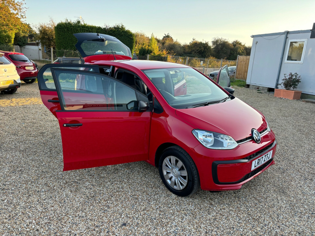 Comes with 1 Year Warranty - 1 Year MOT - Serviced on sale** Finance options are available - This 2017 Volkswagen Up 1.0 Take Up 5dr is a sleek hatchback with only 12695 miles on the clock. Running on petrol and boasting 4 seats and 5 doors, this vehicle is both practical and stylish. It is ULEZ compliant. This well-maintained comes with features such as 'Lights On' Reminder warning buzzer, rev counter, service interval indicator, speed-sensitive power steering, and trip computer. Whether you're navigating city streets or taking a long drive, this Volkswagen Up is sure to impress with its efficiency and reliability., We offer 1 Year MOT, 1 Year Warranty & service included on all our stock. Finance is available on all our stock please contact our Office. ights on' reminder warning buzzer, rev counter, service interval indicator, speed sensitive power steering, trip computer, 2 speakers, aux input, dab digital radio module, sd card slot, body coloured bumpers, daytime running lights, electric front windows, front wash/wipe with interval delay, heat insulating tinted glass, heated rear window, range adjustable headlights, rear windscreen washer and wiper with interval delay, 12v accessory power point in centre console, 2 cupholders, 3 spoke steering wheel, delay courtesy light function, driver seat height adjust, driver, front head restraints, glovebox, heating/ventilation unit with 4 speed fan, height adjustable rear head restraints, height adjustable steering wheel, isofix preparation 2 rear child seats, lane cloth upholstery, luggage compartment cover, luggage compartment lighting, one piece folding rear seat backrest, passenger sunvisor, storage compartment in front doors, 3 point height adj front seatbelts + pretensioners, abs, driver and passenger airbags, driver/front passenger side airbags, esp with edl + asr, hill hold control, hydraulic brake assist (hba), seatbelt warning lamp and buzzer, two 3 point rear seatbelts, tyre pressure warning, electronic engine immobiliser, locking fuel filler cap, remote central locking, high gloss black surrounds for air vents, 14'' steel wheels, 12 months mot, 12 months warranty, £20.00 year road tax, service history, 14'' Steel