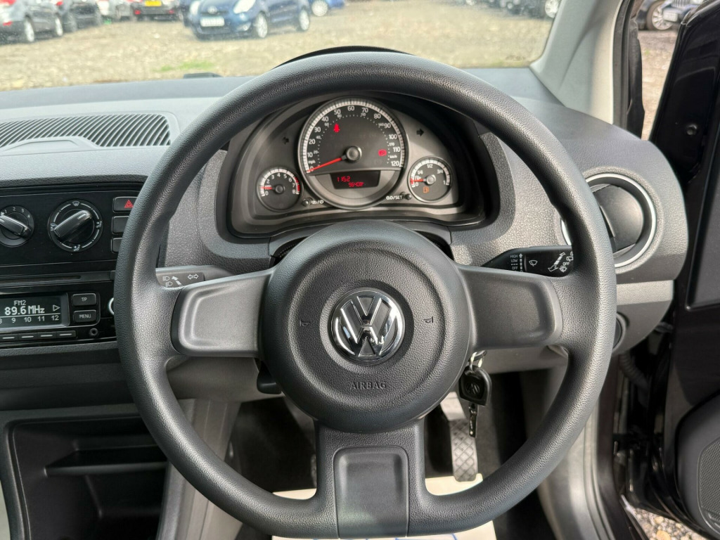 MAIN DEALER PART SERVICE HISTORY Discover this well maintained Volkswagen up! Take up! from 2014, a smart choice for city driving. This model boasts a 1.0 litre petrol engine, offering an impressive fuel economy of up to 63 miles per gallon. Its compact size and efficient design make it a joy to navigate through busy streets and easy to park.This Volkswagen up! is particularly appealing due to its low insurance group, making it an economical option for new drivers or those looking to reduce their running costs. Furthermore, its low CO2 emissions highlight its environmental consideration. These factors combined indicate that this vehicle offers a more cost effective and efficient driving experience compared to many other cars in its class. v socket - centre console, 14in steel wheels, abs - anti-lock braking system, airbags - driver, airbags - front passenger, airbags - side head and thorax for front passenger, aux-in socket, body coloured bumpers, cup holders - front and rear, daytime running lights, drivers sun visor with ticket holder, electronic engine immobiliser, front passengers sun visor, full size wheel trims, hba - hydraulic brake assist, head restraints - front integrated, headlights - beam regulator, headlights - halogen clear - range adjustable, height adjustable steering wheel, high level 3rd brake light, isofix child seat preparation for 2 rear seats, instrument lighting - white adjustable panel illumination, interior light delay, one touch indicator, power assisted steering - speed sensitive, rcd 215 radio-mp3-cd player, rear head restraints x 2 - height-adjustable, seatbelt reminder, speakers x2, storage compartments in front doors, tinted glass - heat insulating, tool kit, trip computer, tyre mobility kit