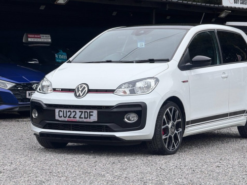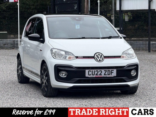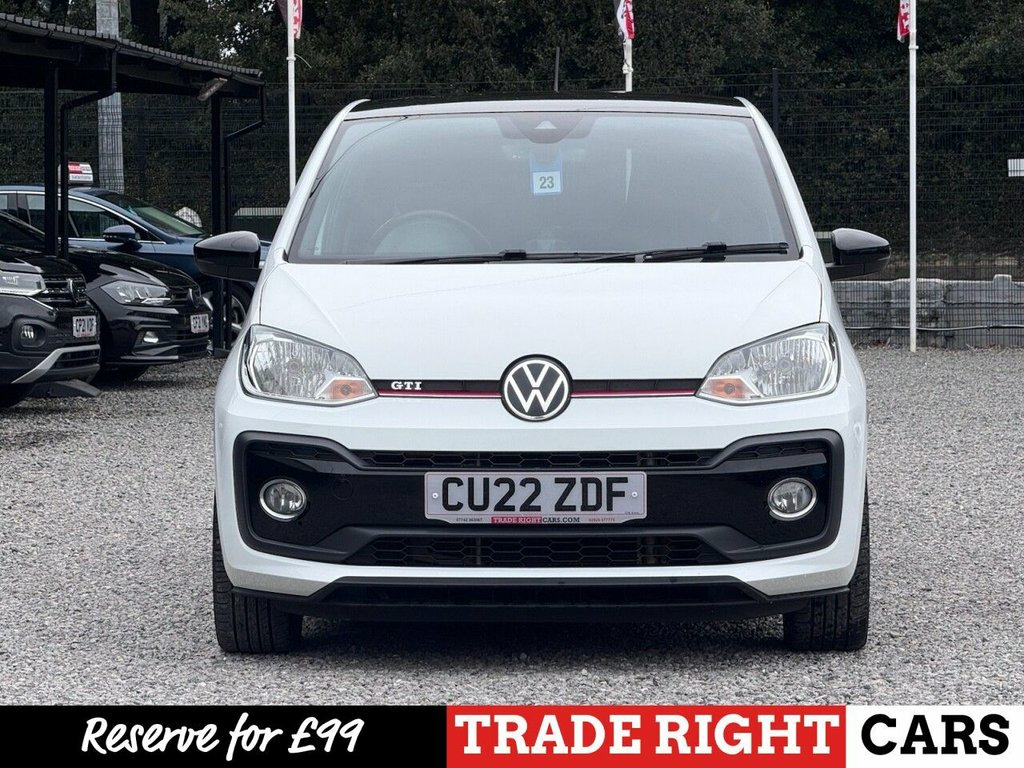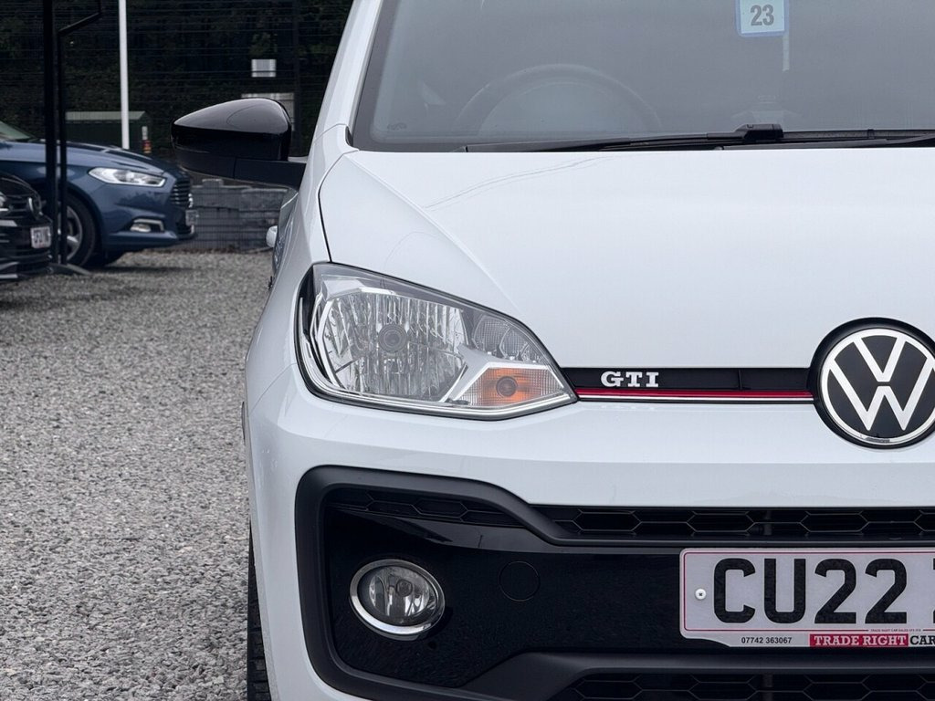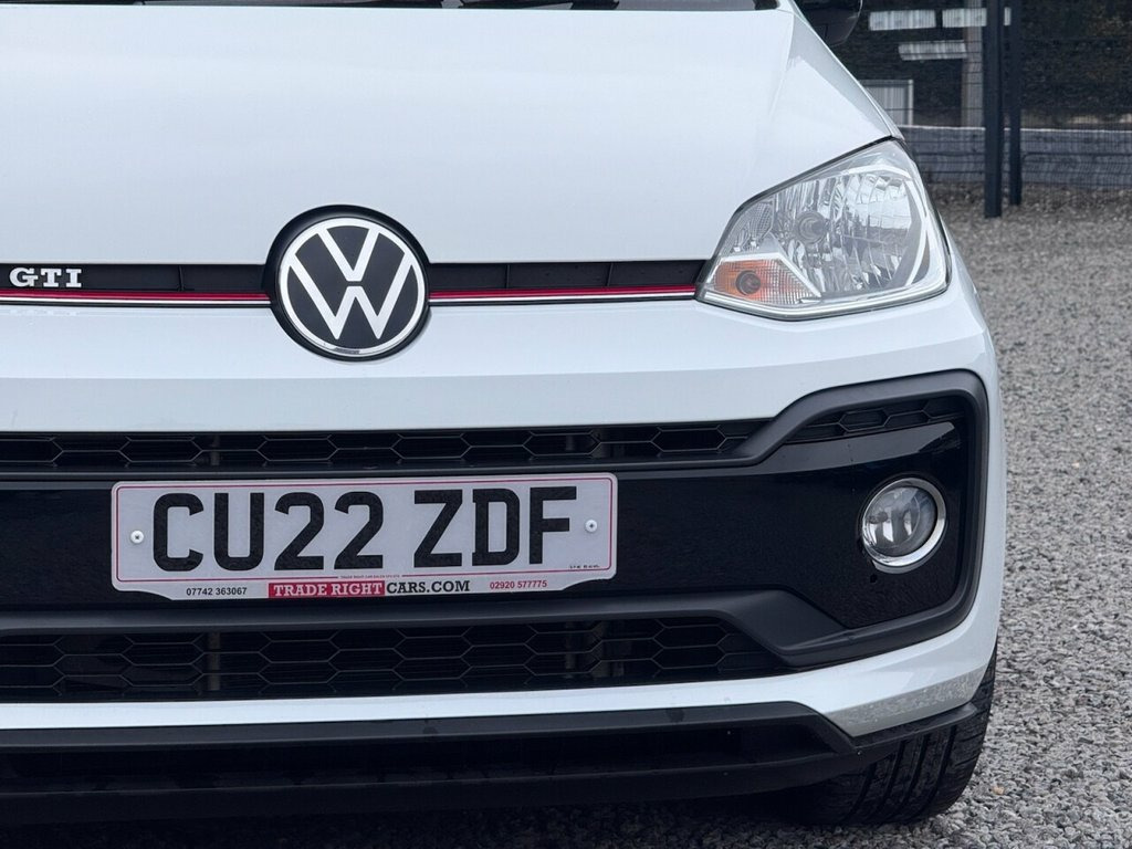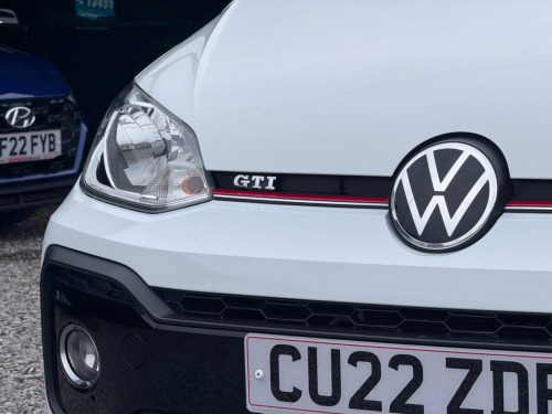 JUST ARRIVED & READY TO DRIVE AWAY! 2022/22 Volkswagen Up! 1.0 TSi GTi finished in Pure White with Black Roof. We are pleased to offer this lovely 5 door petrol hatchback. This is the highly desirable 1.0 litre model with a 6 speed manual transmission that offers 113 BHP and over 50 MPG. 0-60 in 8.8 seconds and insurance group 17/50. It has covered just 30,965 miles with full service history (4 stamps, 2 @ VW) and drives as you would expect. Just serviced upon arrival. MOT until 14th December 2026 with no advisories. The car is ready to drive away. We will also include a complimentary 12 month AA breakdown cover. Two former keepers. Euro 6 status - ULEZ compliant. A superb low mileage example with the sought-after GTi specification. It also features £1,000 of factory-fitted optional extras. Highlights include; cruise and park pack, DAB, rear camera, bluetooth connectivity, heated front seats, 17" 'Oswald' alloy wheels with red brake calipers, A/C, ambient lighting, USB, smartphone navigation interface and two-tone exterior. The full specification list can be found on our website. Advertised below the AutoTrader RRP. Please let us know if you would like any further information or a detailed video sent via WhatsApp. Pure White with Black Roof, Pure White, Cruise and Park Pack, 12V Socket - Centre Console, 17in Alloy Wheels - Oswald, 6 Speakers - Front and Rear, ABS - Anti-Lock Braking System with HBA , Air Conditioning - Manual, Ambient Lighting, Antenna for Radio Reception, Anti-Theft Wheel Bolts, Backrest Release for Left Front Seat, Black Headliner, Black Painted Exterior Mirror Housings, Bluetooth Telephone and Audio Connection, Body Coloured Door Handles, Brake Calipers - Red, Carpet Mats - Front and Rear, Centre Console Including Cup Holders - F, Chrome Exhaust Tailpipe on the Left, Chrome Surrounds to the Air Vents - Radi, Chrome Trim Around Light Switches and Ai, Composition Colour Infotainment