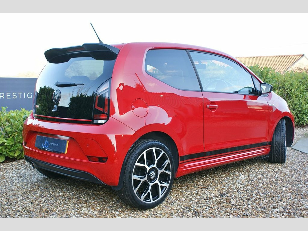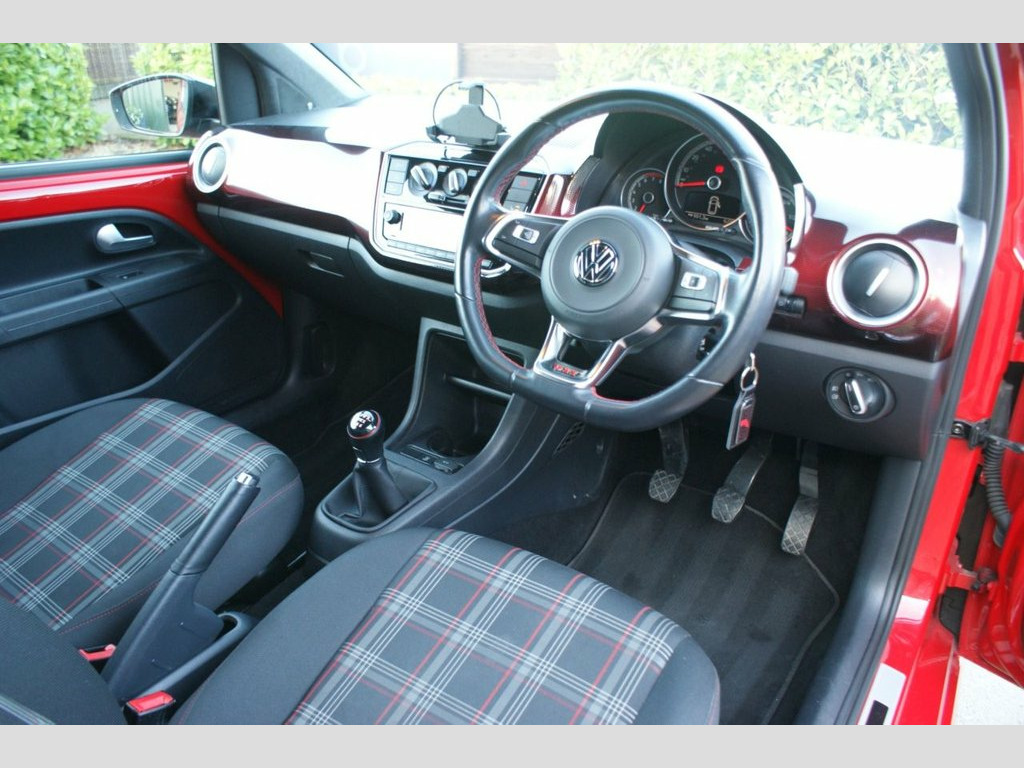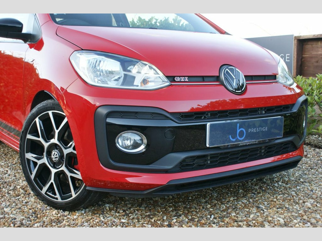 2019/19 Volkswagen UP! GTI 3dr finished in Tornado red with Jacara cloth in titan black and red. Two former keepers from new with full service history and presented in fantastic condition. Specification includes 17 inch alloy wheels in goss black with diamond cut finish, red brake calipers, parking sensors, mud flaps, gloss black mirror caps, front fog lights, rear spoiler in gloss black, split level boot, Beats surround sound speakers, heated seats, air conditioning, flat bottom multi-function steering wheel in leather with red stitching, DAB radio bluetooth, App connect, USB and AUX connection, bluetooth audio streaming, phone holder, height adjustable drivers seats, heated mirrors, aluminium sills with GTI logo and tyre pressure monitoring system. Full service history having had a total of 7 services and was last serviced by the VW main dealer in April 2025 at 40026 miles which was a major service and full inspection showing a full green health check. 12V Socket - Centre Console, 17in Alloy Wheels - Oswald in Black with, ABS - Anti-Lock Braking System with HBA , Air Conditioning - Manual, Airbags - Side Head and Thorax for Front, Ambient Lighting, Beats Sound System, Black Stripe Lower Door Decals, Body Coloured Bumpers, Body Coloured Door Handles, Brake Calipers - Red, Centre Console Including Cup Holders - F, Chrome Exhaust Tailpipe on the Left, Chrome Trim Around Light Switches and Ai, Chrome Trimmed Instrument Cluster, Chrome Trimmed Interior Door Handles, Composition Colour System, Dash Pad Pixels Red, Digital Clock, Door Mirrors - Electrically Adjustable a, Driver and Front Passenger Airbag with F, Drivers and Front Passengers Easy