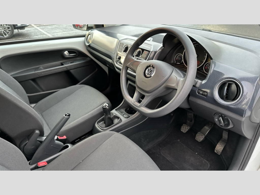 Volkswagen Up 1.0 Move Up 5dr 'Lights On' Reminder warning buzzer, Rev counter, Service interval indicator, Speed sensitive power steering, 6 speakers, Aux input, Composition colour media system Radio/CD/MP3 + Bluetooth, DAB digital radio module, SD card slot, USB interface, Body colour door handles, Body coloured bumpers, Chrome headlight surround, Daytime running lights, Electric front windows, Front wash/wipe with interval delay, Heated rear window, Range adjustable headlights, Rear windscreen washer and wiper with interval delay, 12V accessory power point in centre console, 2 cupholders, 60/40 split folding rear seat, Chrome interior door handles, Delay courtesy light function, Driver seat height adjust, Driver's sunvisor with ticket holder, Front head restraints, Fusion cloth upholstery, Glovebox, Height adjustable rear head restraints, Height adjustable steering wheel, Isofix Preparation 2 Rear child seats, Luggage compartment cover, Luggage compartment lighting, Passenger sunvisor with illuminated vanity mirror, Storage compartment in front doors, Variable boot floor, 3 point height adj front seatbelts + pretensioners, ABS, Driver and passenger airbags, Driver/front passenger side airbags, ESP with EDL + ASR, Hill hold control, Hydraulic Brake Assist (HBA), Seatbelt warning lamp and buzzer, Two 3 point rear seatbelts, Two tone horn, Tyre pressure warning, Anti-theft wheel bolts, Electronic engine immobiliser, Locking fuel filler cap, Remote central locking with 2 remote folding keys, Black cube upper dash, High gloss black surrounds for air vents, Full size steel spare wheel