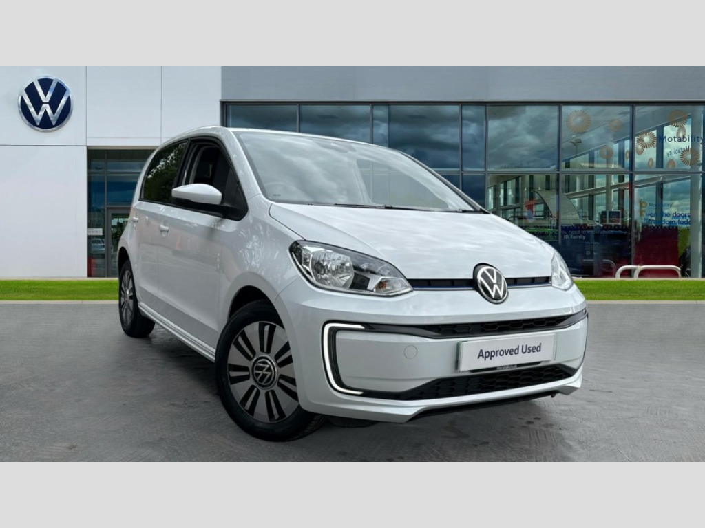 Volkswagen Up 60kW E-Up 32kWh 5dr Auto Digital clock, E-Vehicle information via 'Maps + More' smartphone integration, Lane assist, Multifunction computer, One touch indicators, Rev counter, Rocker switch for drive mode selection, Socket AC Type 2, Speed sensitive power steering, Speedometer, electronic odometer and fuel gauge, Volkswagen connect, 6 metre charging cables of 16amp AC cable for wallbox/chargepoints (mode 3), 6 metre charging cables of Type 2 mode 2/G (10A) charging cable, Galvanished body, Start/stop function with battery regeneration and Energy recovery (brake energy recuperation with four energy recuperation levels), 6 speakers, Composition colour system with 5" screen, DAB, AUX in socket, SD card, MP3/WMA/AAC, 4 X 20W, bluetooth, audio connection and USB connectivity, Smartphone answering button on multifunction steering wheel with audio over the vehicle speaker system, Smartphone interface navigation system, Antenna, Black radiator grille, Blue stripe on lower radiator grille and tailgate, Body colour door handles, Body coloured bumpers, Body coloured door mirrors, Dusk sensor + auto driving lights, e-up Badge on Front doors and rear tailgate, Electric front windows, Halogen clear headlights with integrated indicators and range adjustable, Heated front windscreen, Heated rear window, High level 3rd brake light, Manually dimming rear view mirror, Rear fog lights, Rear side wing doors, Rear tinted glass from B pillar backwards, approx 65% tinted, Rear wash/wipe, Volkswagen roundel with blue and chrome strips below bonnet lip, Windscreen wipers intermittent wipe, 12V accessory power point in centre console, 2 cup holders in the front and rear centre console, 2 separate seats in 2nd row, 2 zone electronic climate control with allergen filter, Cooled glovebox, Driver seat height adjust, Drivers and front passengers easy entry sliding seat with memory function, Drivers and front passengers sun visors with vanity mirrors, Folding front seat backrest release on front passenger seat, Front + rear carpet mats, Front head restraints, Fusion cloth upholstery, Heating/ventilation unit with 4 speed fan, Height adjustable front passenger seat, Height adjustable rear seat head restraints (x2), Height adjustable steering wheel, Interior light delay, Isofix Preparation 2 Rear child seats, Jack and tool kit, Light grey roof lining, Luggage compartment cover, Luggage compartment lighting, Multifunction leather trimmed three-spoke steering wheel, gear knob and handbrake grip, Single front passenger seat, Sound generator, Storage compartment in front doors, Two rear seats with 60/40 split folding rear seat backrest, Cruise and park pack - Up, Light and sight pack - Up, Styling pack - E up, Winter pack - Up, 3 point front seatbelts with pre-tensioners, Anti-lock braking system with EDL, EBD + TCS, Curtain airbags for front and rear passengers, Driver and front passenger airbag with front passenger airbag deactivation, Driver/front passenger side airbags, Engine drag torque control, Front disc brakes, High tone horn, Hill hold control, Hydraulic Brake Assist (HBA), Manual child lock in rear doors, Rear drum brakes, Two 3 point rear seatbelts, Tyre pressure loss indicator, Volkswagen roadside assistance, Warning buzzer and light for front and rear seat belts if unfastened, Warning triangle and first aid kit, Electronic engine immobiliser, Locking fuel filler cap, Remote central locking with 2 remote folding keys, Chrome surrounds to the air vents, radio controls and air conditioning, Chrome-plated light switch surround, 15" Tezzle alloy wheels with anti theft wheel bolts, Low rolling resistance tyres, Tyre mobility system