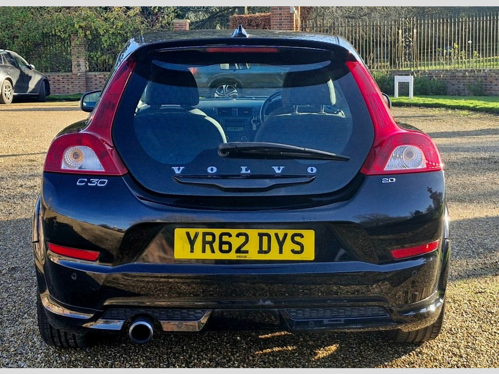 Lovely 2012 62 Volvo C30 2.0 R-Design 3 Door in Black - Specification includes Bluetooth, Electric Windows/Mirrors, Alloy Wheels, Remote Central Locking, SERVICE HISTORY - MOT OCTOBER 2026 - 12V Socket - Front, 12V Socket - Rear, 17in Alloy Wheels - Cratus, ABS - Anti-Lock Brake System, Airbags - Drivers Dual Stage, Airbags - Passenger Dual Stage, Airbags - SIPS - Side Impact Protection , Amplifier 50W x4, Anti-Theft Alarm, Armrest - Front and Rear Centre, Bluetooth Handsfree System, Bodykit (R-Design), Central Locking - Remote, Chassis - Lowered Sports - R-Design, Climate Control - Electronic, Cruise Control, Deadlock System, Door Mirrors - Heated Power Adjustment, Door Mirrors - Silver Matt (R-Design), Dynamic Stability Control, EBA - Emergency Brake Assistance, EBD - Electronic Brake Distribution, Electric Windows - Auto Open and Close, Electric Windows - Front, Exterior Temp
