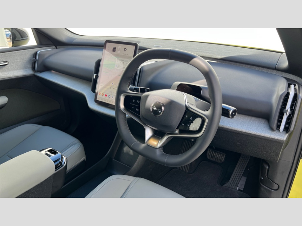 Volvo EX30 200kW Single Motor Plus 51kWh 5dr Auto 12.3" centre console portrait touch screen, 3 x Front and 2 x rear radars plus front vision camera, Adaptive cruise control, Android auto wireless, Blind spot information system with steer assist (BLIS), Bluetooth handsfree system, Collision avoidance at intersection, Cross traffic alert with brake support (Front and Rear), Driver alert control with lane keeping aid, Driver understanding system, Emergency call service, Forward collision warning, Front and rear park assist, Google automotive services - Enabled entertainment apps, navigation with google maps, voice recognition with google assistant, Intelligent speed assist, PAS, Pilot assist, Power operated tailgate, Rear park assist camera, Speed limiter, Volvo cars services with app, Wireless apple carplay, Wireless/Inductive Mobile Phone Charging, 11kW 3-Phase On Board Charger, 5m 3 phase 32 amp type 2 / mode 3 charge cable, Comfort chassis, Plug and charge, Recharging port located in nearside rear wing, DAB Digital radio, Dirac unison, External couple subwoofer and load compartment subwoofer, Harman Kardon Premium 5.1 Surround Sound 1040W - (2xC type USB Front & rear Sockets,Dashboard Soundbar with 7 Speakers), Low speed exterior sound speaker, Quantum logic, Vehicle noise compensation, Auto dimming interior and driver's door mirror, Auto folding heated frameless power door mirrors, Automatic LED Headlights + Active high beam incorporating daytime running lights, Dual tone roof and mirror caps, LED 3rd brake light, Metallic paint, Puddle lights, Rain sensor with automatic windscreen wiper activation, Rear side wing doors, Rear wiper, Variable intermittent wiper, 12V socket in luggage compartment, 2 zone electronic climate control with air purifier PM2.5, 3 seat bench in 2nd row, Central glovebox and storage, Fixed lumbar support, Flexible load floor, Floor mats, Front cupholders and storage, Front head restraints, Front load compartment (19 litres), Height/reach adjustable steering column, High level illumination (choise of 5 colour themes,central tunel,luggage,puddle,cabin,reading and front door panel pocket lights,instrument panel ), ISOFIX attachment on outer rear seats, Multifunction steering wheel, One pedal drive, Removable rear headrests, Single front passenger seat, Vehicle 2 load capability, Versatile split folding rear seat - 60/40, Climate pack - EX30, 3 point rear seatbelts, Child locks on rear doors, Collision avoidance and mitigation by braking and steering, Door opening alert, Driver and passenger airbags, First aid kit, Hill descent control, Hill start assist, IC (Inflatable Curtains) - Full Length, Inner driver seat side airbag, Passenger airbag cut-off switch, Post-impact Braking, Rear collision warning and mitigation (RCWM), Road sign information display, Run off Road Mitigation, Seatbelt pretensioners and load limiters (Front and Outer Rear Seats), SIPS (Side Impact Protection System), Tyre pressure monitoring system, Warning triangle, WHIPS whiplash protection system - front, 2 x NFC Access cards, Anti-theft alarm including immobiliser/volume sensor + level sensor, Digital key plus with keytag, Locking wheel nuts, Remote door locking and unlocking, 18" 5 Spoke aero alloy wheels with summer tyres, Tyre sealant kit and compressor