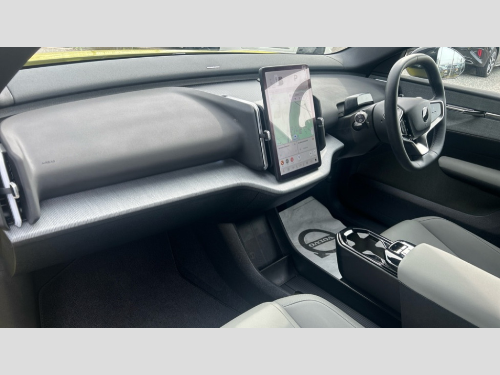 Volvo EX30 200kW SM Extended Range Plus 69kWh 5dr Auto 12.3" centre console portrait touch screen, 3 x Front and 2 x rear radars plus front vision camera, Adaptive cruise control, Android auto wireless, Blind spot information system with steer assist (BLIS), Bluetooth handsfree system, Collision avoidance at intersection, Cross traffic alert with brake support (Front and Rear), Driver alert control with lane keeping aid, Driver understanding system, Emergency call service, Forward collision warning, Front and rear park assist, Google automotive services - Enabled entertainment apps, navigation with google maps, voice recognition with google assistant, Intelligent speed assist, PAS, Pilot assist, Power operated tailgate, Rear park assist camera, Speed limiter, Volvo cars services with app, Wireless apple carplay, Wireless/Inductive Mobile Phone Charging, 11kW 3-Phase On Board Charger, 5m 3 phase 32 amp type 2 / mode 3 charge cable, Comfort chassis, Plug and charge, Recharging port located in nearside rear wing, DAB Digital radio, Dirac unison, External couple subwoofer and load compartment subwoofer, Harman Kardon Premium 5.1 Surround Sound 1040W - (2xC type USB Front & rear Sockets,Dashboard Soundbar with 7 Speakers), Low speed exterior sound speaker, Quantum logic, Vehicle noise compensation, Auto dimming interior and driver's door mirror, Auto folding heated frameless power door mirrors, Automatic LED Headlights + Active high beam incorporating daytime running lights, Dual tone roof and mirror caps, LED 3rd brake light, Metallic paint, Puddle lights, Rain sensor with automatic windscreen wiper activation, Rear side wing doors, Rear wiper, Variable intermittent wiper, 12V socket in luggage compartment, 2 zone electronic climate control with air purifier PM2.5, 3 seat bench in 2nd row, Central glovebox and storage, Fixed lumbar support, Flexible load floor, Floor mats, Front cupholders and storage, Front head restraints, Front load compartment (19 litres), Heat pump (Enhanced cabin heating and cooling efficiency with optimal vehicle range), Height/reach adjustable steering column, High level illumination (choise of 5 colour themes,central tunel,luggage,puddle,cabin,reading and front door panel pocket lights,instrument panel ), ISOFIX attachment on outer rear seats, Multifunction steering wheel, One pedal drive, Removable rear headrests, Single front passenger seat, Vehicle 2 load capability, Versatile split folding rear seat - 60/40, Climate pack - EX30, 3 point rear seatbelts, Child locks on rear doors, Collision avoidance and mitigation by braking and steering, Door opening alert, Driver and passenger airbags, First aid kit, Hill descent control, Hill start assist, IC (Inflatable Curtains) - Full Length, Inner driver seat side airbag, Passenger airbag cut-off switch, Post-impact Braking, Rear collision warning and mitigation (RCWM), Road sign information display, Run off Road Mitigation, Seatbelt pretensioners and load limiters (Front and Outer Rear Seats), SIPS (Side Impact Protection System), Tyre pressure monitoring system, Warning triangle, WHIPS whiplash protection system - front, 2 x NFC Access cards, Anti-theft alarm including immobiliser/volume sensor + level sensor, Digital key plus with keytag, Locking wheel nuts, Remote door locking and unlocking, Tyre sealant kit and compressor