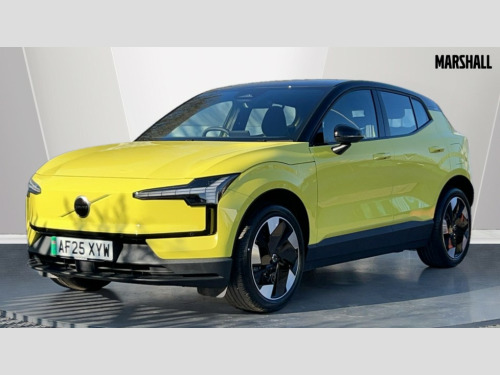 Volvo EX30 200kW SM Extended Range Plus 69kWh 5dr Auto 12.3" centre console portrait touch screen, 3 x Front and 2 x rear radars plus front vision camera, Adaptive cruise control, Android auto wireless, Blind spot information system with steer assist (BLIS), Bluetooth handsfree system, Collision avoidance at intersection, Cross traffic alert with brake support (Front and Rear), Driver alert control with lane keeping aid, Driver understanding system, Emergency call service, Forward collision warning, Front and rear park assist, Google automotive services - Enabled entertainment apps, navigation with google maps, voice recognition with google assistant, Intelligent speed assist, PAS, Pilot assist, Power operated tailgate, Rear park assist camera, Speed limiter, Volvo cars services with app, Wireless apple carplay, Wireless/Inductive Mobile Phone Charging, 11kW 3-Phase On Board Charger, 5m 3 phase 32 amp type 2 / mode 3 charge cable, Comfort chassis, Plug and charge, Recharging port located in nearside rear wing, DAB Digital radio, Dirac unison, External couple subwoofer and load compartment subwoofer, Harman Kardon Premium 5.1 Surround Sound 1040W - (2xC type USB Front & rear Sockets,Dashboard Soundbar with 7 Speakers), Low speed exterior sound speaker, Quantum logic, Vehicle noise compensation, Auto dimming interior and driver's door mirror, Auto folding heated frameless power door mirrors, Automatic LED Headlights + Active high beam incorporating daytime running lights, Dual tone roof and mirror caps, LED 3rd brake light, Metallic paint, Puddle lights, Rain sensor with automatic windscreen wiper activation, Rear side wing doors, Rear wiper, Variable intermittent wiper, 12V socket in luggage compartment, 2 zone electronic climate control with air purifier PM2.5, 3 seat bench in 2nd row, Central glovebox and storage, Fixed lumbar support, Flexible load floor, Floor mats, Front cupholders and storage, Front head restraints, Front load compartment (19 litres), Heat pump (Enhanced cabin heating and cooling efficiency with optimal vehicle range), Height/reach adjustable steering column, High level illumination (choise of 5 colour themes,central tunel,luggage,puddle,cabin,reading and front door panel pocket lights,instrument panel ), ISOFIX attachment on outer rear seats, Multifunction steering wheel, One pedal drive, Removable rear headrests, Single front passenger seat, Vehicle 2 load capability, Versatile split folding rear seat - 60/40, Climate pack - EX30, 3 point rear seatbelts, Child locks on rear doors, Collision avoidance and mitigation by braking and steering, Door opening alert, Driver and passenger airbags, First aid kit, Hill descent control, Hill start assist, IC (Inflatable Curtains) - Full Length, Inner driver seat side airbag, Passenger airbag cut-off switch, Post-impact Braking, Rear collision warning and mitigation (RCWM), Road sign information display, Run off Road Mitigation, Seatbelt pretensioners and load limiters (Front and Outer Rear Seats), SIPS (Side Impact Protection System), Tyre pressure monitoring system, Warning triangle, WHIPS whiplash protection system - front, 2 x NFC Access cards, Anti-theft alarm including immobiliser/volume sensor + level sensor, Digital key plus with keytag, Locking wheel nuts, Remote door locking and unlocking, Tyre sealant kit and compressor