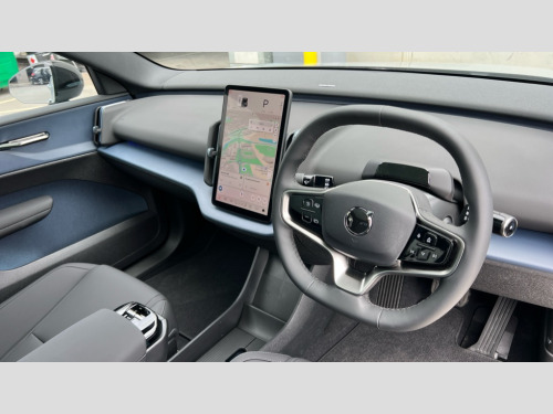 Volvo EX30 200kW SM Extended Range Plus 69kWh 5dr Auto 12.3" centre console portrait touch screen, 3 x Front and 2 x rear radars plus front vision camera, Adaptive cruise control, Blind spot information system with steer assist (BLIS), Bluetooth handsfree system, Collision avoidance at intersection, Cross traffic alert with brake support (Front and Rear), Driver alert control with lane keeping aid, Driver understanding system, Emergency call service, Forward collision warning, Front and rear park assist, Google automotive services - Enabled entertainment apps, navigation with google maps, voice recognition with google assistant, Intelligent speed assist, PAS, Pilot assist, Power operated tailgate, Rear park assist camera, Speed limiter, Volvo cars services with app, Wireless apple carplay, Wireless/Inductive Mobile Phone Charging, 11kW 3-Phase On Board Charger, 5m 3 phase 32 amp type 2 / mode 3 charge cable, Comfort chassis, Recharging port located in nearside rear wing, DAB Digital radio, Dirac unison, External couple subwoofer and load compartment subwoofer, Harman Kardon Premium 5.1 Surround Sound 1040W - (2xC type USB Front & rear Sockets,Dashboard Soundbar with 7 Speakers), Low speed exterior sound speaker, Quantum logic, Vehicle noise compensation, Auto dimming interior and driver's door mirror, Auto folding heated frameless power door mirrors, Automatic LED Headlights + Active high beam incorporating daytime running lights, Dual tone roof and mirror caps, LED 3rd brake light, Metallic paint, Puddle lights, Rain sensor with automatic windscreen wiper activation, Rear side wing doors, Rear wiper, Variable intermittent wiper, 12V socket in luggage compartment, 2 zone electronic climate control with air purifier PM2.5, 3 seat bench in 2nd row, Central glovebox and storage, Fixed lumbar support, Flexible load floor, Floor mats, Fore/Aft and backrest recline adjustable passenger seat, Fore/Aft, Height and backrest recline adjustable driver seat, Front cupholders and storage, Front head restraints, Front load compartment (19 litres), Heat pump (Enhanced cabin heating and cooling efficiency with optimal vehicle range), Heated front seats, Heated steering wheel, Height/reach adjustable steering column, High level illumination (choise of 5 colour themes,central tunel,luggage,puddle,cabin,reading and front door panel pocket lights,instrument panel ), ISOFIX attachment on outer rear seats, Multifunction steering wheel, One pedal drive, Removable rear headrests, Single front passenger seat, Versatile split folding rear seat - 60/40, 3 point rear seatbelts, Child locks on rear doors, Collision avoidance and mitigation by braking and steering, Door opening alert, Driver and passenger airbags, First aid kit, Hill descent control, Hill start assist, IC (Inflatable Curtains) - Full Length, Inner driver seat side airbag, Passenger airbag cut-off switch, Post-impact Braking, Rear collision warning and mitigation (RCWM), Road sign information display, Run off Road Mitigation, Seatbelt pretensioners and load limiters (Front and Outer Rear Seats), SIPS (Side Impact Protection System), Tyre pressure monitoring system, Warning triangle, WHIPS whiplash protection system - front, 2 x NFC Access cards, Anti-theft alarm including immobiliser/volume sensor + level sensor, Digital key plus with keytag, Locking wheel nuts, Remote door locking and unlocking, 19" 5 Spoke aero diamond cut alloy wheels with summer tyres, Tyre sealant kit and compressor