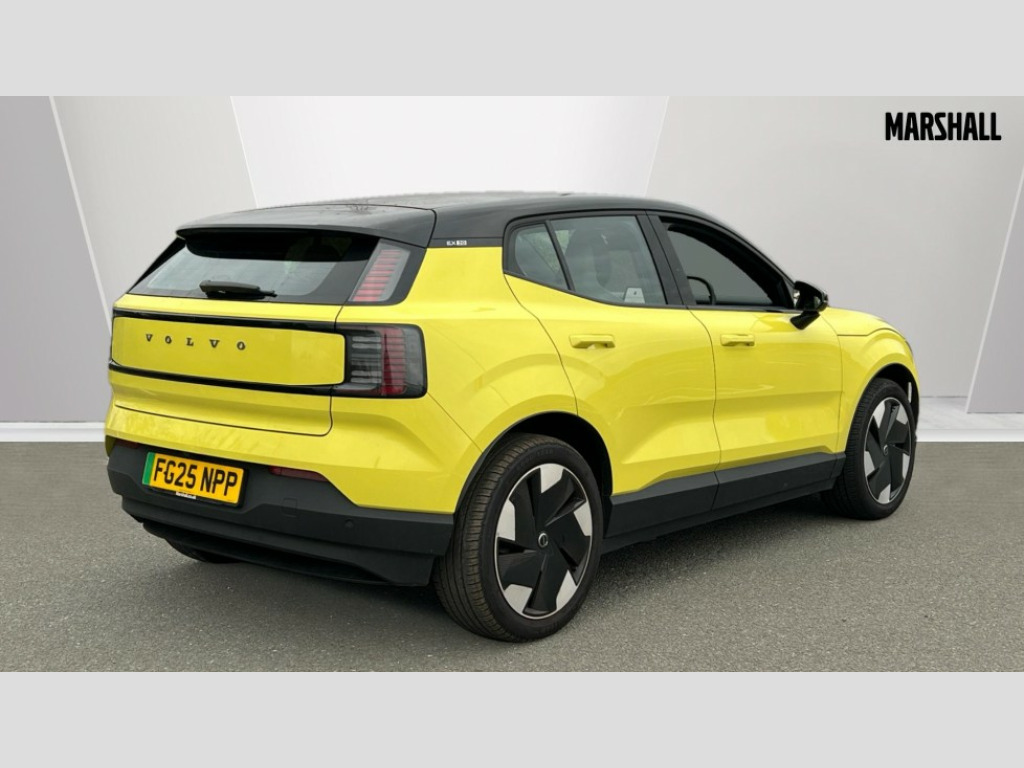 Volvo EX30 200kW SM Extended Range Plus 69kWh 5dr Auto 12.3" centre console portrait touch screen, 3 x Front and 2 x rear radars plus front vision camera, Adaptive cruise control, Android auto wireless, Blind spot information system with steer assist (BLIS), Bluetooth handsfree system, Collision avoidance at intersection, Cross traffic alert with brake support (Front and Rear), Driver alert control with lane keeping aid, Driver understanding system, Emergency call service, Forward collision warning, Front and rear park assist, Google automotive services - Enabled entertainment apps, navigation with google maps, voice recognition with google assistant, Intelligent speed assist, PAS, Pilot assist, Power operated tailgate, Rear park assist camera, Speed limiter, Volvo cars services with app, Wireless apple carplay, Wireless/Inductive Mobile Phone Charging, 11kW 3-Phase On Board Charger, 5m 3 phase 32 amp type 2 / mode 3 charge cable, Comfort chassis, Plug and charge, Recharging port located in nearside rear wing, DAB Digital radio, Dirac unison, External couple subwoofer and load compartment subwoofer, Harman Kardon Premium 5.1 Surround Sound 1040W - (2xC type USB Front & rear Sockets,Dashboard Soundbar with 7 Speakers), Low speed exterior sound speaker, Quantum logic, Vehicle noise compensation, Auto dimming interior and driver's door mirror, Auto folding heated frameless power door mirrors, Automatic LED Headlights + Active high beam incorporating daytime running lights, Dual tone roof and mirror caps, LED 3rd brake light, Metallic paint, Puddle lights, Rain sensor with automatic windscreen wiper activation, Rear side wing doors, Rear wiper, Variable intermittent wiper, 12V socket in luggage compartment, 2 zone electronic climate control with air purifier PM2.5, 3 seat bench in 2nd row, Central glovebox and storage, Fixed lumbar support, Flexible load floor, Floor mats, Front cupholders and storage, Front head restraints, Front load compartment (19 litres), Heat pump (Enhanced cabin heating and cooling efficiency with optimal vehicle range), Height/reach adjustable steering column, High level illumination (choise of 5 colour themes,central tunel,luggage,puddle,cabin,reading and front door panel pocket lights,instrument panel ), ISOFIX attachment on outer rear seats, Multifunction steering wheel, One pedal drive, Removable rear headrests, Single front passenger seat, Vehicle 2 load capability, Versatile split folding rear seat - 60/40, Climate pack - EX30, 3 point rear seatbelts, Child locks on rear doors, Collision avoidance and mitigation by braking and steering, Door opening alert, Driver and passenger airbags, First aid kit, Hill descent control, Hill start assist, IC (Inflatable Curtains) - Full Length, Inner driver seat side airbag, Passenger airbag cut-off switch, Post-impact Braking, Rear collision warning and mitigation (RCWM), Road sign information display, Run off Road Mitigation, Seatbelt pretensioners and load limiters (Front and Outer Rear Seats), SIPS (Side Impact Protection System), Tyre pressure monitoring system, Warning triangle, WHIPS whiplash protection system - front, 2 x NFC Access cards, Anti-theft alarm including immobiliser/volume sensor + level sensor, Digital key plus with keytag, Locking wheel nuts, Remote door locking and unlocking, Tyre sealant kit and compressor