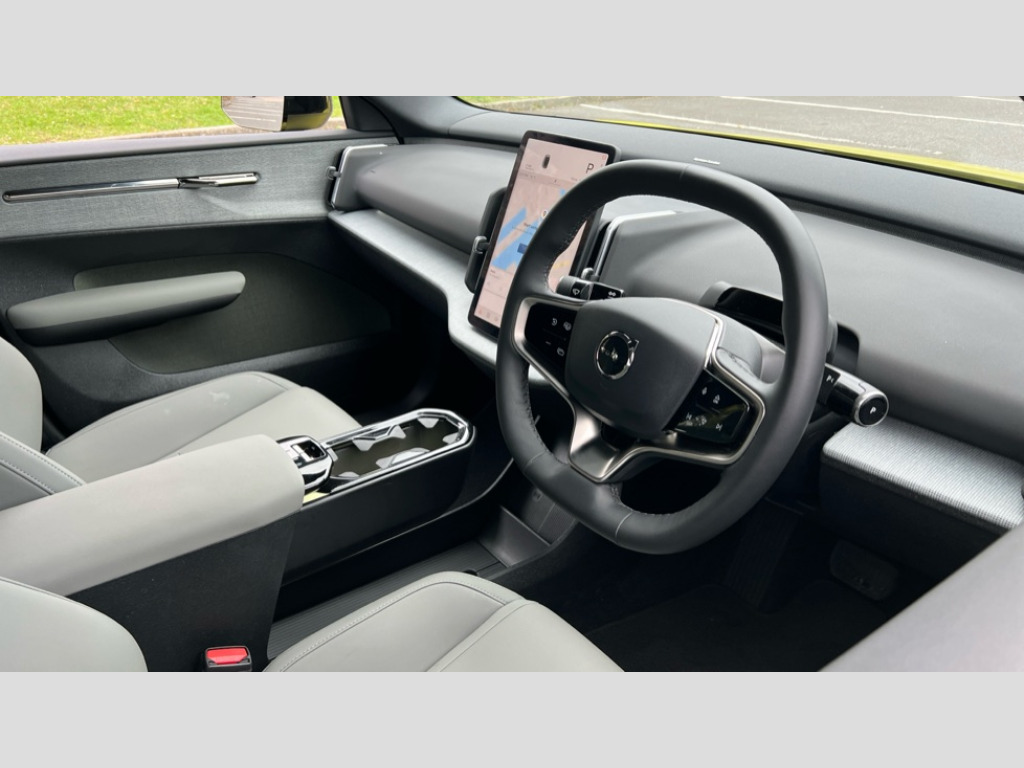 Volvo EX30 200kW SM Extended Range Plus 69kWh 5dr Auto 12.3" centre console portrait touch screen, 3 x Front and 2 x rear radars plus front vision camera, Adaptive cruise control, Android auto wireless, Blind spot information system with steer assist (BLIS), Bluetooth handsfree system, Collision avoidance at intersection, Cross traffic alert with brake support (Front and Rear), Driver alert control with lane keeping aid, Driver understanding system, Emergency call service, Forward collision warning, Front and rear park assist, Google automotive services - Enabled entertainment apps, navigation with google maps, voice recognition with google assistant, Intelligent speed assist, PAS, Pilot assist, Power operated tailgate, Rear park assist camera, Speed limiter, Volvo cars services with app, Wireless apple carplay, Wireless/Inductive Mobile Phone Charging, 11kW 3-Phase On Board Charger, 5m 3 phase 32 amp type 2 / mode 3 charge cable, Comfort chassis, Plug and charge, Recharging port located in nearside rear wing, DAB Digital radio, Dirac unison, External couple subwoofer and load compartment subwoofer, Harman Kardon Premium 5.1 Surround Sound 1040W - (2xC type USB Front & rear Sockets,Dashboard Soundbar with 7 Speakers), Low speed exterior sound speaker, Quantum logic, Vehicle noise compensation, Auto dimming interior and driver's door mirror, Auto folding heated frameless power door mirrors, Automatic LED Headlights + Active high beam incorporating daytime running lights, Dual tone roof and mirror caps, LED 3rd brake light, Metallic paint, Puddle lights, Rain sensor with automatic windscreen wiper activation, Rear side wing doors, Rear wiper, Variable intermittent wiper, 12V socket in luggage compartment, 2 zone electronic climate control with air purifier PM2.5, 3 seat bench in 2nd row, Central glovebox and storage, Fixed lumbar support, Flexible load floor, Floor mats, Front cupholders and storage, Front head restraints, Front load compartment (19 litres), Heat pump (Enhanced cabin heating and cooling efficiency with optimal vehicle range), Height/reach adjustable steering column, High level illumination (choise of 5 colour themes,central tunel,luggage,puddle,cabin,reading and front door panel pocket lights,instrument panel ), ISOFIX attachment on outer rear seats, Multifunction steering wheel, One pedal drive, Removable rear headrests, Single front passenger seat, Vehicle 2 load capability, Versatile split folding rear seat - 60/40, Climate pack - EX30, 3 point rear seatbelts, Child locks on rear doors, Collision avoidance and mitigation by braking and steering, Door opening alert, Driver and passenger airbags, First aid kit, Hill descent control, Hill start assist, IC (Inflatable Curtains) - Full Length, Inner driver seat side airbag, Passenger airbag cut-off switch, Post-impact Braking, Rear collision warning and mitigation (RCWM), Road sign information display, Run off Road Mitigation, Seatbelt pretensioners and load limiters (Front and Outer Rear Seats), SIPS (Side Impact Protection System), Tyre pressure monitoring system, Warning triangle, WHIPS whiplash protection system - front, 2 x NFC Access cards, Anti-theft alarm including immobiliser/volume sensor + level sensor, Digital key plus with keytag, Locking wheel nuts, Remote door locking and unlocking, Tyre sealant kit and compressor