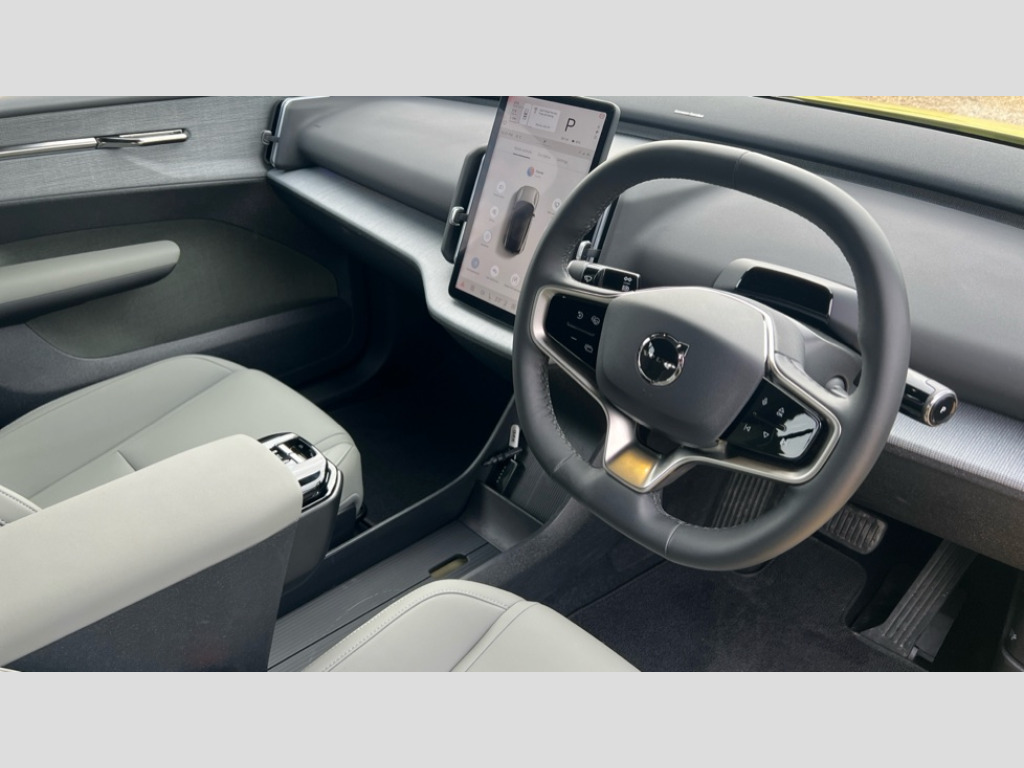 Volvo EX30 200kW SM Extended Range Plus 69kWh 5dr Auto 12.3" centre console portrait touch screen, 3 x Front and 2 x rear radars plus front vision camera, Adaptive cruise control, Android auto wireless, Blind spot information system with steer assist (BLIS), Bluetooth handsfree system, Collision avoidance at intersection, Cross traffic alert with brake support (Front and Rear), Driver alert control with lane keeping aid, Driver understanding system, Emergency call service, Forward collision warning, Front and rear park assist, Google automotive services - Enabled entertainment apps, navigation with google maps, voice recognition with google assistant, Intelligent speed assist, PAS, Pilot assist, Power operated tailgate, Rear park assist camera, Speed limiter, Volvo cars services with app, Wireless apple carplay, Wireless/Inductive Mobile Phone Charging, 11kW 3-Phase On Board Charger, 5m 3 phase 32 amp type 2 / mode 3 charge cable, Comfort chassis, Plug and charge, Recharging port located in nearside rear wing, DAB Digital radio, Dirac unison, External couple subwoofer and load compartment subwoofer, Harman Kardon Premium 5.1 Surround Sound 1040W - (2xC type USB Front & rear Sockets,Dashboard Soundbar with 7 Speakers), Low speed exterior sound speaker, Quantum logic, Vehicle noise compensation, Auto dimming interior and driver's door mirror, Auto folding heated frameless power door mirrors, Automatic LED Headlights + Active high beam incorporating daytime running lights, Dual tone roof and mirror caps, LED 3rd brake light, Metallic paint, Puddle lights, Rain sensor with automatic windscreen wiper activation, Rear side wing doors, Rear wiper, Variable intermittent wiper, 12V socket in luggage compartment, 2 zone electronic climate control with air purifier PM2.5, 3 seat bench in 2nd row, Central glovebox and storage, Fixed lumbar support, Flexible load floor, Floor mats, Front cupholders and storage, Front head restraints, Front load compartment (19 litres), Heat pump (Enhanced cabin heating and cooling efficiency with optimal vehicle range), Height/reach adjustable steering column, High level illumination (choise of 5 colour themes,central tunel,luggage,puddle,cabin,reading and front door panel pocket lights,instrument panel ), ISOFIX attachment on outer rear seats, Multifunction steering wheel, One pedal drive, Removable rear headrests, Single front passenger seat, Vehicle 2 load capability, Versatile split folding rear seat - 60/40, Climate pack - EX30, 3 point rear seatbelts, Child locks on rear doors, Collision avoidance and mitigation by braking and steering, Door opening alert, Driver and passenger airbags, First aid kit, Hill descent control, Hill start assist, IC (Inflatable Curtains) - Full Length, Inner driver seat side airbag, Passenger airbag cut-off switch, Post-impact Braking, Rear collision warning and mitigation (RCWM), Road sign information display, Run off Road Mitigation, Seatbelt pretensioners and load limiters (Front and Outer Rear Seats), SIPS (Side Impact Protection System), Tyre pressure monitoring system, Warning triangle, WHIPS whiplash protection system - front, 2 x NFC Access cards, Anti-theft alarm including immobiliser/volume sensor + level sensor, Digital key plus with keytag, Locking wheel nuts, Remote door locking and unlocking, Tyre sealant kit and compressor