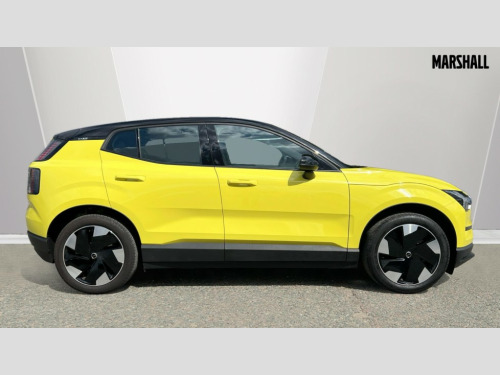 Volvo EX30 200kW SM Extended Range Plus 69kWh 5dr Auto 12.3" centre console portrait touch screen, 3 x Front and 2 x rear radars plus front vision camera, Adaptive cruise control, Android auto wireless, Blind spot information system with steer assist (BLIS), Bluetooth handsfree system, Collision avoidance at intersection, Cross traffic alert with brake support (Front and Rear), Driver alert control with lane keeping aid, Driver understanding system, Emergency call service, Forward collision warning, Front and rear park assist, Google automotive services - Enabled entertainment apps, navigation with google maps, voice recognition with google assistant, Intelligent speed assist, PAS, Pilot assist, Power operated tailgate, Rear park assist camera, Speed limiter, Volvo cars services with app, Wireless apple carplay, Wireless/Inductive Mobile Phone Charging, 11kW 3-Phase On Board Charger, 5m 3 phase 32 amp type 2 / mode 3 charge cable, Comfort chassis, Plug and charge, Recharging port located in nearside rear wing, DAB Digital radio, Dirac unison, External couple subwoofer and load compartment subwoofer, Harman Kardon Premium 5.1 Surround Sound 1040W - (2xC type USB Front & rear Sockets,Dashboard Soundbar with 7 Speakers), Low speed exterior sound speaker, Quantum logic, Vehicle noise compensation, Auto dimming interior and driver's door mirror, Auto folding heated frameless power door mirrors, Automatic LED Headlights + Active high beam incorporating daytime running lights, Dual tone roof and mirror caps, LED 3rd brake light, Metallic paint, Puddle lights, Rain sensor with automatic windscreen wiper activation, Rear side wing doors, Rear wiper, Variable intermittent wiper, 12V socket in luggage compartment, 2 zone electronic climate control with air purifier PM2.5, 3 seat bench in 2nd row, Central glovebox and storage, Fixed lumbar support, Flexible load floor, Floor mats, Front cupholders and storage, Front head restraints, Front load compartment (19 litres), Heat pump (Enhanced cabin heating and cooling efficiency with optimal vehicle range), Height/reach adjustable steering column, High level illumination (choise of 5 colour themes,central tunel,luggage,puddle,cabin,reading and front door panel pocket lights,instrument panel ), ISOFIX attachment on outer rear seats, Multifunction steering wheel, One pedal drive, Removable rear headrests, Single front passenger seat, Vehicle 2 load capability, Versatile split folding rear seat - 60/40, Climate pack - EX30, 3 point rear seatbelts, Child locks on rear doors, Collision avoidance and mitigation by braking and steering, Door opening alert, Driver and passenger airbags, First aid kit, Hill descent control, Hill start assist, IC (Inflatable Curtains) - Full Length, Inner driver seat side airbag, Passenger airbag cut-off switch, Post-impact Braking, Rear collision warning and mitigation (RCWM), Road sign information display, Run off Road Mitigation, Seatbelt pretensioners and load limiters (Front and Outer Rear Seats), SIPS (Side Impact Protection System), Tyre pressure monitoring system, Warning triangle, WHIPS whiplash protection system - front, 2 x NFC Access cards, Anti-theft alarm including immobiliser/volume sensor + level sensor, Digital key plus with keytag, Locking wheel nuts, Remote door locking and unlocking, Tyre sealant kit and compressor