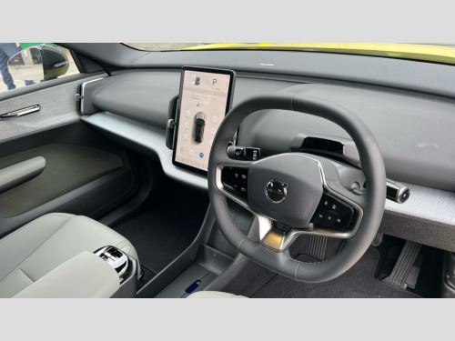 Volvo EX30 200kW SM Extended Range Plus 69kWh 5dr Auto 12.3" centre console portrait touch screen, 3 x Front and 2 x rear radars plus front vision camera, Adaptive cruise control, Android auto wireless, Blind spot information system with steer assist (BLIS), Bluetooth handsfree system, Collision avoidance at intersection, Cross traffic alert with brake support (Front and Rear), Driver alert control with lane keeping aid, Driver understanding system, Emergency call service, Forward collision warning, Front and rear park assist, Google automotive services - Enabled entertainment apps, navigation with google maps, voice recognition with google assistant, Intelligent speed assist, PAS, Pilot assist, Power operated tailgate, Rear park assist camera, Speed limiter, Volvo cars services with app, Wireless apple carplay, Wireless/Inductive Mobile Phone Charging, 11kW 3-Phase On Board Charger, 5m 3 phase 32 amp type 2 / mode 3 charge cable, Comfort chassis, Plug and charge, Recharging port located in nearside rear wing, DAB Digital radio, Dirac unison, External couple subwoofer and load compartment subwoofer, Harman Kardon Premium 5.1 Surround Sound 1040W - (2xC type USB Front & rear Sockets,Dashboard Soundbar with 7 Speakers), Low speed exterior sound speaker, Quantum logic, Vehicle noise compensation, Auto dimming interior and driver's door mirror, Auto folding heated frameless power door mirrors, Automatic LED Headlights + Active high beam incorporating daytime running lights, Dual tone roof and mirror caps, LED 3rd brake light, Metallic paint, Puddle lights, Rain sensor with automatic windscreen wiper activation, Rear side wing doors, Rear wiper, Variable intermittent wiper, 12V socket in luggage compartment, 2 zone electronic climate control with air purifier PM2.5, 3 seat bench in 2nd row, Central glovebox and storage, Fixed lumbar support, Flexible load floor, Floor mats, Front cupholders and storage, Front head restraints, Front load compartment (19 litres), Heat pump (Enhanced cabin heating and cooling efficiency with optimal vehicle range), Height/reach adjustable steering column, High level illumination (choise of 5 colour themes,central tunel,luggage,puddle,cabin,reading and front door panel pocket lights,instrument panel ), ISOFIX attachment on outer rear seats, Multifunction steering wheel, One pedal drive, Removable rear headrests, Single front passenger seat, Vehicle 2 load capability, Versatile split folding rear seat - 60/40, Climate pack - EX30, 3 point rear seatbelts, Child locks on rear doors, Collision avoidance and mitigation by braking and steering, Door opening alert, Driver and passenger airbags, First aid kit, Hill descent control, Hill start assist, IC (Inflatable Curtains) - Full Length, Inner driver seat side airbag, Passenger airbag cut-off switch, Post-impact Braking, Rear collision warning and mitigation (RCWM), Road sign information display, Run off Road Mitigation, Seatbelt pretensioners and load limiters (Front and Outer Rear Seats), SIPS (Side Impact Protection System), Tyre pressure monitoring system, Warning triangle, WHIPS whiplash protection system - front, 2 x NFC Access cards, Anti-theft alarm including immobiliser/volume sensor + level sensor, Digital key plus with keytag, Locking wheel nuts, Remote door locking and unlocking, Tyre sealant kit and compressor
