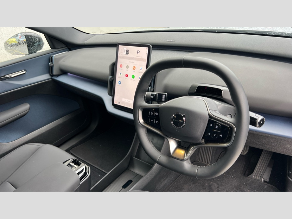 Volvo EX30 200kW SM Extended Range Plus 69kWh 5dr Auto 12.3" centre console portrait touch screen, 3 x Front and 2 x rear radars plus front vision camera, Adaptive cruise control, Android auto wireless, Blind spot information system with steer assist (BLIS), Bluetooth handsfree system, Collision avoidance at intersection, Cross traffic alert with brake support (Front and Rear), Driver alert control with lane keeping aid, Driver understanding system, Emergency call service, Forward collision warning, Front and rear park assist, Google automotive services - Enabled entertainment apps, navigation with google maps, voice recognition with google assistant, Intelligent speed assist, PAS, Pilot assist, Power operated tailgate, Rear park assist camera, Speed limiter, Volvo cars services with app, Wireless apple carplay, Wireless/Inductive Mobile Phone Charging, 11kW 3-Phase On Board Charger, 5m 3 phase 32 amp type 2 / mode 3 charge cable, Comfort chassis, Plug and charge, Recharging port located in nearside rear wing, DAB Digital radio, Dirac unison, External couple subwoofer and load compartment subwoofer, Harman Kardon Premium 5.1 Surround Sound 1040W - (2xC type USB Front & rear Sockets,Dashboard Soundbar with 7 Speakers), Low speed exterior sound speaker, Quantum logic, Vehicle noise compensation, Auto dimming interior and driver's door mirror, Auto folding heated frameless power door mirrors, Automatic LED Headlights + Active high beam incorporating daytime running lights, Dual tone roof and mirror caps, LED 3rd brake light, Metallic paint, Puddle lights, Rain sensor with automatic windscreen wiper activation, Rear side wing doors, Rear wiper, Variable intermittent wiper, 12V socket in luggage compartment, 2 zone electronic climate control with air purifier PM2.5, 3 seat bench in 2nd row, Central glovebox and storage, Fixed lumbar support, Flexible load floor, Floor mats, Front cupholders and storage, Front head restraints, Front load compartment (19 litres), Heat pump (Enhanced cabin heating and cooling efficiency with optimal vehicle range), Height/reach adjustable steering column, High level illumination (choise of 5 colour themes,central tunel,luggage,puddle,cabin,reading and front door panel pocket lights,instrument panel ), ISOFIX attachment on outer rear seats, Multifunction steering wheel, One pedal drive, Removable rear headrests, Single front passenger seat, Vehicle 2 load capability, Versatile split folding rear seat - 60/40, Climate pack - EX30, 3 point rear seatbelts, Child locks on rear doors, Collision avoidance and mitigation by braking and steering, Door opening alert, Driver and passenger airbags, First aid kit, Hill descent control, Hill start assist, IC (Inflatable Curtains) - Full Length, Inner driver seat side airbag, Passenger airbag cut-off switch, Post-impact Braking, Rear collision warning and mitigation (RCWM), Road sign information display, Run off Road Mitigation, Seatbelt pretensioners and load limiters (Front and Outer Rear Seats), SIPS (Side Impact Protection System), Tyre pressure monitoring system, Warning triangle, WHIPS whiplash protection system - front, 2 x NFC Access cards, Anti-theft alarm including immobiliser/volume sensor + level sensor, Digital key plus with keytag, Locking wheel nuts, Remote door locking and unlocking, Tyre sealant kit and compressor