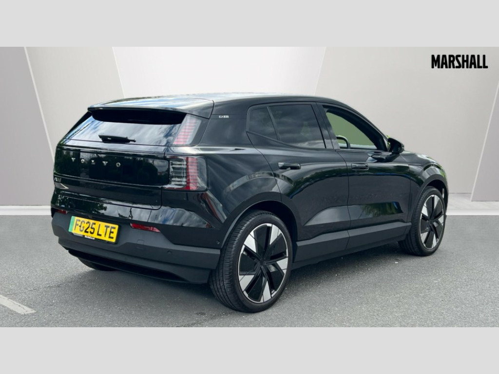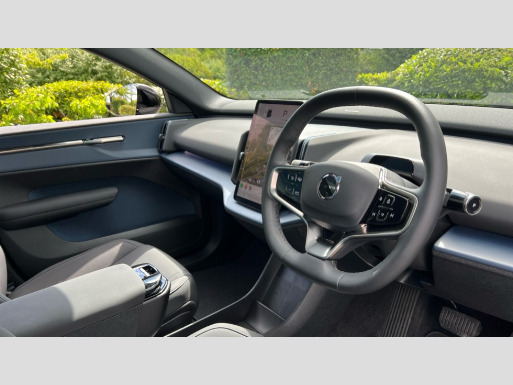 Volvo EX30 200kW SM Extended Range Ultra 69kWh 5dr Auto 12.3" centre console portrait touch screen, 3 x Front and 2 x rear radars plus front vision camera, 360 Degree camera with virtual 3D view, Adaptive cruise control, Android auto wireless, Blind spot information system with steer assist (BLIS), Bluetooth handsfree system, Collision avoidance at intersection, Cross traffic alert with brake support (Front and Rear), Driver alert control with lane keeping aid, Driver understanding system, Emergency call service, Forward collision warning, Front and rear park assist, Google automotive services - Enabled entertainment apps, navigation with google maps, voice recognition with google assistant, Intelligent speed assist, Park pilot assist, PAS, Power operated tailgate, Speed limiter, Volvo cars services with app, Wireless apple carplay, Wireless/Inductive Mobile Phone Charging, 3-Phase On Board Charger - 22kW, 5m 3 phase 32 amp type 2 / mode 3 charge cable, Comfort chassis, Plug and charge, Recharging port located in nearside rear wing, DAB Digital radio, Dirac unison, External couple subwoofer and load compartment subwoofer, Harman Kardon Premium 5.1 Surround Sound 1040W - (2xC type USB Front & rear Sockets,Dashboard Soundbar with 7 Speakers), Low speed exterior sound speaker, Quantum logic, Vehicle noise compensation, Auto dimming interior and driver's door mirror, Auto folding heated frameless power door mirrors, Automatic LED Headlights + Active high beam incorporating daytime running lights, Dark tinted windows - rear side windows and rear screen, Dual tone roof and mirror caps, Fixed panoramic glass sunroof, LED 3rd brake light, Metallic paint, Puddle lights, Rain sensor with automatic windscreen wiper activation, Rear side wing doors, Rear wiper, Variable intermittent wiper, 12V socket in luggage compartment, 2 zone electronic climate control with air purifier PM2.5, 3 seat bench in 2nd row, Central glovebox and storage, Fixed lumbar support, Flexible load floor, Floor mats, Front cupholders and storage, Front head restraints, Front load compartment (19 litres), Heat pump (Enhanced cabin heating and cooling efficiency with optimal vehicle range), Height/reach adjustable steering column, High level illumination (choise of 5 colour themes,central tunel,luggage,puddle,cabin,reading and front door panel pocket lights,instrument panel ), ISOFIX attachment on outer rear seats, Multifunction steering wheel, One pedal drive, Removable rear headrests, Single front passenger seat, Vehicle 2 load capability, Versatile split folding rear seat - 60/40, Climate pack - EX30, Power seat pack - EX30, 3 point rear seatbelts, Child locks on rear doors, Collision avoidance and mitigation by braking and steering, Door opening alert, Driver and passenger airbags, First aid kit, Hill descent control, Hill start assist, IC (Inflatable Curtains) - Full Length, Inner driver seat side airbag, Passenger airbag cut-off switch, Post-impact Braking, Rear collision warning and mitigation (RCWM), Road sign information display, Run off Road Mitigation, Seatbelt pretensioners and load limiters (Front and Outer Rear Seats), SIPS (Side Impact Protection System), Tyre pressure monitoring system, Warning triangle, WHIPS whiplash protection system - front, 2 x NFC Access cards, Anti-theft alarm including immobiliser/volume sensor + level sensor, Digital key plus with keytag, Locking wheel nuts, Remote door locking and unlocking, Tyre sealant kit and compressor