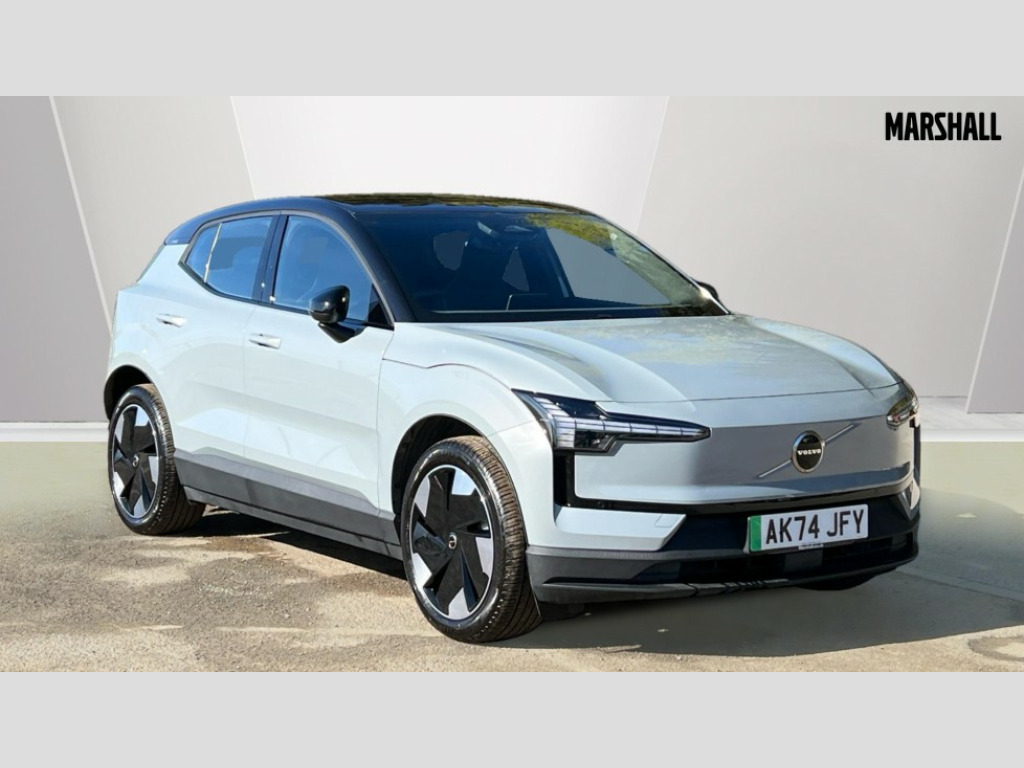 Volvo EX30 315kW Twin Motor Performance Plus 69kWh 5dr Auto 12.3" centre console portrait touch screen, 3 x Front and 2 x rear radars plus front vision camera, Adaptive cruise control, Blind spot information system with steer assist (BLIS), Bluetooth handsfree system, Collision avoidance at intersection, Cross traffic alert with brake support (Front and Rear), Driver alert control with lane keeping aid, Driver understanding system, Emergency call service, Forward collision warning, Front and rear park assist, Google automotive services - Enabled entertainment apps, navigation with google maps, voice recognition with google assistant, Intelligent speed assist, PAS, Pilot assist, Power operated tailgate, Rear park assist camera, Speed limiter, Volvo cars services with app, Wireless apple carplay, Wireless/Inductive Mobile Phone Charging, 11kW 3-Phase On Board Charger, 5m 3 phase 32 amp type 2 / mode 3 charge cable, Comfort chassis, Recharging port located in nearside rear wing, DAB Digital radio, Dirac unison, External couple subwoofer and load compartment subwoofer, Harman Kardon Premium 5.1 Surround Sound 1040W - (2xC type USB Front & rear Sockets,Dashboard Soundbar with 7 Speakers), Low speed exterior sound speaker, Quantum logic, Vehicle noise compensation, Auto dimming interior and driver's door mirror, Auto folding heated frameless power door mirrors, Automatic LED Headlights + Active high beam incorporating daytime running lights, Dual tone roof and mirror caps, LED 3rd brake light, Metallic paint, Puddle lights, Rain sensor with automatic windscreen wiper activation, Rear side wing doors, Rear wiper, Variable intermittent wiper, 12V socket in luggage compartment, 2 zone electronic climate control with air purifier PM2.5, 3 seat bench in 2nd row, Central glovebox and storage, Fixed lumbar support, Flexible load floor, Floor mats, Fore/Aft and backrest recline adjustable passenger seat, Fore/Aft, Height and backrest recline adjustable driver seat, Front cupholders and storage, Front head restraints, Front load compartment (19 litres), Heat pump (Enhanced cabin heating and cooling efficiency with optimal vehicle range), Heated front seats, Heated steering wheel, Height/reach adjustable steering column, High level illumination (choise of 5 colour themes,central tunel,luggage,puddle,cabin,reading and front door panel pocket lights,instrument panel ), ISOFIX attachment on outer rear seats, Multifunction steering wheel, One pedal drive, Removable rear headrests, Single front passenger seat, Versatile split folding rear seat - 60/40, 3 point rear seatbelts, Child locks on rear doors, Collision avoidance and mitigation by braking and steering, Door opening alert, Driver and passenger airbags, First aid kit, Hill descent control, Hill start assist, IC (Inflatable Curtains) - Full Length, Inner driver seat side airbag, Passenger airbag cut-off switch, Post-impact Braking, Rear collision warning and mitigation (RCWM), Road sign information display, Run off Road Mitigation, Seatbelt pretensioners and load limiters (Front and Outer Rear Seats), SIPS (Side Impact Protection System), Tyre pressure monitoring system, Warning triangle, WHIPS whiplash protection system - front, 2 x NFC Access cards, Anti-theft alarm including immobiliser/volume sensor + level sensor, Digital key plus with keytag, Locking wheel nuts, Remote door locking and unlocking, 19" 5 Spoke aero diamond cut alloy wheels with summer tyres, Tyre sealant kit and compressor