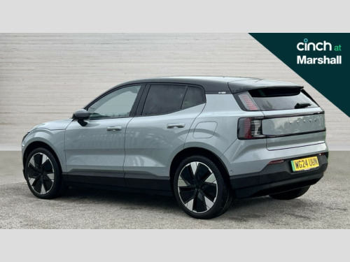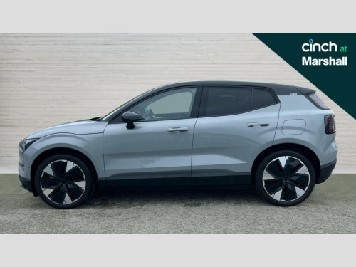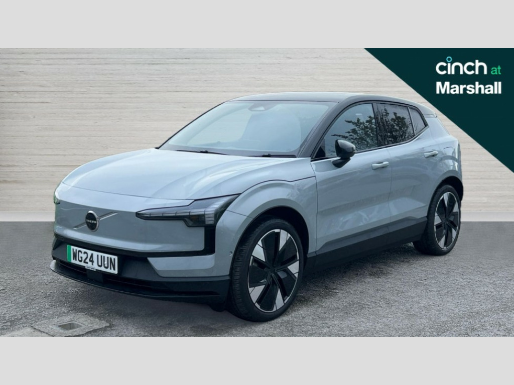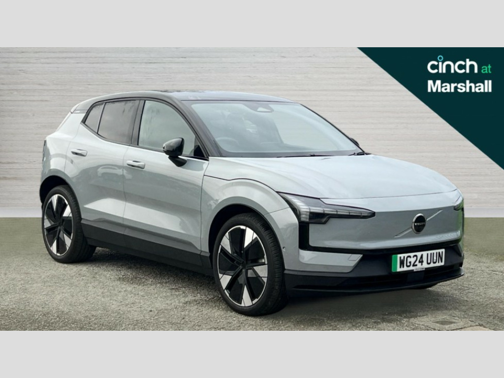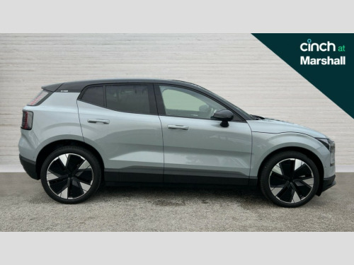 Volvo EX30 315kW Twin Motor Performance Ultra 69kWh 5dr Auto 12.3" centre console portrait touch screen, 3 x Front and 2 x rear radars plus front vision camera, 360 Degree camera with virtual 3D view, Adaptive cruise control, Blind spot information system with steer assist (BLIS), Bluetooth handsfree system, Collision avoidance at intersection, Cross traffic alert with brake support (Front and Rear), Driver alert control with lane keeping aid, Driver understanding system, Emergency call service, Forward collision warning, Front and rear park assist, Google automotive services - Enabled entertainment apps, navigation with google maps, voice recognition with google assistant, Intelligent speed assist, Park pilot assist, PAS, Power operated tailgate, Speed limiter, Volvo cars services with app, Wireless apple carplay, Wireless/Inductive Mobile Phone Charging, 3-Phase On Board Charger - 22kW, 6m 3 phase 32 amp type 2 / mode 3 charge cable, Comfort chassis, Recharging port located in nearside rear wing, DAB Digital radio, Dirac unison, External couple subwoofer and load compartment subwoofer, Harman Kardon Premium 5.1 Surround Sound 1040W - (2xC type USB Front & rear Sockets,Dashboard Soundbar with 7 Speakers), Low speed exterior sound speaker, Quantum logic, Vehicle noise compensation, Auto dimming interior and driver's door mirror, Auto folding heated frameless power door mirrors, Automatic LED Headlights + Active high beam incorporating daytime running lights, Dark tinted windows - rear side windows and rear screen, Dual tone roof and mirror caps, Fixed panoramic glass sunroof, LED 3rd brake light, Metallic paint, Puddle lights, Rain sensor with automatic windscreen wiper activation, Rear side wing doors, Rear wiper, Variable intermittent wiper, 12V socket in luggage compartment, 2 zone electronic climate control with air purifier PM2.5, 3 seat bench in 2nd row, Central glovebox and storage, Fixed lumbar support, Flexible load floor, Floor mats, Front cupholders and storage, Front head restraints, Front load compartment (19 litres), Heat pump (Enhanced cabin heating and cooling efficiency with optimal vehicle range), Heated front seats, Heated steering wheel, Height/reach adjustable steering column, High level illumination (choise of 5 colour themes,central tunel,luggage,puddle,cabin,reading and front door panel pocket lights,instrument panel ), ISOFIX attachment on outer rear seats, Memory for power driver seat and exterior mirror, Multifunction steering wheel, One pedal drive, Power Driver Seat with Fore/Aft, Height, Tilt, backrest recline and multi-directional lumbar support adjustments, Power Passenger Seat with Fore/Aft, Height, tilt and backrest recline adjustments, Removable rear headrests, Single front passenger seat, Versatile split folding rear seat - 60/40, 3 point rear seatbelts, Child locks on rear doors, Collision avoidance and mitigation by braking and steering, Door opening alert, Driver and passenger airbags, First aid kit, Hill descent control, Hill start assist, IC (Inflatable Curtains) - Full Length, Inner driver seat side airbag, Passenger airbag cut-off switch, Post-impact Braking, Rear collision warning and mitigation (RCWM), Road sign information display, Run off Road Mitigation, Seatbelt pretensioners and load limiters (Front and Outer Rear Seats), SIPS (Side Impact Protection System), Tyre pressure monitoring system, Warning triangle, WHIPS whiplash protection system - front, 2 x NFC Access cards, Anti-theft alarm including immobiliser/volume sensor + level sensor, Digital key plus with keytag, Locking wheel nuts, Remote door locking and unlocking, 20" 5 Spoke aero diamond cut alloy wheels, Tyre sealant kit and compressor
