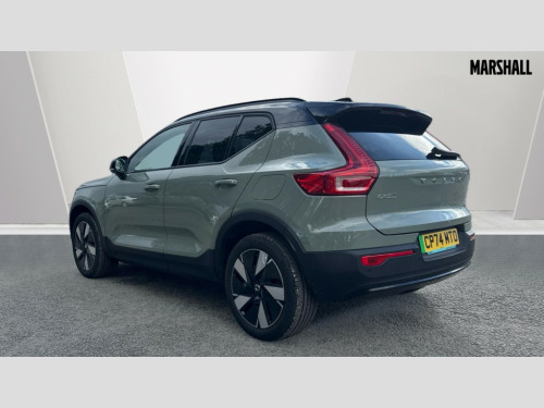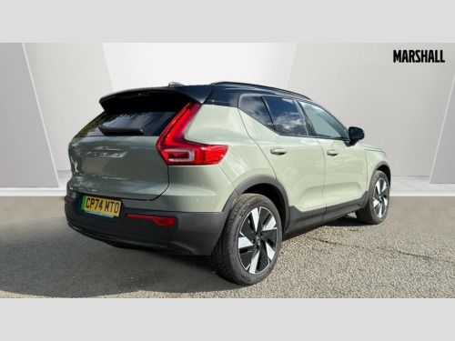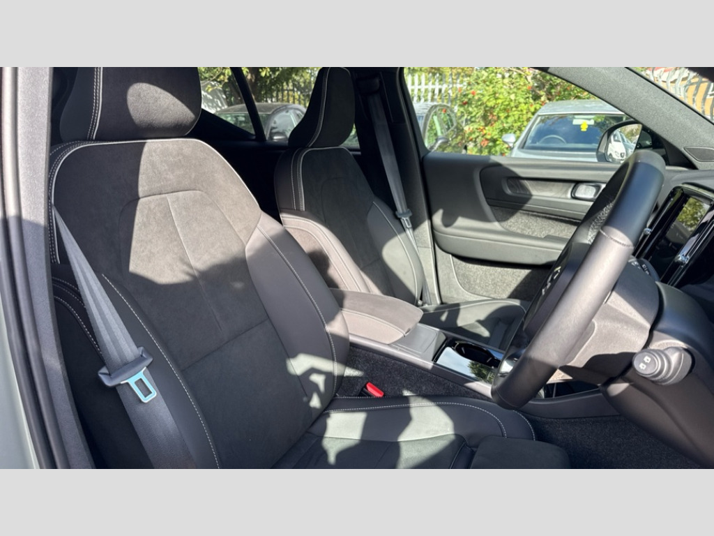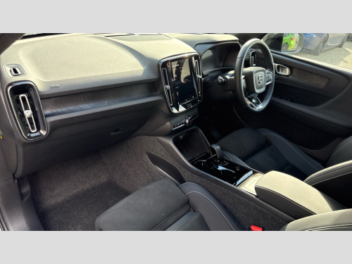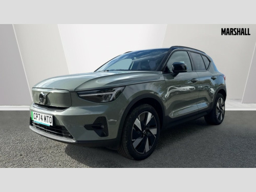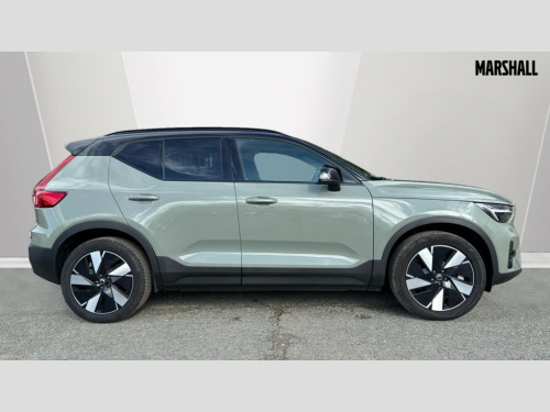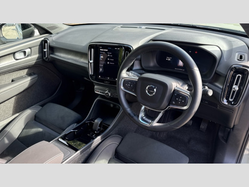 Volvo EX40 175kW Single Motor Plus 69kWh 5dr Auto 12.3" Progressive Driver Display, 9" centre console touch screen, Adjustable steering wheel force, Bluetooth handsfree system, Driver alert control with lane keeping aid, Driver assistance (pilot assist and adaptive cruise control), Driver awareness - Blind spot information system with steer assist, cross traffic alert with autobrake and rear collision warning and mitigation, Emergency services call system, Front park assist, Google automotive services - Enabled entertainment apps, navigation with google maps, voice recognition with google assistant, Handsfree tailgate opening/closing, Intelligent speed assistance, Oncoming Lane Mitigation, Rear park assist sensors, Speed sensitive steering, Volvo cars services with app, Volvo on call with charge station locations and route planning and pre climatisation, Wired Apple CarPlay, Wireless/Inductive Mobile Phone Charging, 11 kW three phase onboard charger, 6m 3 phase 32 amp type 2 / mode 3 charge cable, Electric rear axle drive, Lithium-ion battery, Recharging port located in nearside rear wing, Touring chassis, DAB Digital radio, Low speed exterior sound speaker, Steering wheel remote infotainment controls, Adaptive brake lights with high level LED brake lights, Auto dimming exterior rear view mirror, Auto dimming interior mirror, Automatic headlamp levelling, Automatic LED Headlights + Active high beam incorporating daytime running lights, Black stone A pillars, Black stone autofolding heated power door mirrors, Black stone roof, Black stone roof spoiler, Colour co-ordinated front grille and surround, Dark tinted windows - rear side windows and rear screen, Electric adjustable/heated/auto folding door mirrors, Front and rear electric windows, Front intermittent wipers, Front metal tread plates engraved with EX40, High gloss black front bumper deco, High gloss black rear bumper lower deco, High gloss black rear skid plate, High gloss black window trim, Home safe and approach lighting, Integrated roof rails in high gloss black, LED front fog lamps, Puddle lights, Rain sensor with automatic windscreen wiper activation, Rear side wing doors, Rear wiper, Roof antenna, Roof side cant-rail, Visible VIN plate, 12V socket in front tunnel console, 2 zone electronic climate control with Clean zone air quality system and pollen filter, 3 bench rear seats in 2nd row, 3 Spoke tailored steering wheel with chrome trim, 60/40 versatile split folding rear seat, Ambient front door and instrumental panel lighting, Bright metal luggage scuff plate, Centre console cupholders and storage, Charcoal headlining, Flexible load floor and grocery bag holder, Floor mats, Front and rear courtesy lights, Front and rear reading lights, Front door pocket illumination, Front footwell illumination, Front headrests, Front load compartment (31 litres), Front seat cushion extensions, Front side step illumination (under door), Glovebox bag hook, Heat pump (Enhanced cabin heating and cooling efficiency with optimal vehicle range), Heated front seats, Height adjustable passenger seat, Height/reach adjustable steering column, High gloss black centre tunnel deco, Illuminated glovebox, Illuminated luggage compartment, Illuminated tailgate, Illuminated vanity mirrors + ticket holder, Instrument panel and front door inlay lighting, Integrated waste bin, Load cover, Load protection net, Multi directional lumbar support, One pedal drive mode, Power driver seat with memory + exterior mirrors memory, Rear armrest with cupholder, Rear coat hook, Rear headrests, Single front passenger seat, Sports steering wheel, Underfloor cargo storage, Climate pack - EC40/EX40, 3x3 point rear seatbelts, City safety with steering support with Pedestrian + cyclist + front collision warning with full auto brake and rear auto brake, Driver and passenger airbags, Drivers knee airbag, Electronic parking brake with auto hold, First aid kit, Front and outer rear seatbelt reminder and pretensioners, Front seats SIPS airbags, Hill descent control - Off-road drive mode, Hill start assist, IC (Inflatable Curtains) - Full Length, ISOFIX attachment (Front passenger and Rear outer seats), Passenger airbag cut-off device, Power child locks on rear doors, Road sign information display, Run off Road Mitigation, SIPS (Side Impact Protection System), Slippery road and hazard light alert, Stability and traction control includes spin control and corner traction control, Tyre pressure monitoring system, Vehicle deceleration control with Anti-lock Brake System, Electronic Brake Distribution and Emergency Brake Assist, Warning triangle, WHIPS whiplash protection system - front, 2 x Key integrated remote control central locking including recharging port with deadlocking system and auto open/close power windows, Anti-theft alarm including immobiliser/volume sensor + level sensor, Care key with user defined top speed, Convenient entry and start, Keyless drive with keyless entry and keyless start, Locking wheel nuts, Private locking for tailgate, Remote door locking and unlocking, Origin inlay, Summer tyres, Tyre sealant kit and compressor