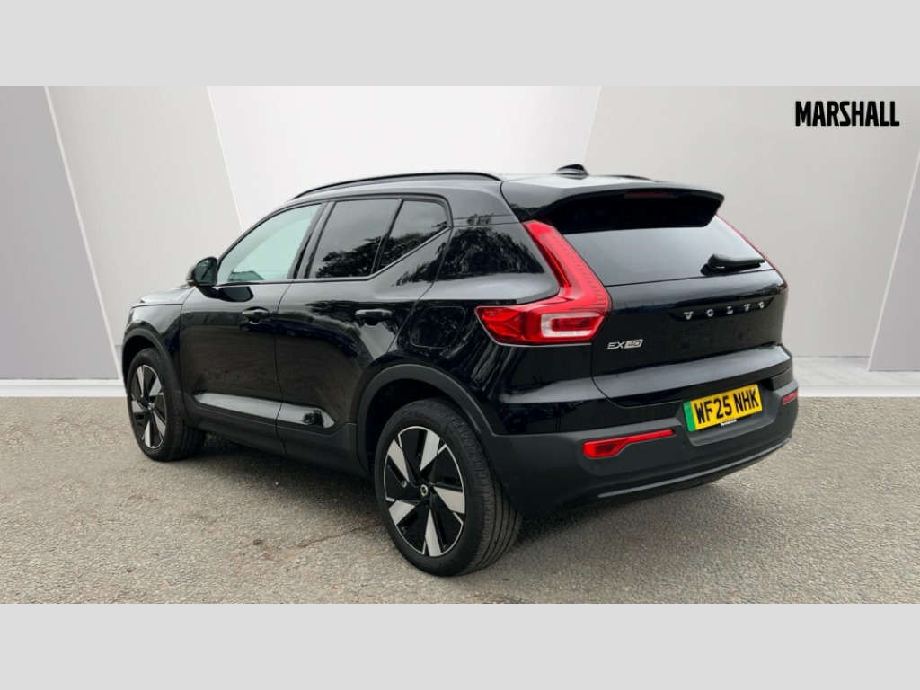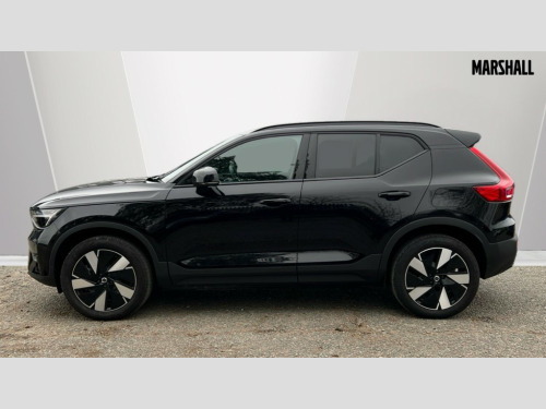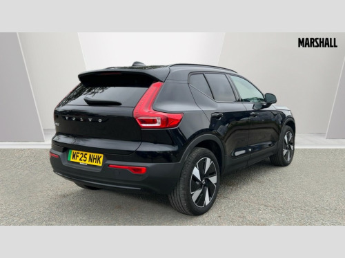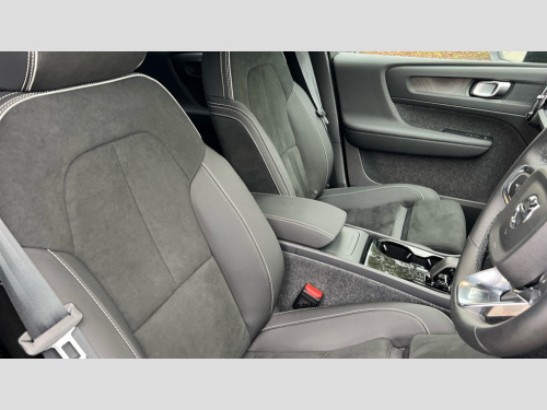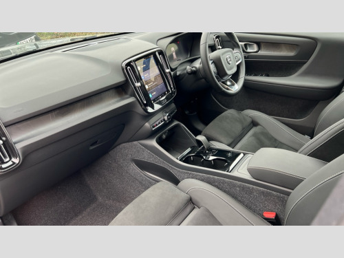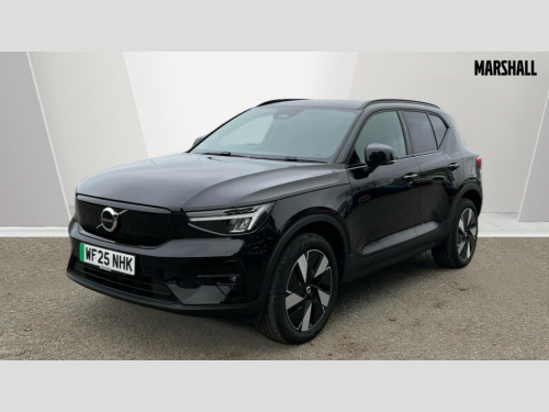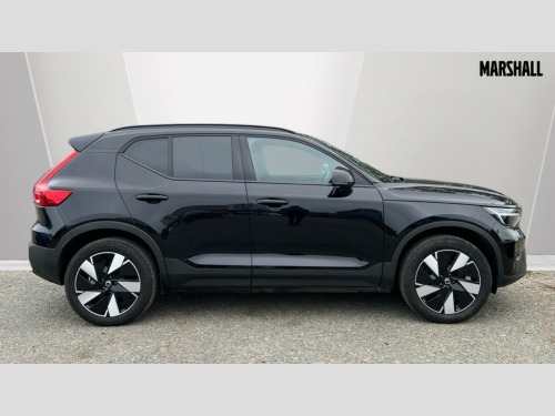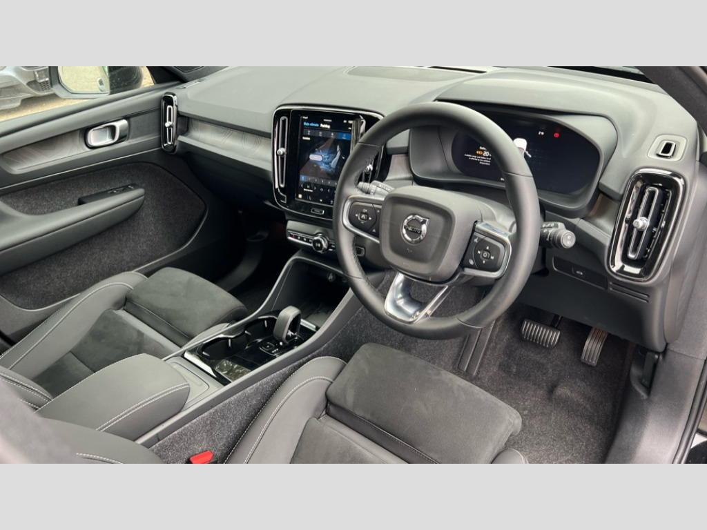 Volvo EX40 175kW Single Motor Plus 69kWh 5dr Auto 12.3" Progressive Driver Display, 9" centre console touch screen, Adaptive cruise control, Adjustable steering wheel force, Blind spot info sys with steer assist, cross traffic alert with autobrake, rear collision warn, mitigation and auto dimming exterior rear view mirror, Bluetooth handsfree system, Driver alert control with lane keeping aid, Emergency services call system, Front park assist, Google automotive services - Enabled entertainment apps, navigation with google maps, voice recognition with google assistant, Handsfree tailgate opening/closing, Intelligent speed assistance, Oncoming Lane Mitigation, Pilot assist, Rear park assist sensors, Speed sensitive steering, Volvo cars services with app, Volvo on call with charge station locations and route planning and pre climatisation, Wired Android Auto, Wired Apple CarPlay, Wireless/Inductive Mobile Phone Charging, 11 kW three phase onboard charger, 6m 3 phase 32 amp type 2 / mode 3 charge cable, Electric rear axle drive, Lithium-ion battery, Touring chassis, Type 2/CCS recharging port located in nearside rear wing, DAB Digital radio, Low speed exterior sound speaker, Steering wheel remote infotainment controls, Adaptive brake lights with high level LED brake lights, Auto dimming interior mirror, Automatic headlamp levelling, Automatic LED Headlights + Active high beam incorporating daytime running lights, Colour co-ordinated front grille and surround, Electric adjustable/heated/auto folding door mirrors, Front and rear electric windows, Front intermittent wipers, Front metal tread plates engraved with EX40, High gloss black front bumper deco, High gloss black rear skid plate, High gloss black window trim, Home safe and approach lighting, Integrated roof rails in high gloss black, LED front fog lamps, Puddle lights, Rain sensor with automatic windscreen wiper activation, Rear side wing doors, Rear wiper, Roof antenna, Visible VIN plate, 12V socket in front tunnel console, 2 zone electronic climate control with Clean zone air quality system and pollen filter, 3 bench rear seats in 2nd row, 3 Spoke tailored steering wheel with chrome trim, 60/40 versatile split folding rear seat, Bright metal luggage scuff plate, Centre console cupholders and storage, Charcoal headlining, Connect suede textile/microtech upholstery, Flexible load floor and grocery bag holder, Floor mats, Front and rear courtesy lights, Front and rear reading lights, Front door pocket illumination, Front footwell illumination, Front headrests, Front load compartment (31 litres), Front seat cushion extensions, Front side step illumination (under door), Glovebox bag hook, Heat pump (Enhanced cabin heating and cooling efficiency with optimal vehicle range), Heated front seats, Height adjustable passenger seat, Height/reach adjustable steering column, High gloss black centre tunnel deco, Illuminated glovebox, Illuminated luggage compartment, Illuminated tailgate, Illuminated vanity mirrors + ticket holder, Instrument panel and front door inlay lighting, Integrated waste bin, Load cover, Load protection net, Multi directional lumbar support, One pedal drive mode, Power driver seat with memory + exterior mirrors memory, Rear armrest with cupholder, Rear coat hook, Rear headrests, Single front passenger seat, Sports steering wheel, Underfloor cargo storage, Climate pack - EC40/EX40, 3x3 point rear seatbelts, City safety with steering support with Pedestrian + cyclist + front collision warning with full auto brake and rear auto brake, Driver and passenger airbags, Drivers knee airbag, Electronic parking brake with auto hold, First aid kit, Front and outer rear seatbelt reminder and pretensioners, Front seats SIPS airbags, Hill descent control - Off-road drive mode, Hill start assist, IC (Inflatable Curtains) - Full Length, ISOFIX attachment (Front passenger and Rear outer seats), Passenger airbag cut-off device, Power child locks on rear doors, Road sign information display, Run off Road Mitigation, SIPS (Side Impact Protection System), Slippery road and hazard light alert, Stability and traction control includes spin control and corner traction control, Tyre pressure monitoring system, Vehicle deceleration control with Anti-lock Brake System, Electronic Brake Distribution and Emergency Brake Assist, Warning triangle, WHIPS whiplash protection system - front, 2 x Key integrated remote control central locking including recharging port with deadlocking system and auto open/close power windows, Anti-theft alarm including immobiliser/volume sensor + level sensor, Care key with user defined top speed, Convenient entry and start, Keyless drive with keyless entry and keyless start, Locking wheel nuts, Private locking for tailgate, Remote door locking and unlocking, Summer tyres, Tyre sealant kit and compressor