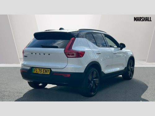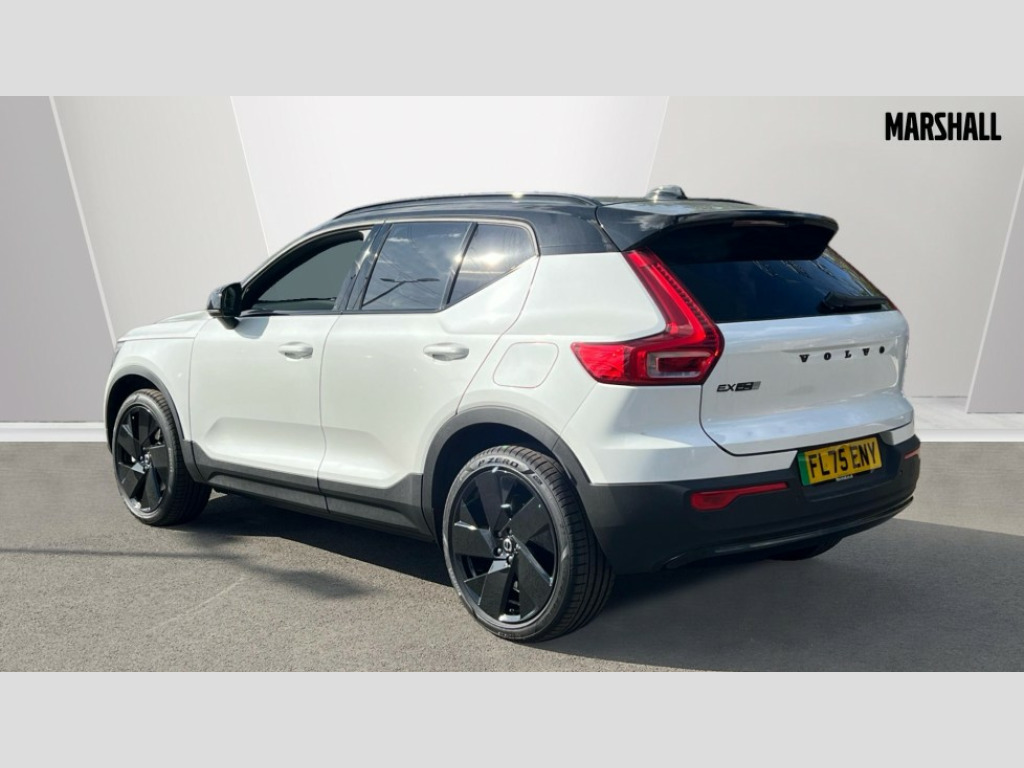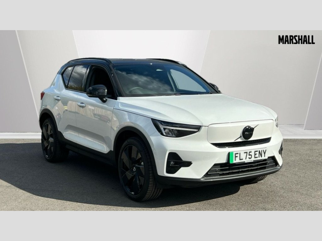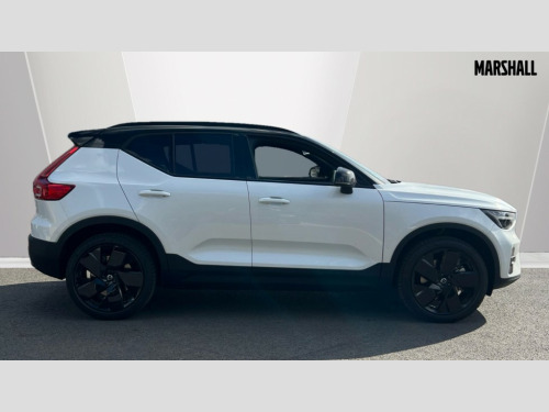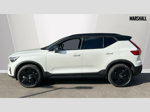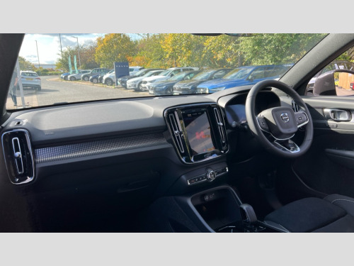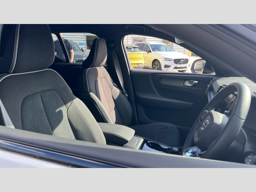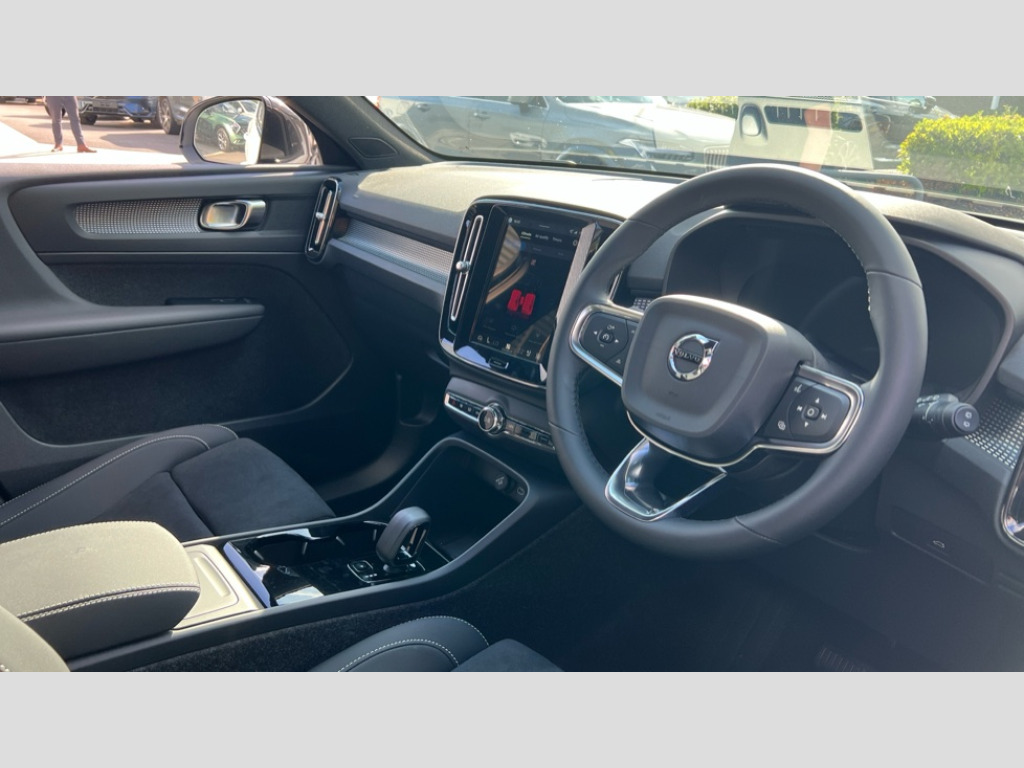 Volvo EX40 185kW Ext Range Plus Black Editon 78kWh 5dr Auto 12.3" Progressive Driver Display, 9" centre console touch screen, Adjustable steering wheel force, Bluetooth handsfree system, Driver alert control with lane keeping aid, Driver assistance (pilot assist and adaptive cruise control), Driver awareness - Blind spot information system with steer assist, cross traffic alert with autobrake and rear collision warning and mitigation, Emergency services call system, Front park assist, Google automotive services - Enabled entertainment apps, navigation with google maps, voice recognition with google assistant, Handsfree tailgate opening/closing, Intelligent speed assistance, Oncoming Lane Mitigation, Rear park assist sensors, Speed sensitive steering, Volvo cars services with app, Volvo on call with charge station locations and route planning and pre climatisation, Wired Apple CarPlay, Wireless/Inductive Mobile Phone Charging, 11 kW three phase onboard charger, 6m 3 phase 32 amp type 2 / mode 3 charge cable, Recharging port located in nearside rear wing, Touring chassis, DAB Digital radio, Low speed exterior sound speaker, Steering wheel remote infotainment controls, Active bending pixel LED headlights with adaptive shadow technology, Adaptive brake lights with high level LED brake lights, Additional metallic paint, Auto dimming exterior rear view mirror, Auto dimming interior mirror, Automatic headlamp levelling, Black stone A pillars, Black stone autofolding heated power door mirrors, Black stone roof, Black stone roof spoiler, Dark tinted windows - rear side windows and rear screen, Fixed panoramic sunroof with high gloss black rear roof panel, Front metal tread plates engraved with EX40, Headlight cleaning system, High gloss black front bumper deco, High gloss black front grille strikethrough and ironmark, High gloss black rear bumper lower deco, High gloss black rear model and engine and volvo logo badges, High gloss black rear skid plate, High gloss black window trim, Home safe and approach lighting, Integrated roof rails in high gloss black, LED daytime running lights, LED front fog lamps with cornering function, Puddle lights, Rain sensor with automatic windscreen wiper activation, Rear side wing doors, Rear wiper, Roof antenna, Roof side cant-rail, Visible VIN plate, 12V socket in front tunnel console, 2 zone electronic climate control with Clean zone air quality system and pollen filter, 3 bench rear seats in 2nd row, 3 Spoke tailored steering wheel with chrome trim, 60/40 versatile split folding rear seat, Bright metal luggage scuff plate, Centre console cupholders and storage, Charcoal headlining, Connect suede textile/microtech upholstery, Flexible load floor and grocery bag holder, Floor mats, Front and rear courtesy lights, Front and rear reading lights, Front door pocket illumination, Front footwell illumination, Front headrests, Front load compartment (31 litres), Front seat cushion extensions, Front side step illumination (under door), Glovebox bag hook, Heat pump (Enhanced cabin heating and cooling efficiency with optimal vehicle range), Heated front seats, Height/reach adjustable steering column, High gloss black centre tunnel deco, Illuminated glovebox, Illuminated luggage compartment, Illuminated tailgate, Illuminated vanity mirrors + ticket holder, Instrument panel and front door inlay lighting, Integrated waste bin, Load cover, Load protection net, Multi directional lumbar support, One pedal drive mode, Power driver seat with memory + exterior mirrors memory, Power folding rear headrests, Power passenger seat, Rear armrest with cupholder, Rear coat hook, Single front passenger seat, Sports steering wheel, Underfloor cargo storage, Climate pack - EC40/EX40, 3x3 point rear seatbelts, City safety with steering support with Pedestrian + cyclist + front collision warning with full auto brake and rear auto brake, Driver and passenger airbags, Drivers knee airbag, Electronic parking brake with auto hold, First aid kit, Front and outer rear seatbelt reminder and pretensioners, Front seats SIPS airbags, Hill descent control - Off-road drive mode, Hill start assist, IC (Inflatable Curtains) - Full Length, ISOFIX attachment (Front passenger and Rear outer seats), Passenger airbag cut-off device, Power child locks on rear doors, Road sign information display, Run off Road Mitigation, SIPS (Side Impact Protection System), Slippery road and hazard light alert, Tyre pressure monitoring system, Vehicle deceleration control with Anti-lock Brake System, Electronic Brake Distribution and Emergency Brake Assist, Warning triangle, WHIPS whiplash protection system - front, 2 x Key integrated remote control central locking including recharging port with deadlocking system and auto open/close power windows and sunroof, Anti-theft alarm including immobiliser/volume sensor + level sensor, Care key with user defined top speed, Convenient entry and start, Keyless drive with keyless entry and keyless start, Locking wheel nuts, Private locking for tailgate, Remote door locking and unlocking, Origin inlay, 20" 5 spoke high gloss black alloy wheels, Summer tyres, Tyre sealant kit and compressor