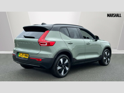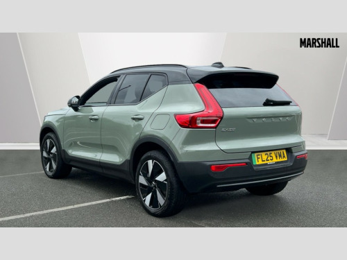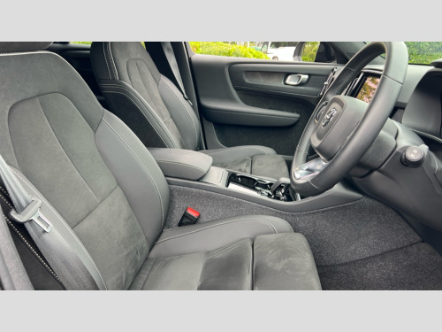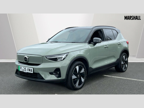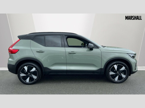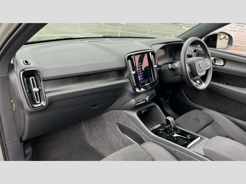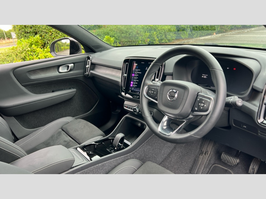Volvo EX40 185kW Extended Range Plus 78kWh 5dr Auto 12.3" Progressive Driver Display, 9" centre console touch screen, Adjustable steering wheel force, Bluetooth handsfree system, Driver alert control with lane keeping aid, Driver assistance (pilot assist and adaptive cruise control), Driver awareness - Blind spot information system with steer assist, cross traffic alert with autobrake and rear collision warning and mitigation, Emergency services call system, Front park assist, Google automotive services - Enabled entertainment apps, navigation with google maps, voice recognition with google assistant, Handsfree tailgate opening/closing, Intelligent speed assistance, Oncoming Lane Mitigation, Rear park assist sensors, Speed sensitive steering, Volvo cars services with app, Volvo on call with charge station locations and route planning and pre climatisation, Wired Apple CarPlay, Wireless/Inductive Mobile Phone Charging, 11 kW three phase onboard charger, 6m 3 phase 32 amp type 2 / mode 3 charge cable, Electric rear axle drive, Lithium-ion battery, Recharging port located in nearside rear wing, Touring chassis, DAB Digital radio, Low speed exterior sound speaker, Steering wheel remote infotainment controls, Adaptive brake lights with high level LED brake lights, Auto dimming exterior rear view mirror, Auto dimming interior mirror, Automatic headlamp levelling, Automatic LED Headlights + Active high beam incorporating daytime running lights, Black stone A pillars, Black stone autofolding heated power door mirrors, Black stone roof, Black stone roof spoiler, Colour co-ordinated front grille and surround, Dark tinted windows - rear side windows and rear screen, Electric adjustable/heated/auto folding door mirrors, Front and rear electric windows, Front intermittent wipers, Front metal tread plates engraved with EX40, High gloss black front bumper deco, High gloss black rear bumper lower deco, High gloss black rear skid plate, High gloss black window trim, Home safe and approach lighting, Integrated roof rails in high gloss black, LED front fog lamps, Puddle lights, Rain sensor with automatic windscreen wiper activation, Rear side wing doors, Rear wiper, Roof antenna, Roof side cant-rail, Visible VIN plate, 12V socket in front tunnel console, 2 zone electronic climate control with Clean zone air quality system and pollen filter, 3 bench rear seats in 2nd row, 3 Spoke tailored steering wheel with chrome trim, 60/40 versatile split folding rear seat, Ambient front door and instrumental panel lighting, Bright metal luggage scuff plate, Centre console cupholders and storage, Charcoal headlining, Flexible load floor and grocery bag holder, Floor mats, Front and rear courtesy lights, Front and rear reading lights, Front door pocket illumination, Front footwell illumination, Front headrests, Front load compartment (31 litres), Front seat cushion extensions, Front side step illumination (under door), Glovebox bag hook, Heat pump (Enhanced cabin heating and cooling efficiency with optimal vehicle range), Heated front seats, Height adjustable passenger seat, Height/reach adjustable steering column, High gloss black centre tunnel deco, Illuminated glovebox, Illuminated luggage compartment, Illuminated tailgate, Illuminated vanity mirrors + ticket holder, Instrument panel and front door inlay lighting, Integrated waste bin, Load cover, Load protection net, Multi directional lumbar support, One pedal drive mode, Power driver seat with memory + exterior mirrors memory, Rear armrest with cupholder, Rear coat hook, Rear headrests, Single front passenger seat, Sports steering wheel, Underfloor cargo storage, Climate pack - EC40/EX40, 3x3 point rear seatbelts, City safety with steering support with Pedestrian + cyclist + front collision warning with full auto brake and rear auto brake, Driver and passenger airbags, Drivers knee airbag, Electronic parking brake with auto hold, First aid kit, Front and outer rear seatbelt reminder and pretensioners, Front seats SIPS airbags, Hill descent control - Off-road drive mode, Hill start assist, IC (Inflatable Curtains) - Full Length, ISOFIX attachment (Front passenger and Rear outer seats), Passenger airbag cut-off device, Power child locks on rear doors, Road sign information display, Run off Road Mitigation, SIPS (Side Impact Protection System), Slippery road and hazard light alert, Stability and traction control includes spin control and corner traction control, Tyre pressure monitoring system, Vehicle deceleration control with Anti-lock Brake System, Electronic Brake Distribution and Emergency Brake Assist, Warning triangle, WHIPS whiplash protection system - front, 2 x Key integrated remote control central locking including recharging port with deadlocking system and auto open/close power windows, Anti-theft alarm including immobiliser/volume sensor + level sensor, Care key with user defined top speed, Convenient entry and start, Keyless drive with keyless entry and keyless start, Locking wheel nuts, Private locking for tailgate, Remote door locking and unlocking, Origin inlay, Summer tyres, Tyre sealant kit and compressor